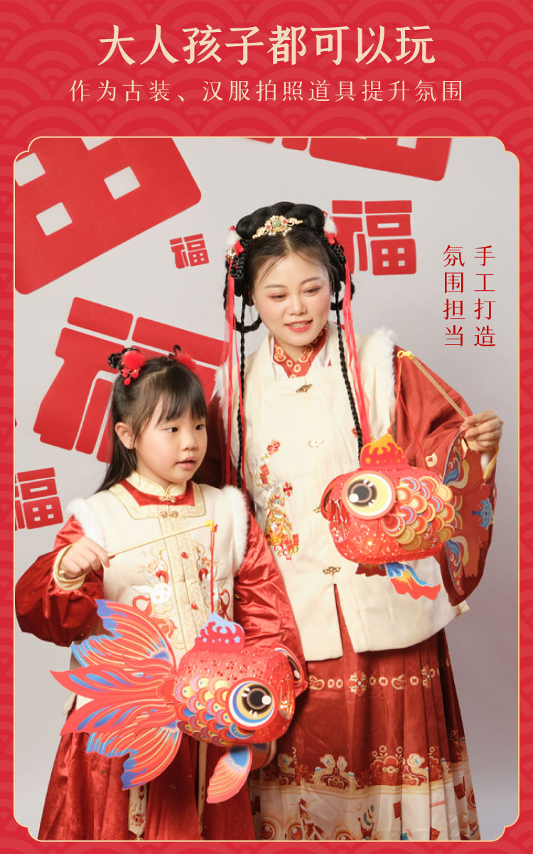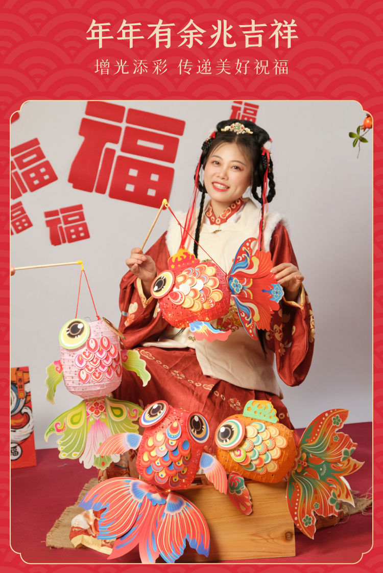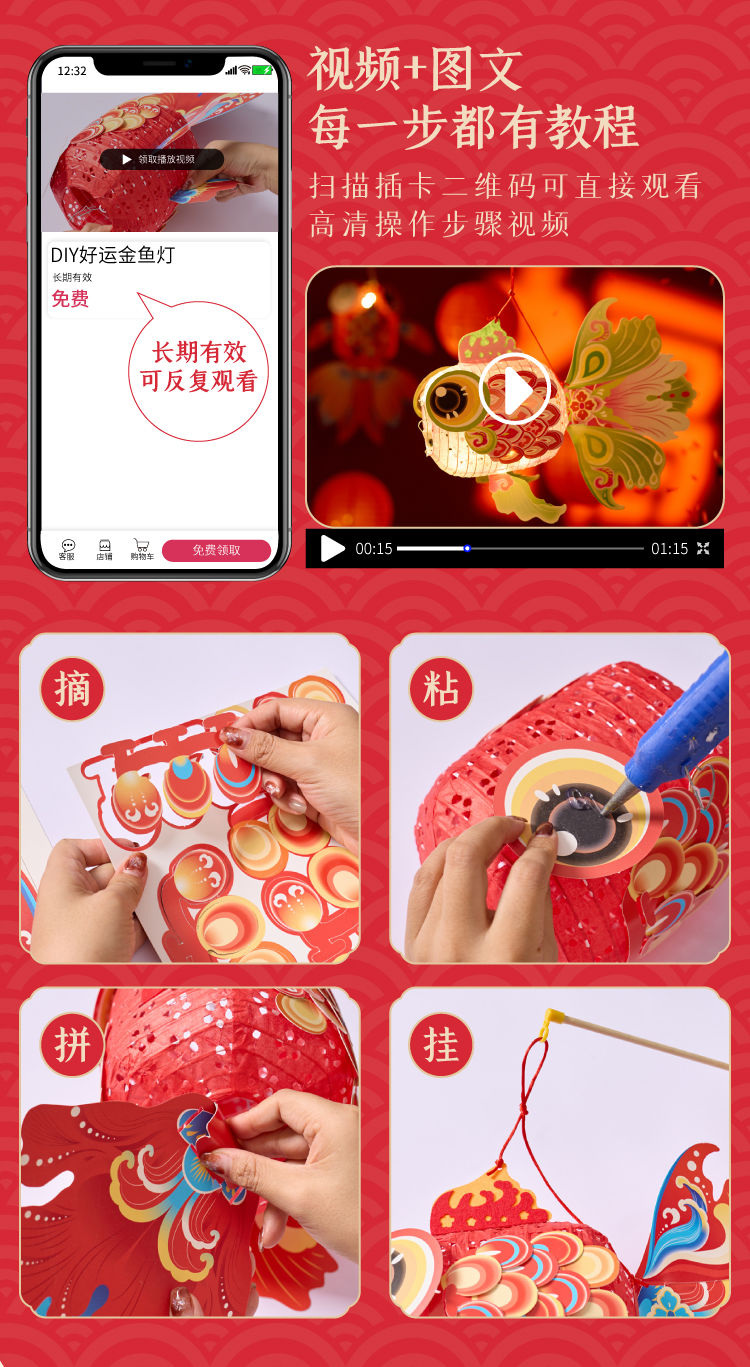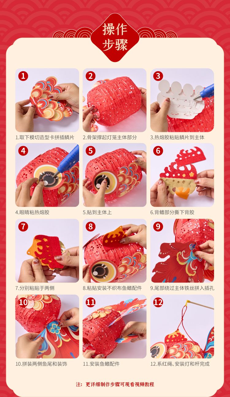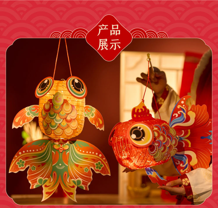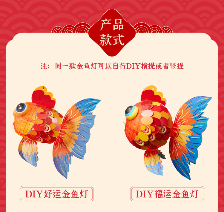新年春节元旦龙年好运金鱼灯笼手工diy儿童制作材料非遗古风花灯
