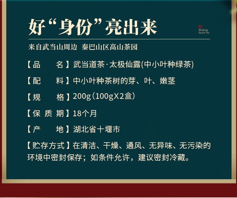 武当道茶绿茶 太极仙露礼盒装 200g/提(全国包邮,部分地区除外)