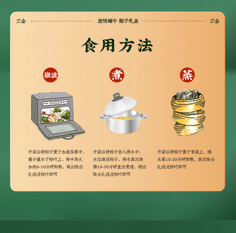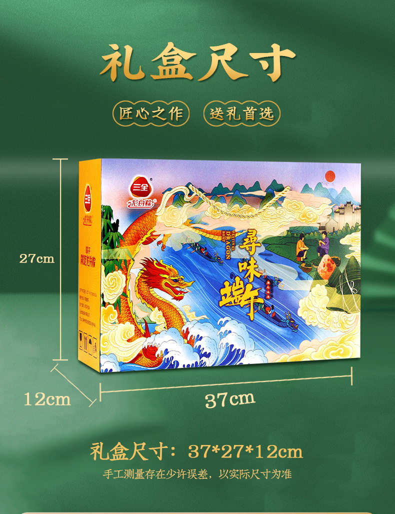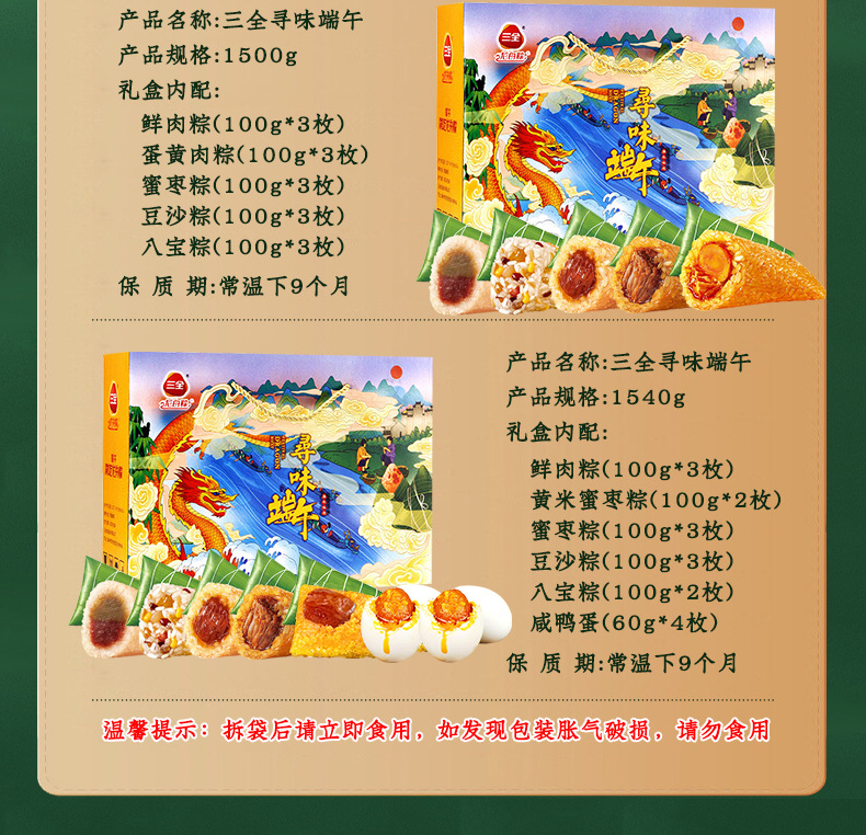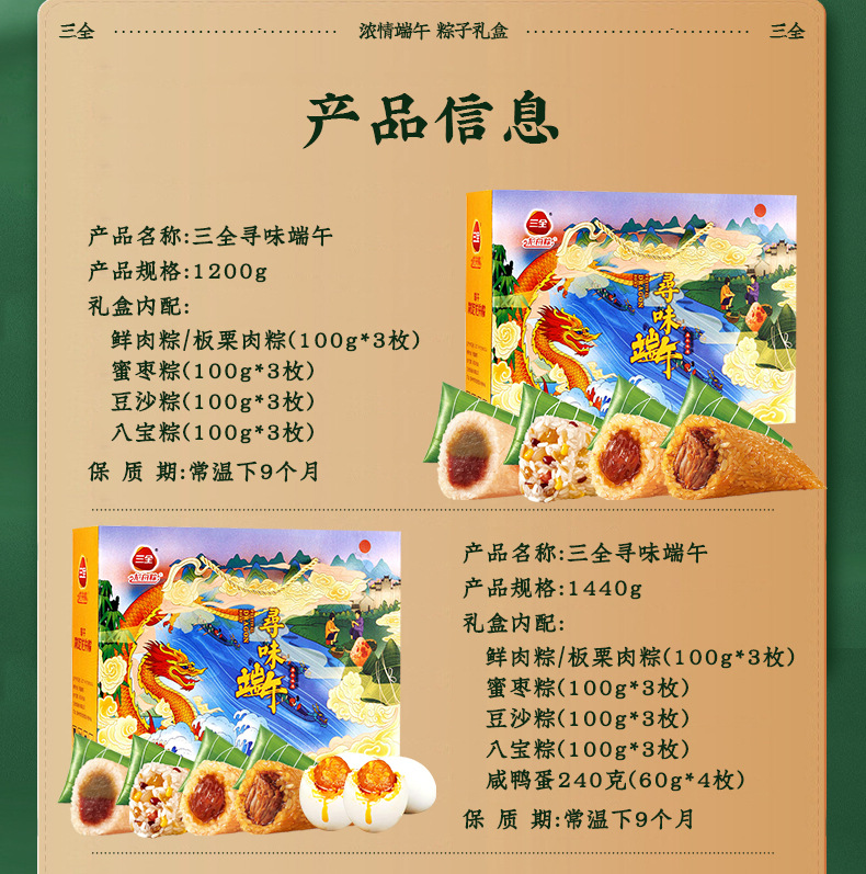 【新鲜上架,三全粽子礼盒1500g!】三全粽子礼盒1500g 蛋黄肉粽 豆沙蜜枣 香甜味粽 端午节礼品 送礼团购-QQ