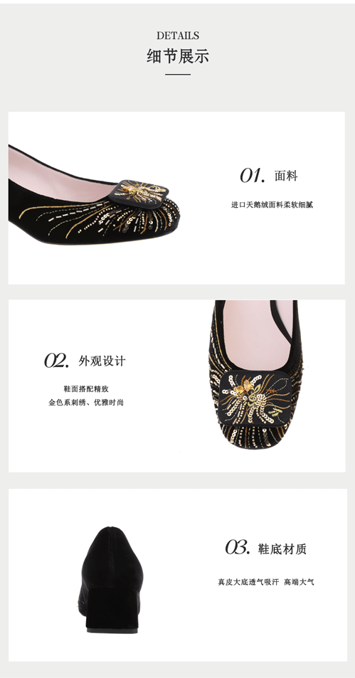sheme踏地而歌系列柔软细腻天鹅绒方头粗跟女士单鞋新中式精美刺绣可定制
