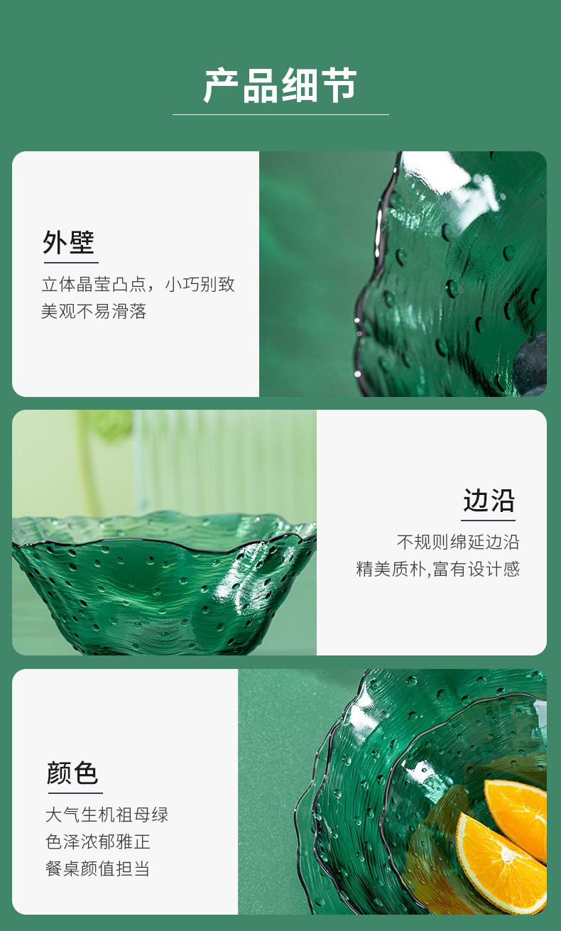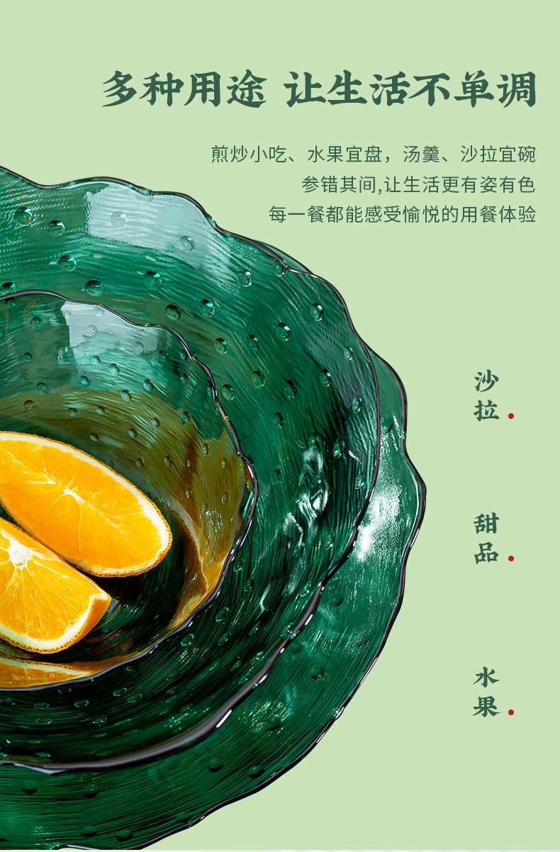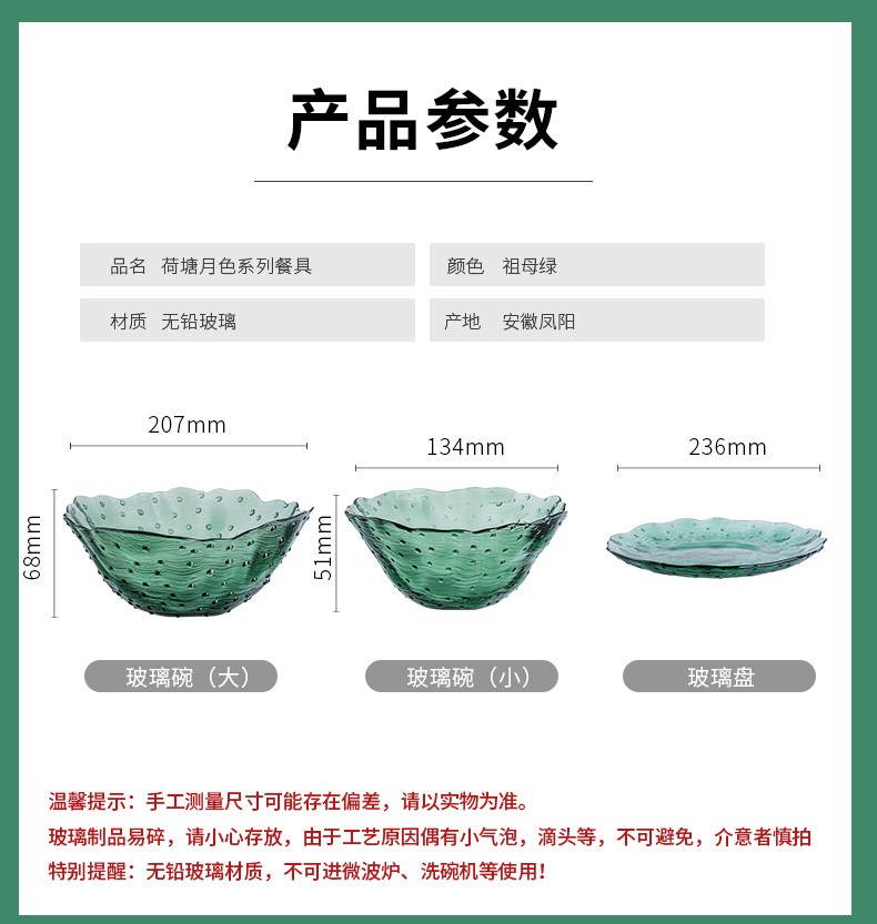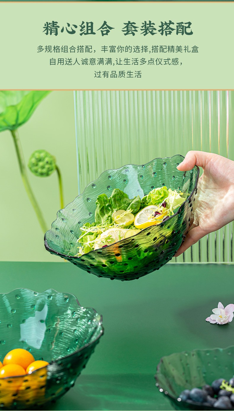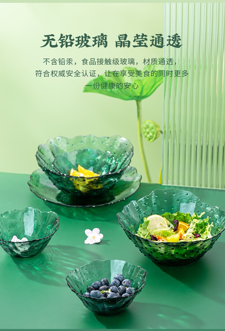 2022新品荷塘月色系列餐饮具碗盘套装ins玻璃祖母绿荷叶清新简约家用碗轻奢 A-W7058-8.5/L4