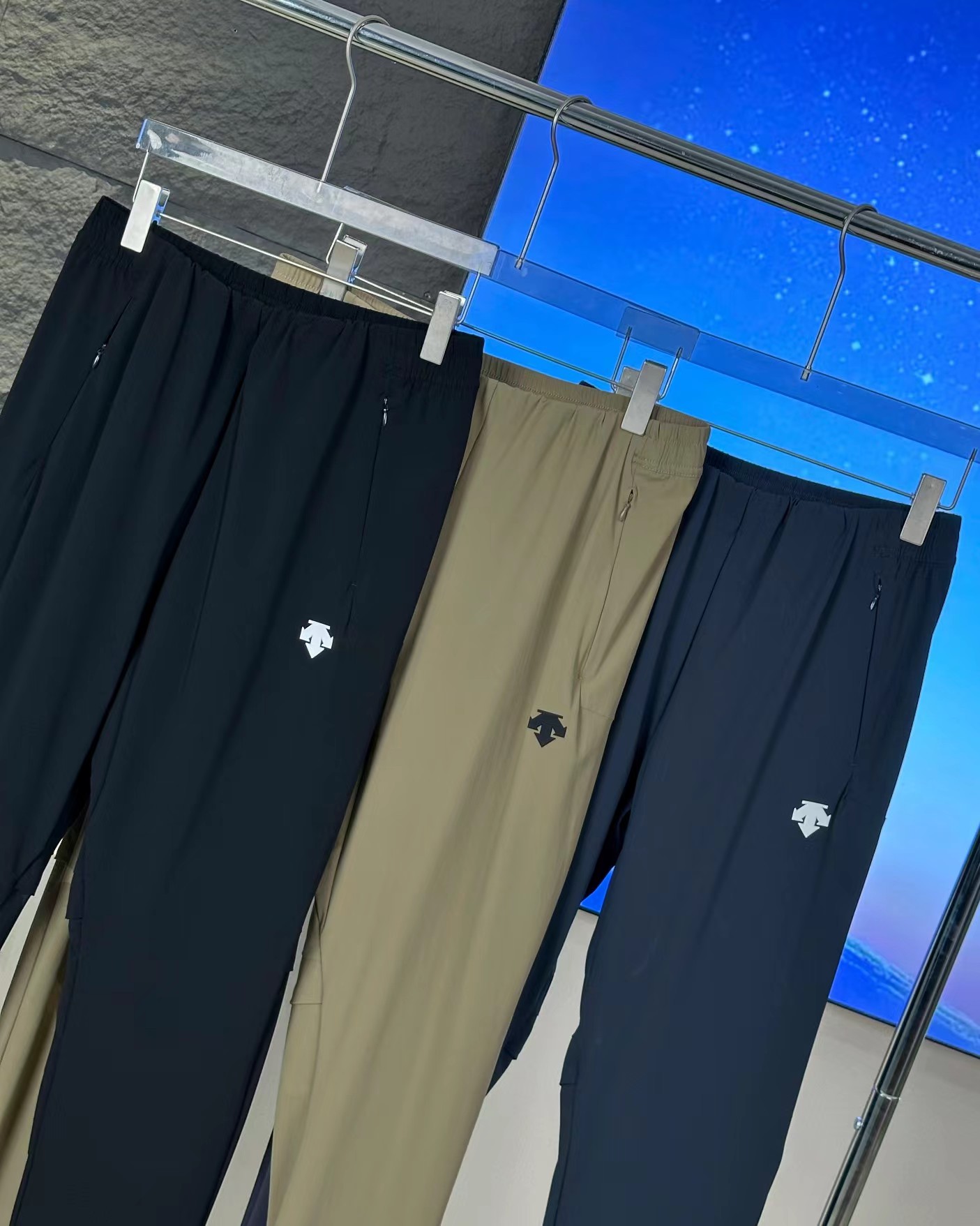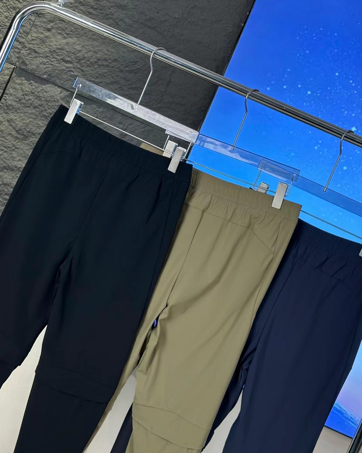 春季新款冰丝三色户外长裤?,特综训运动休闲长裤?,采用78的锦纶?22的氨纶?,弹力轻薄透气冰丝,上身后面料本身能给的舒适感??和细节质感无可挑剔?,松紧带设计?,前腰平腰?上身休闲简洁又商务?,人体运动版型剪裁??后膝盖处?做的透气网孔拼接??既有特点不单调?又给腿部运动展开了灵活空间的延展性?和透气性,非常适合日常休闲?运动健身?百搭不挑人?面料品质自留款??送人品质更有面?,内置松紧裤腰?可自由调节舒适度