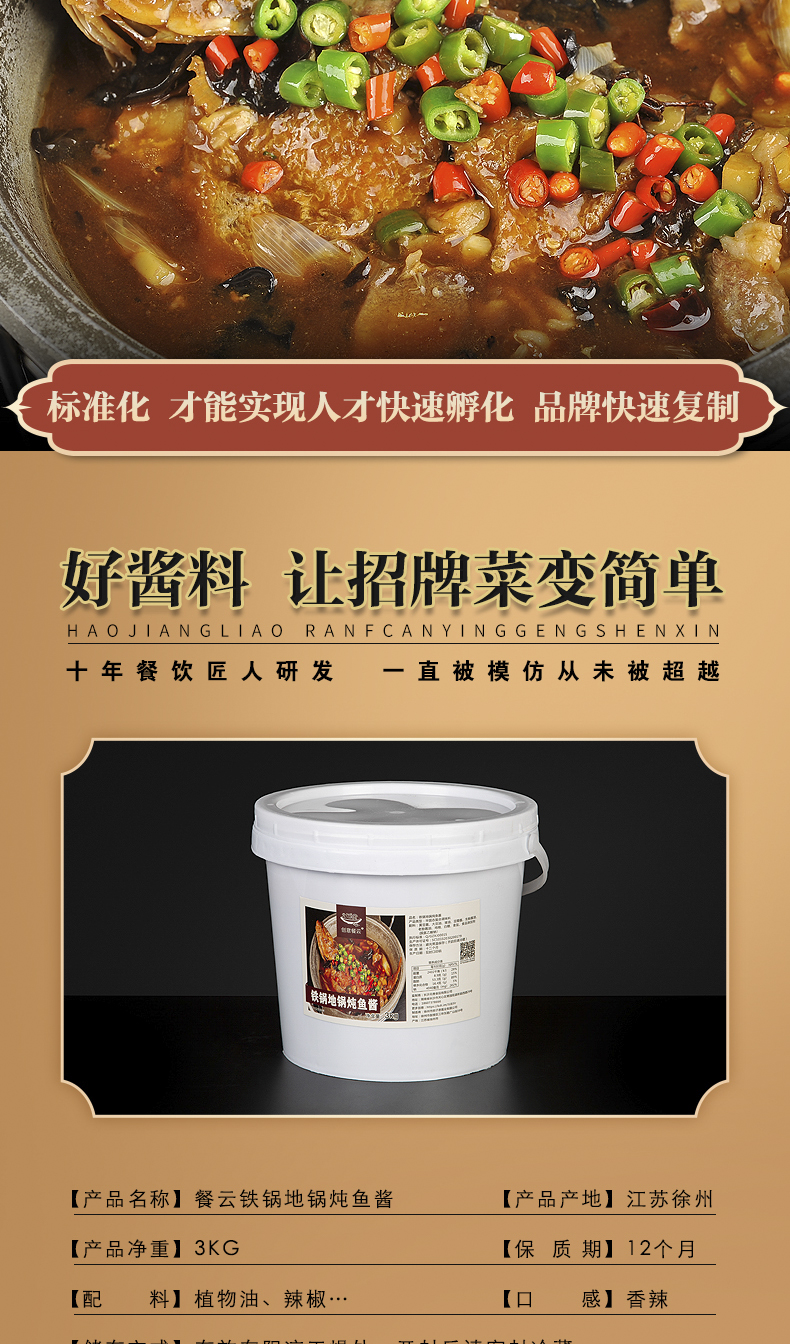 餐云铁锅地锅炖鱼酱 专业铁锅菜酱料大师研发 柴火铁锅炖鱼轻松实现标准化操作 餐云酱料荣誉出品