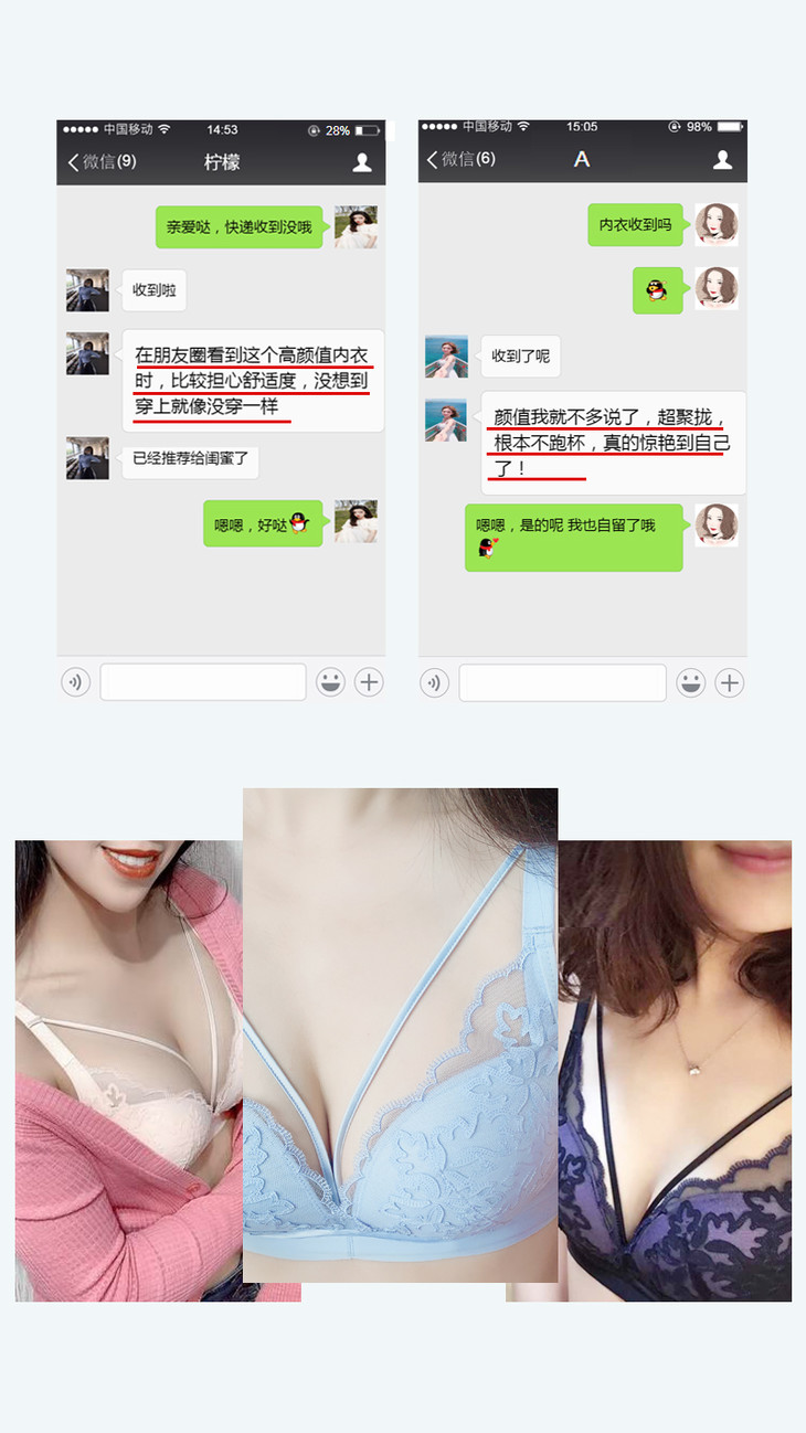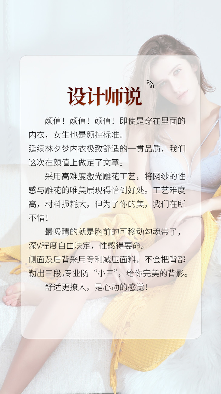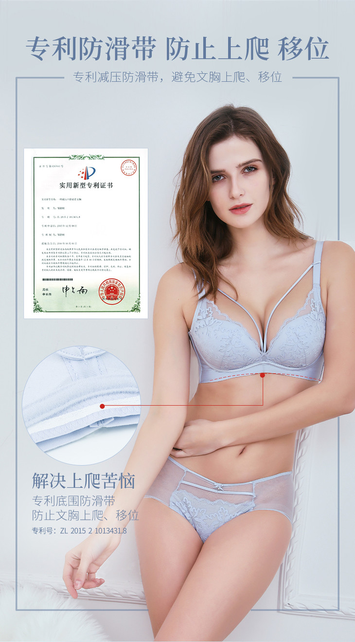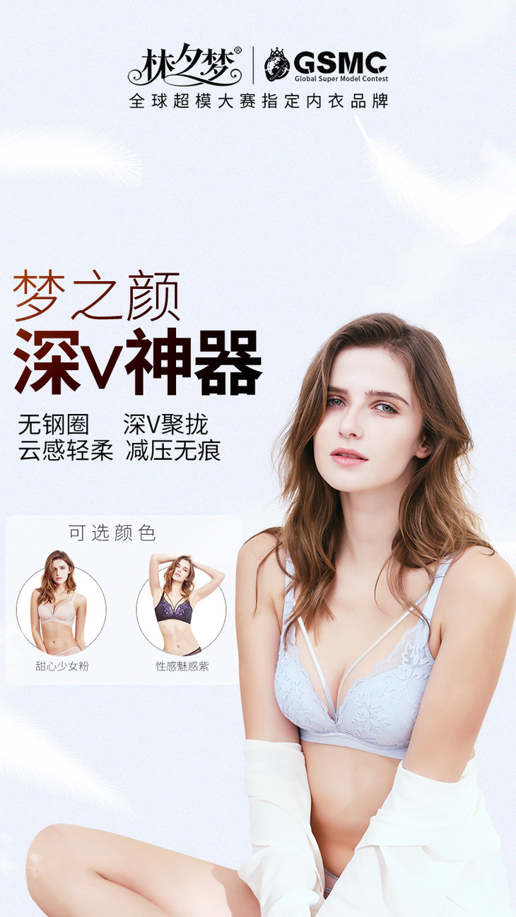 【梦之颜-文胸】亲肤云感棉模杯 深V诱惑专 利防滑减压肩带 多种穿法无痕后比防小三_1901