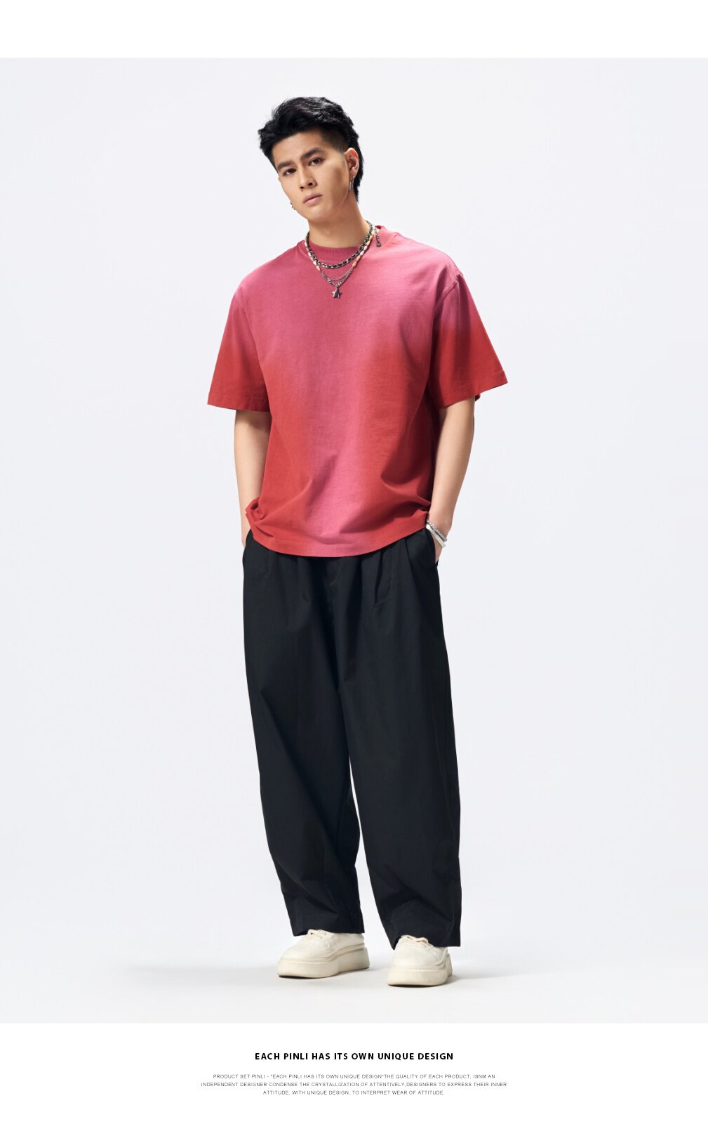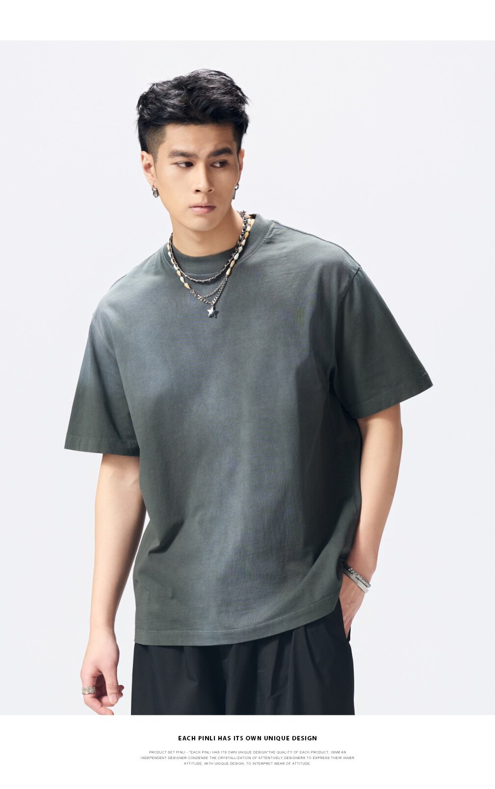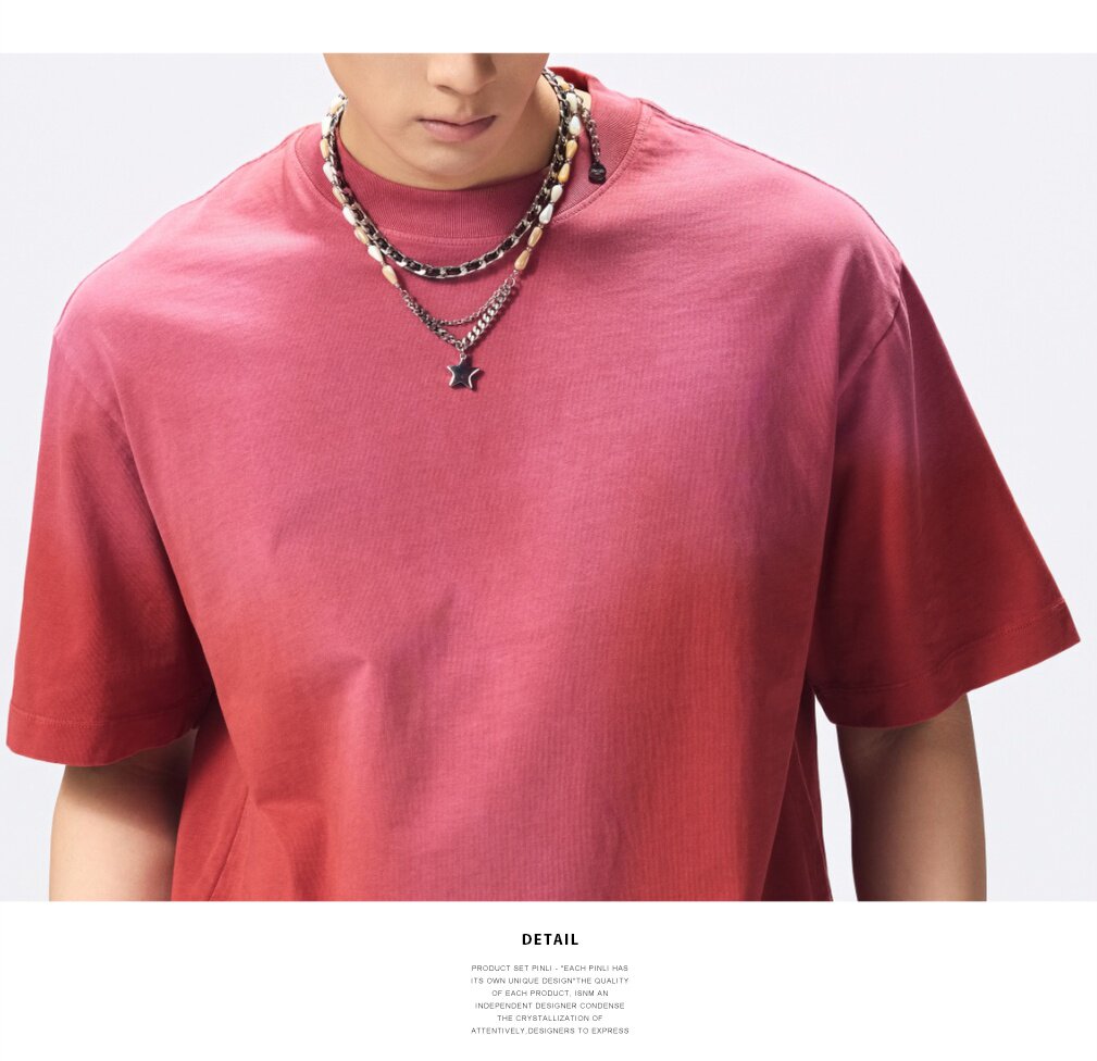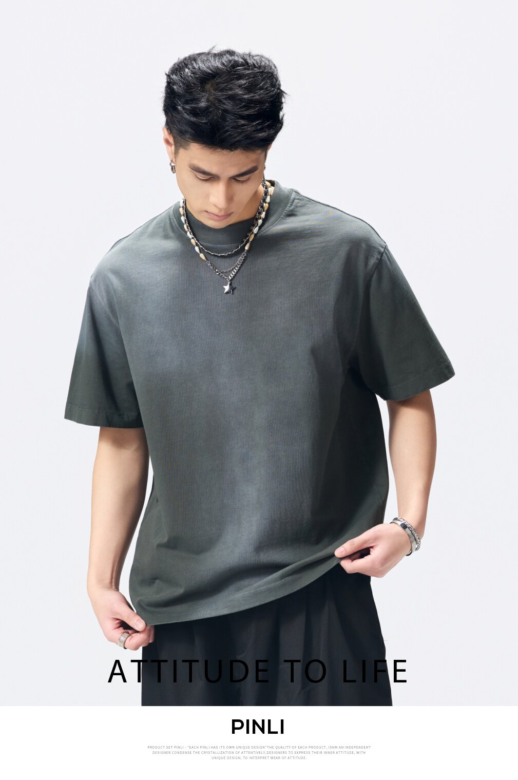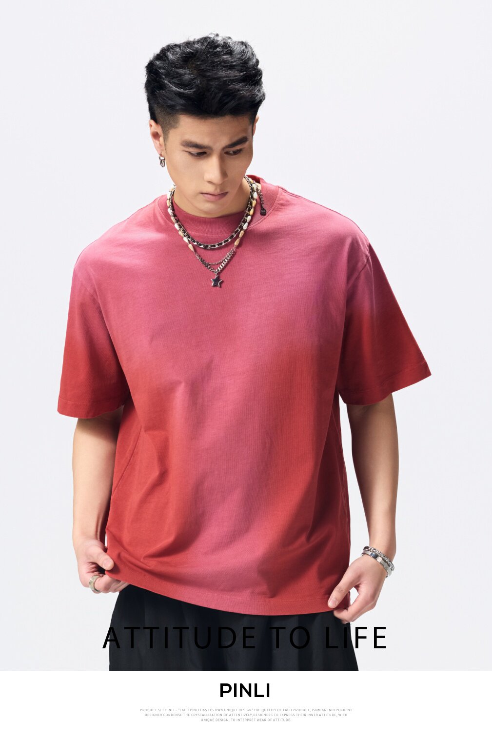 PINLI品立2026夏季男装宽松圆领落肩重磅纯棉水洗渐变短袖T恤潮牌GD262111024