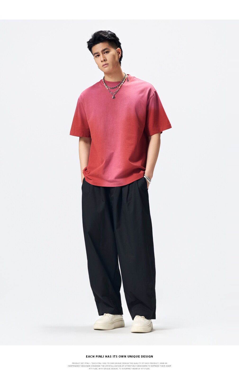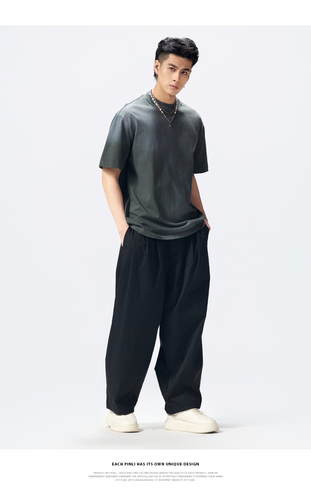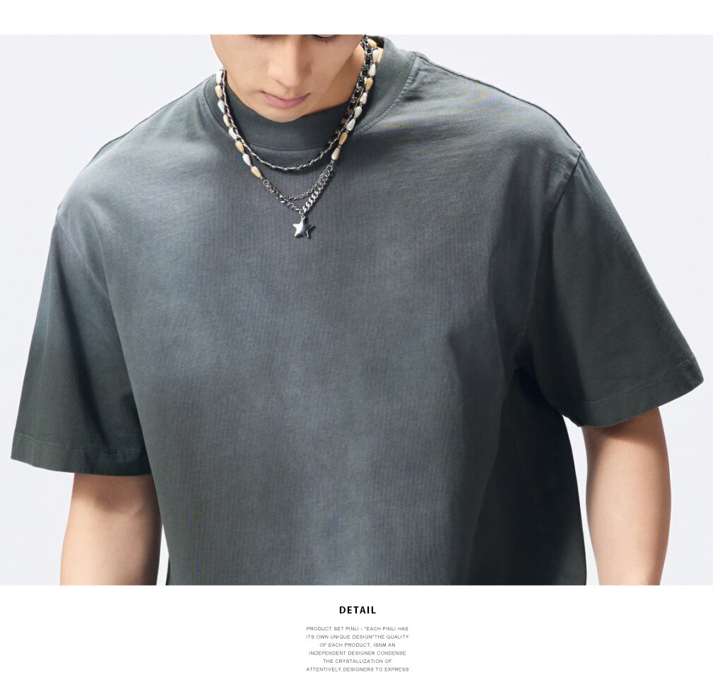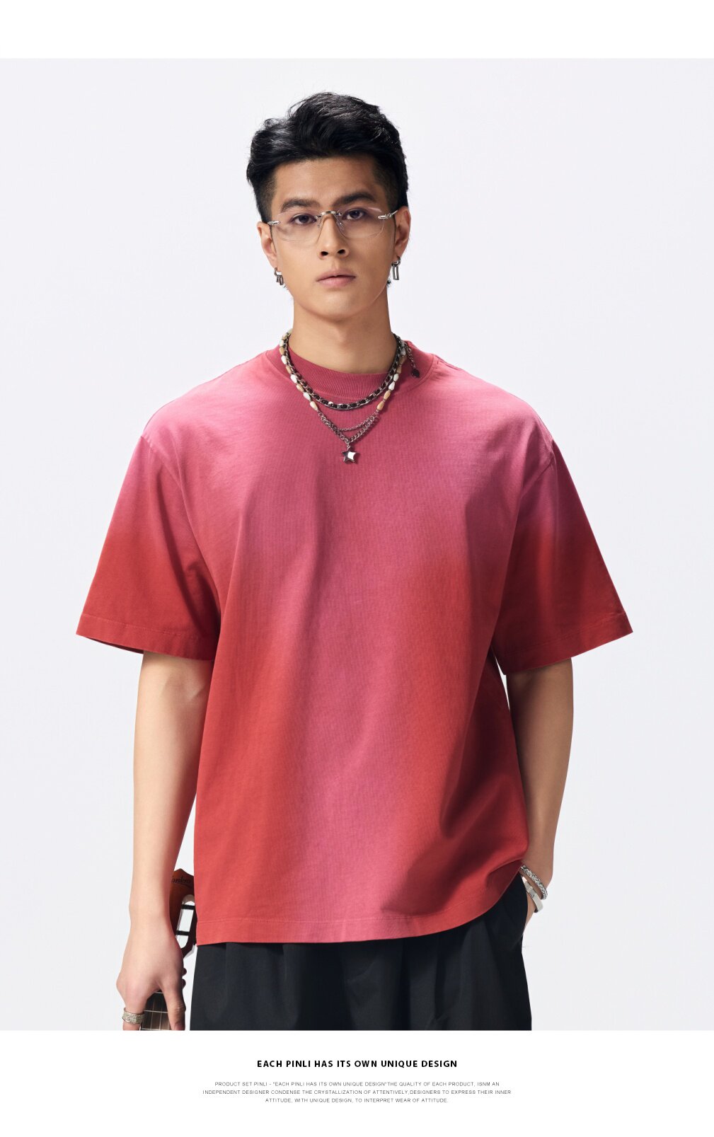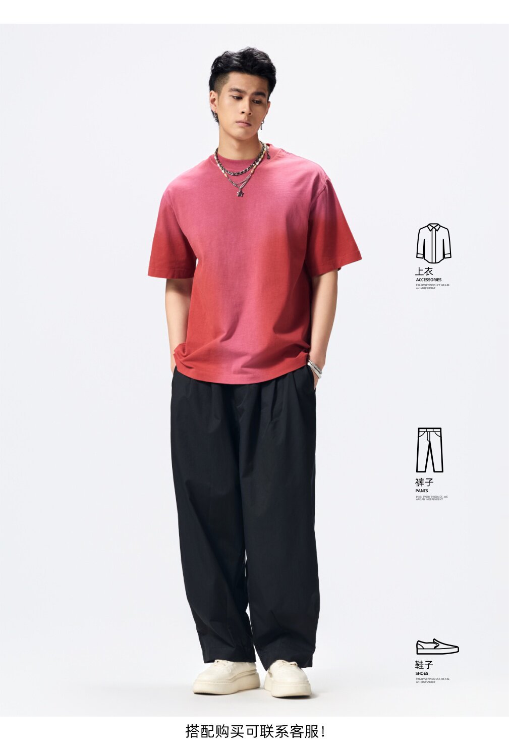 PINLI品立2026夏季男装宽松圆领落肩重磅纯棉水洗渐变短袖T恤潮牌GD262111024