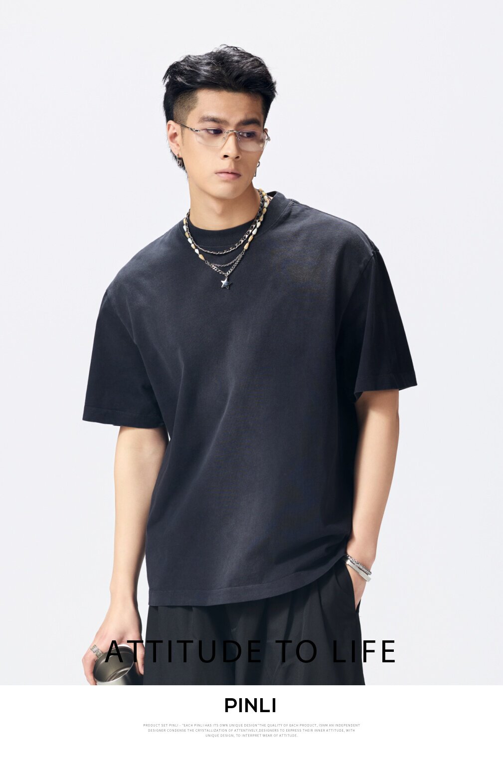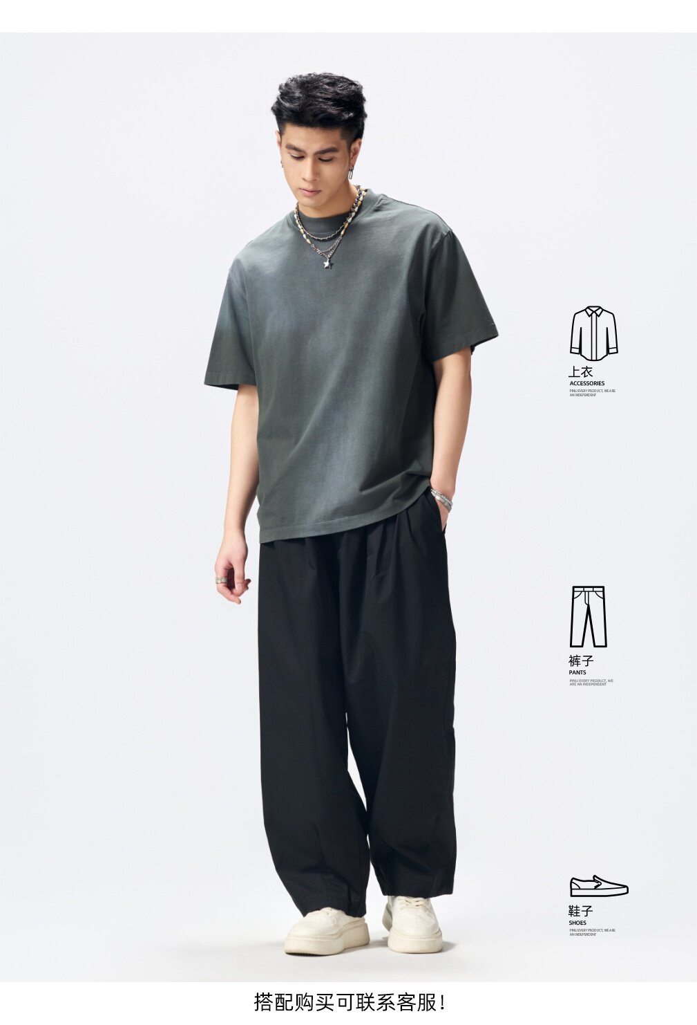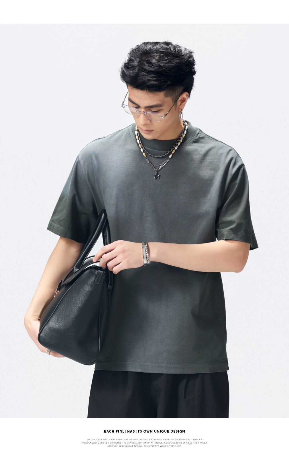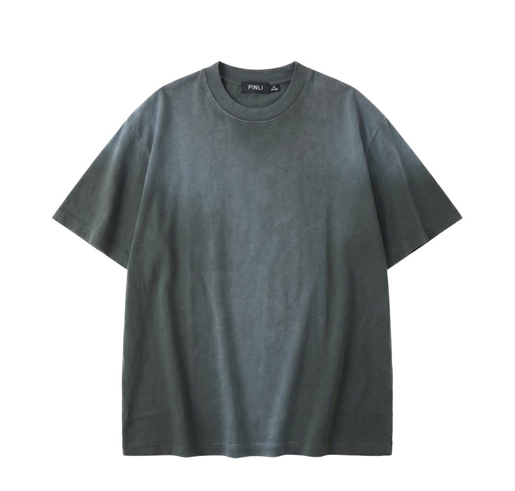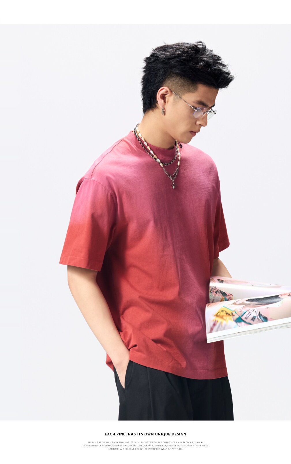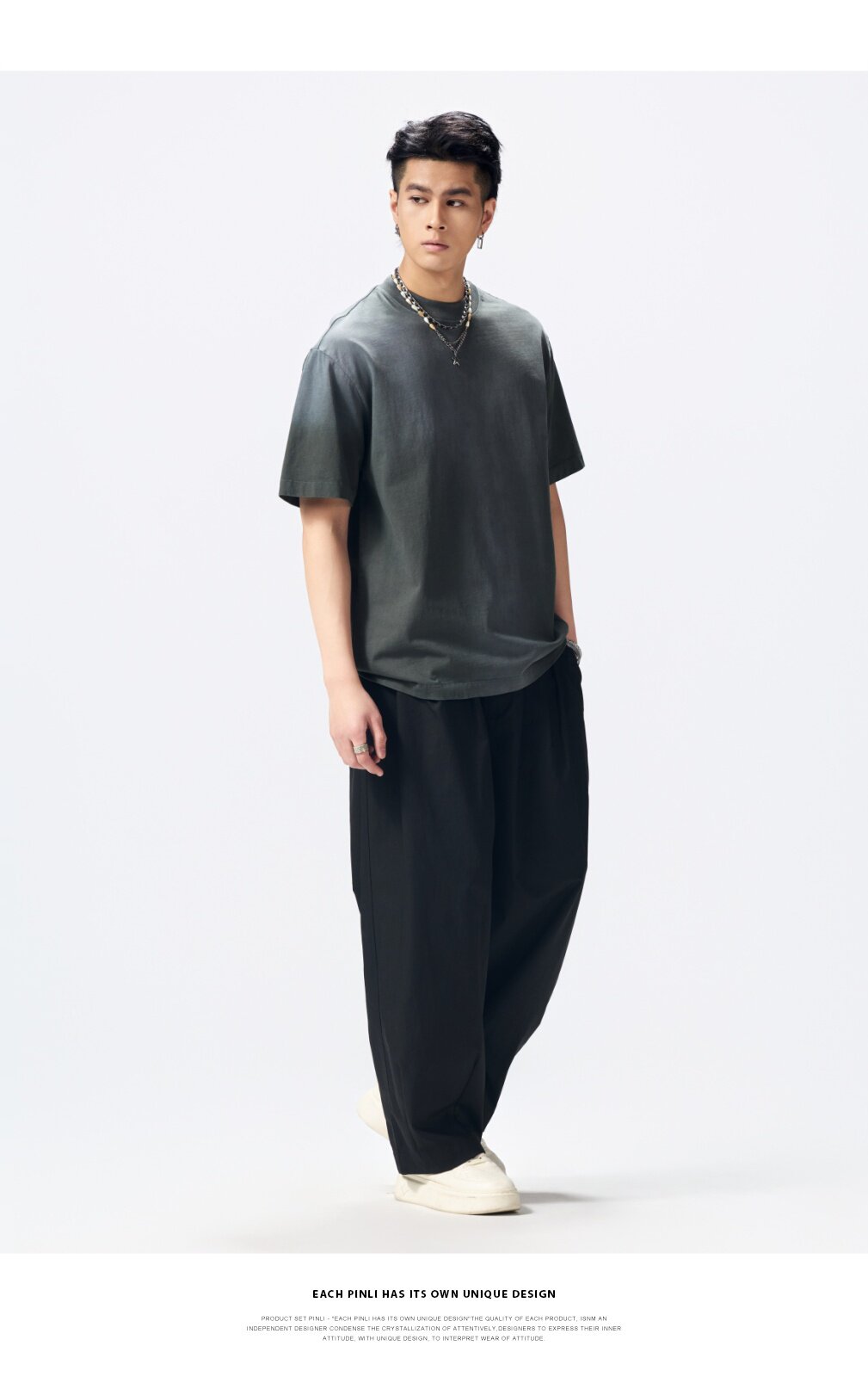 PINLI品立2026夏季男装宽松圆领落肩重磅纯棉水洗渐变短袖T恤潮牌GD262111024