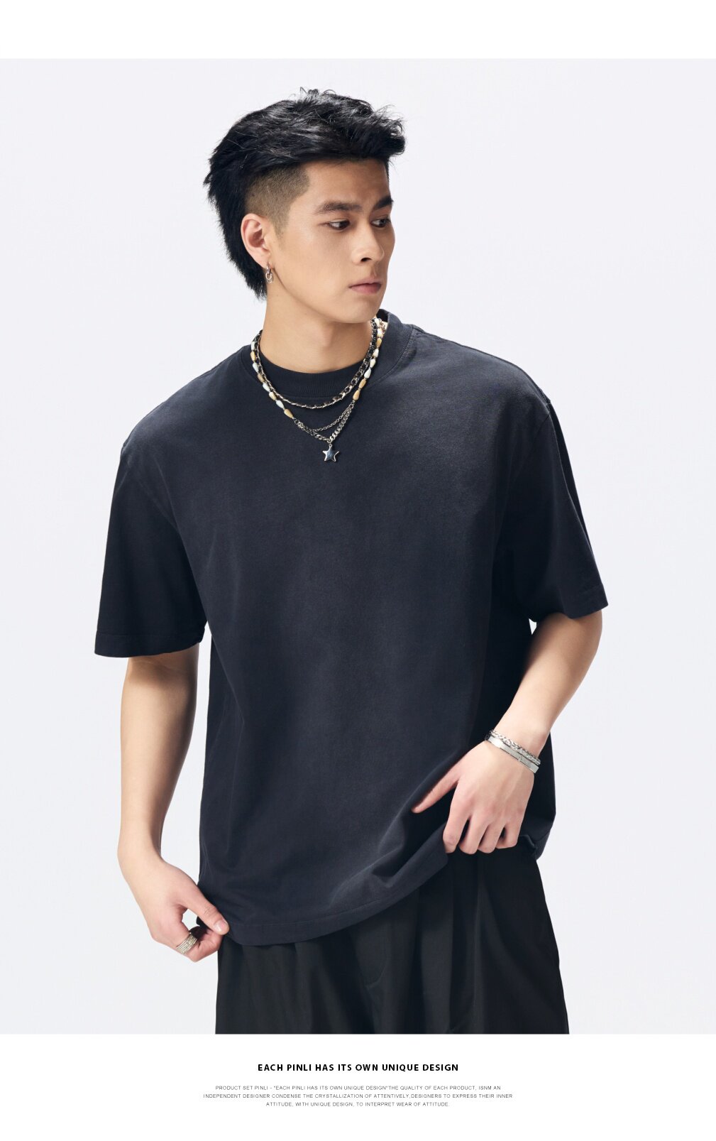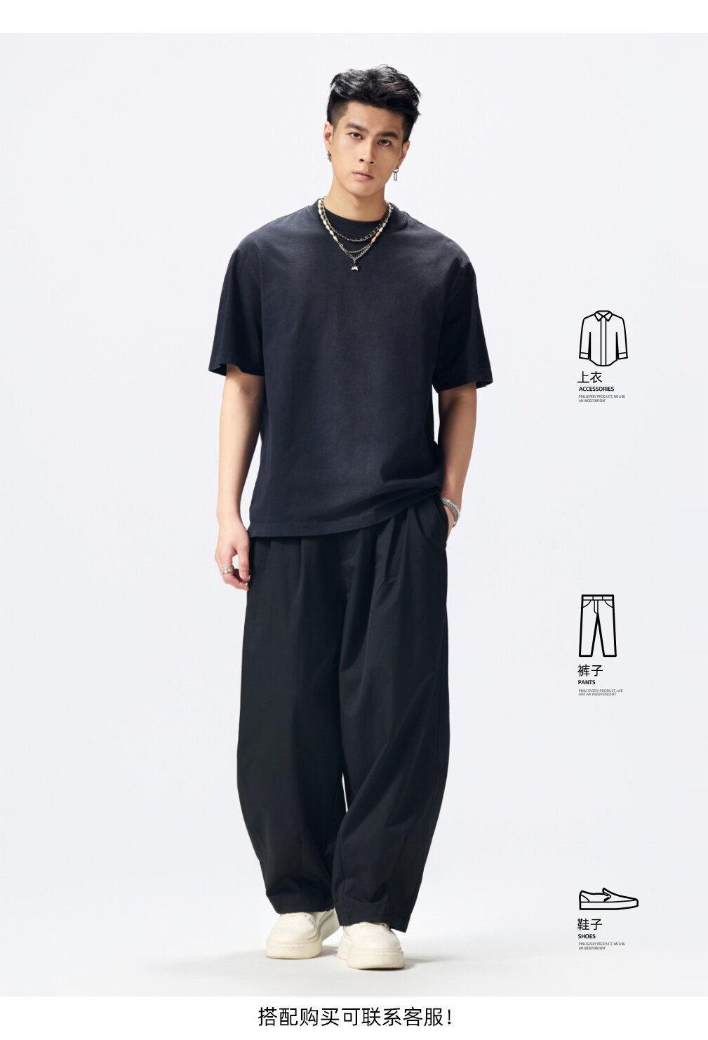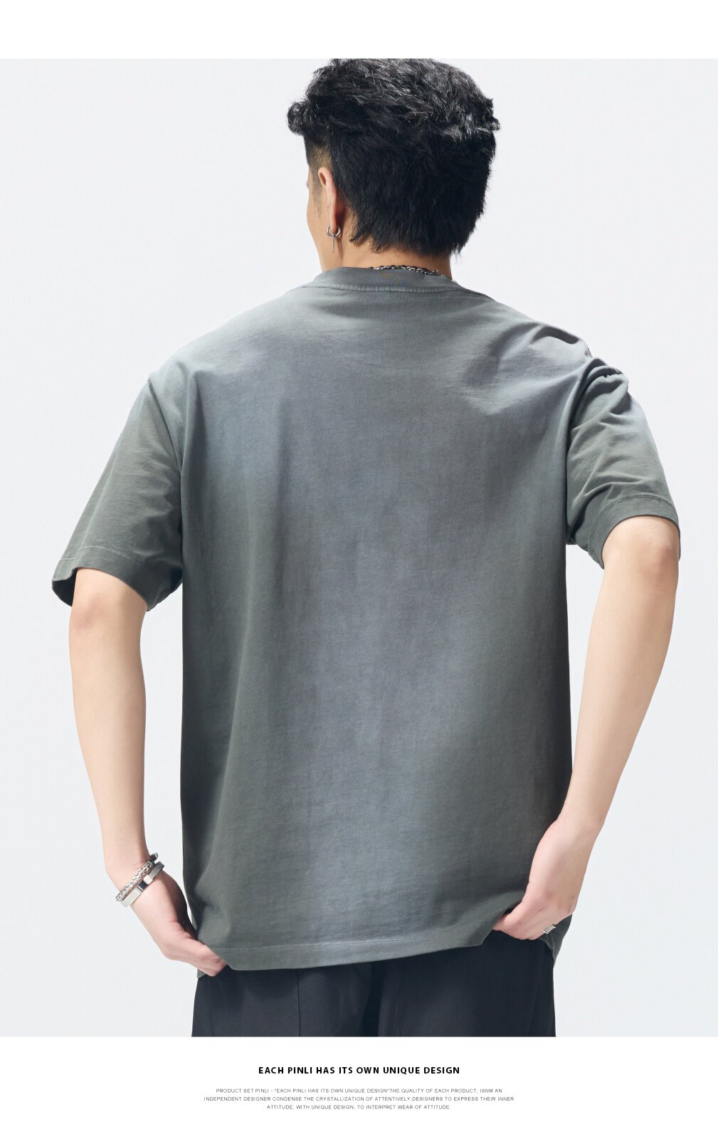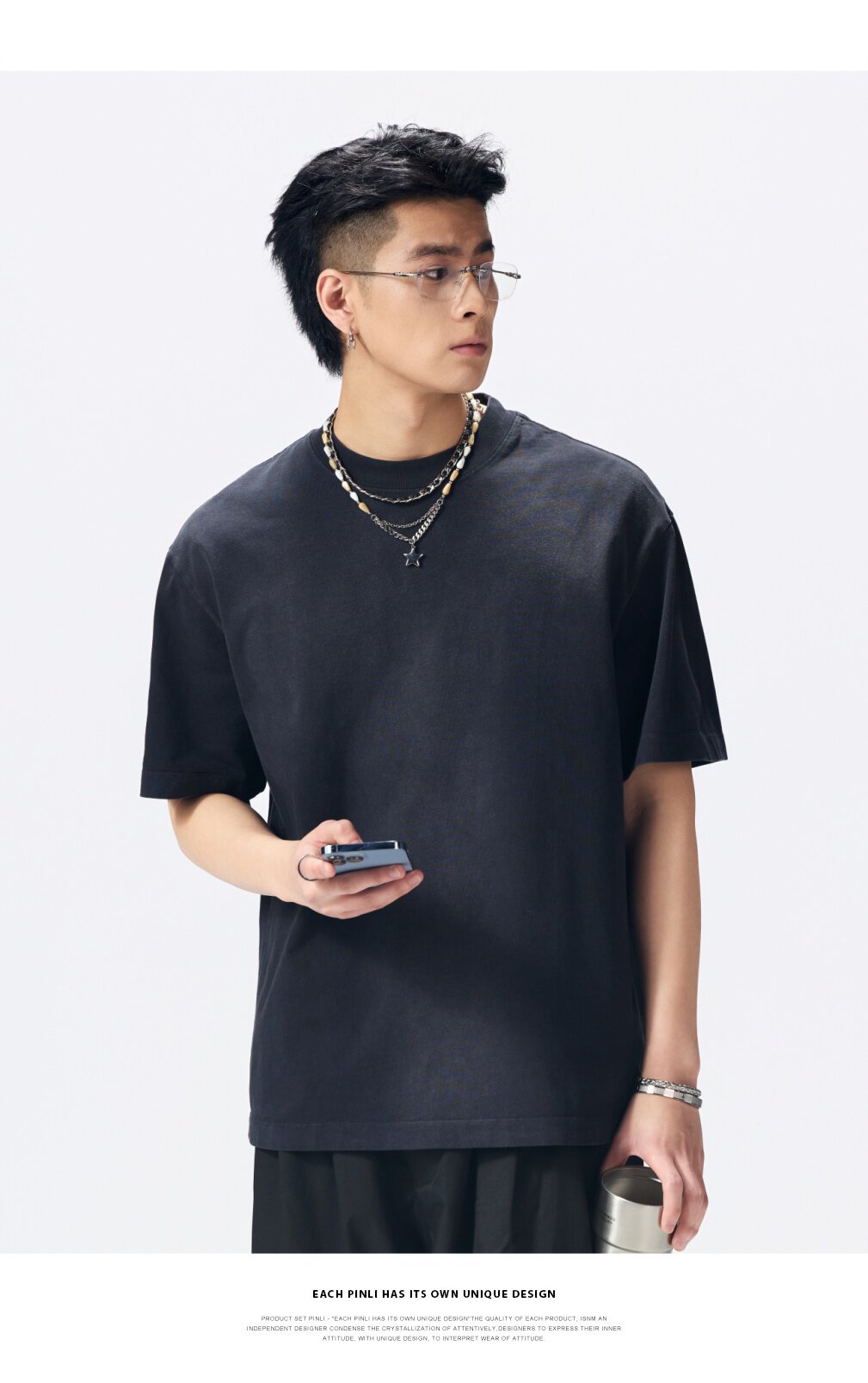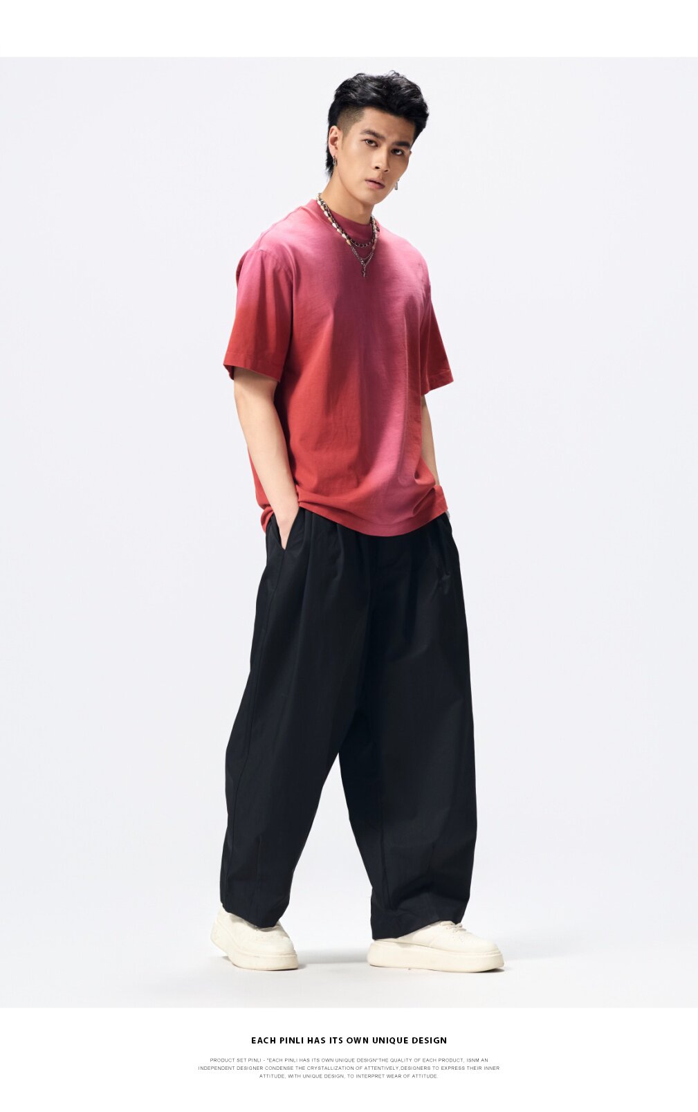 PINLI品立2026夏季男装宽松圆领落肩重磅纯棉水洗渐变短袖T恤潮牌GD262111024