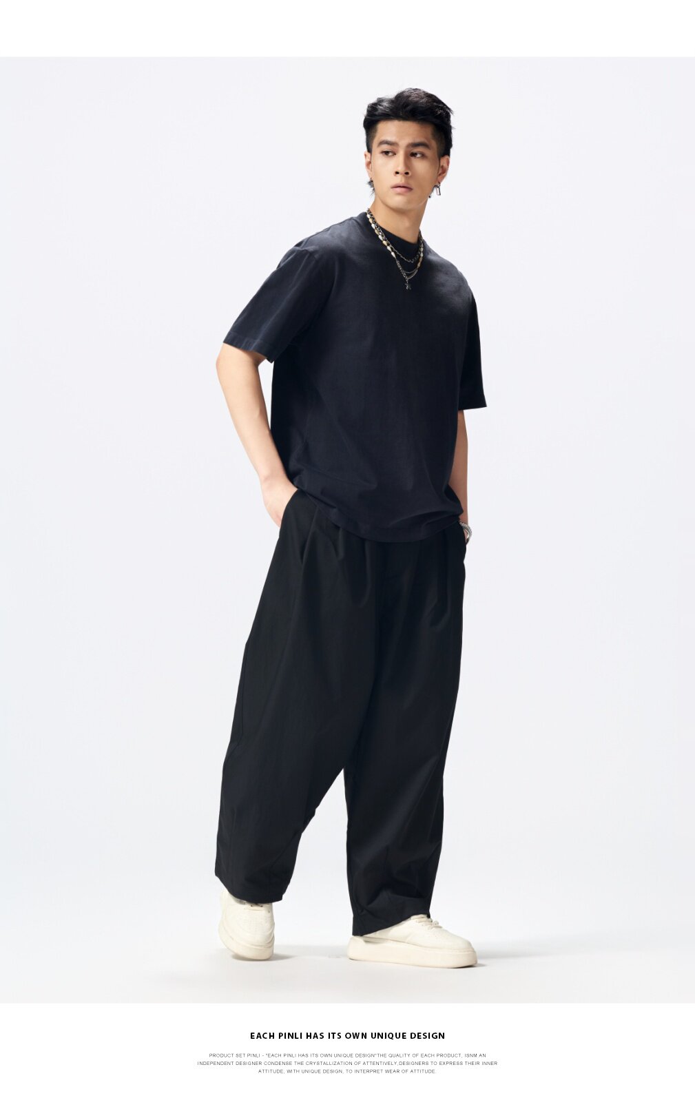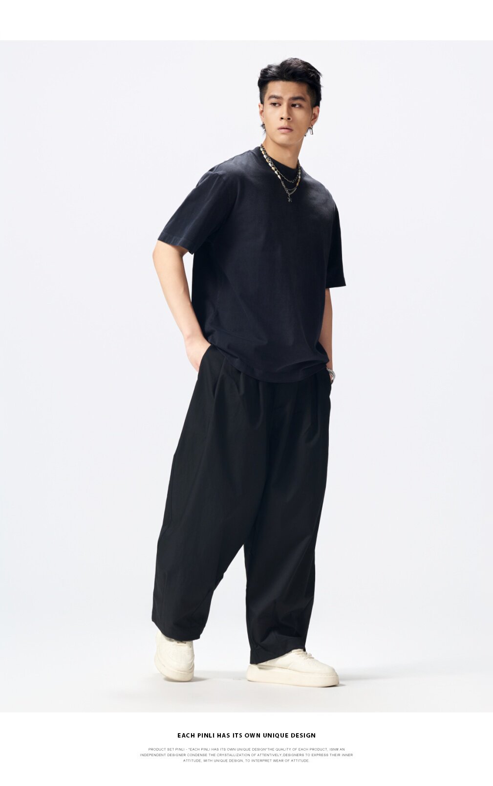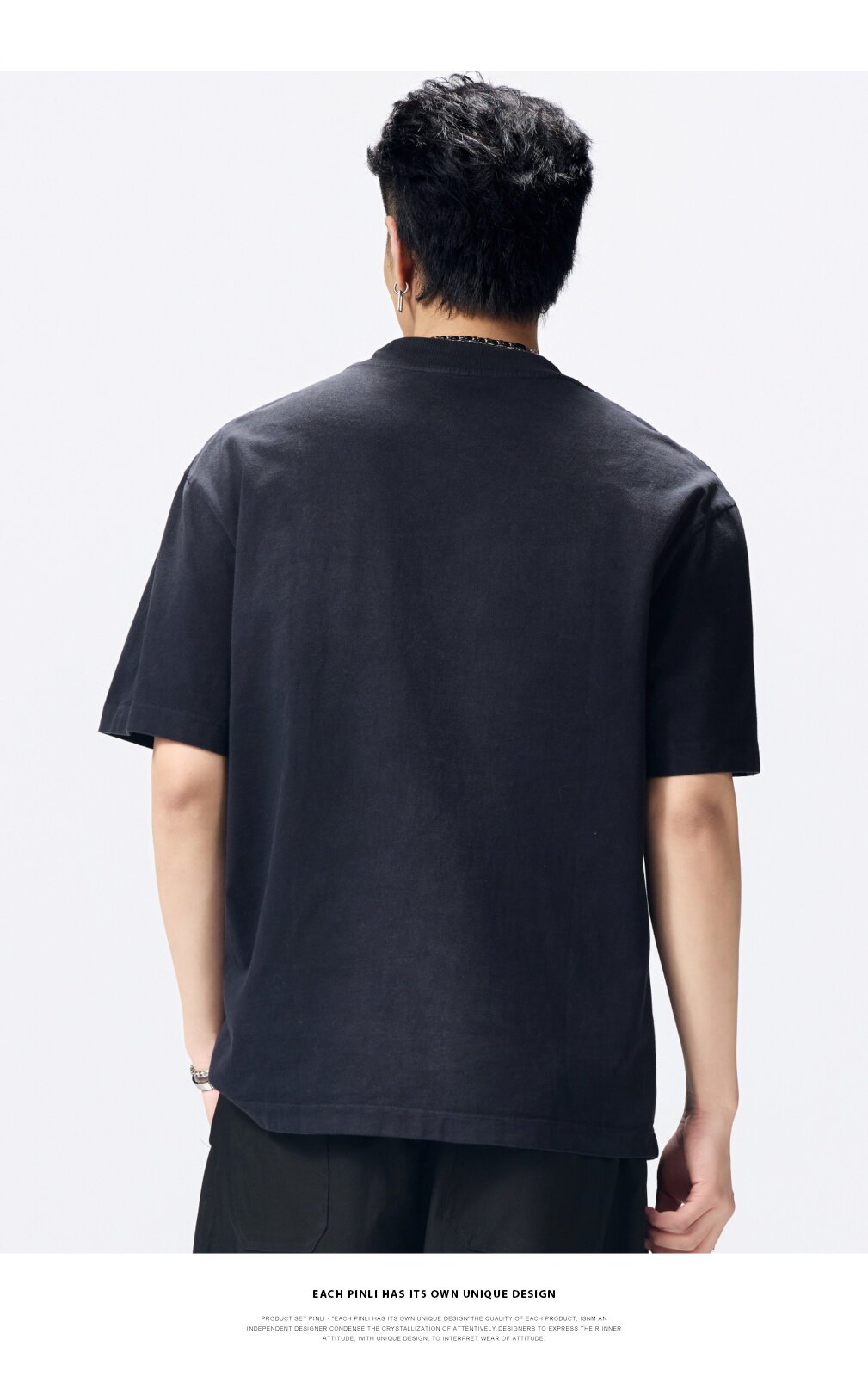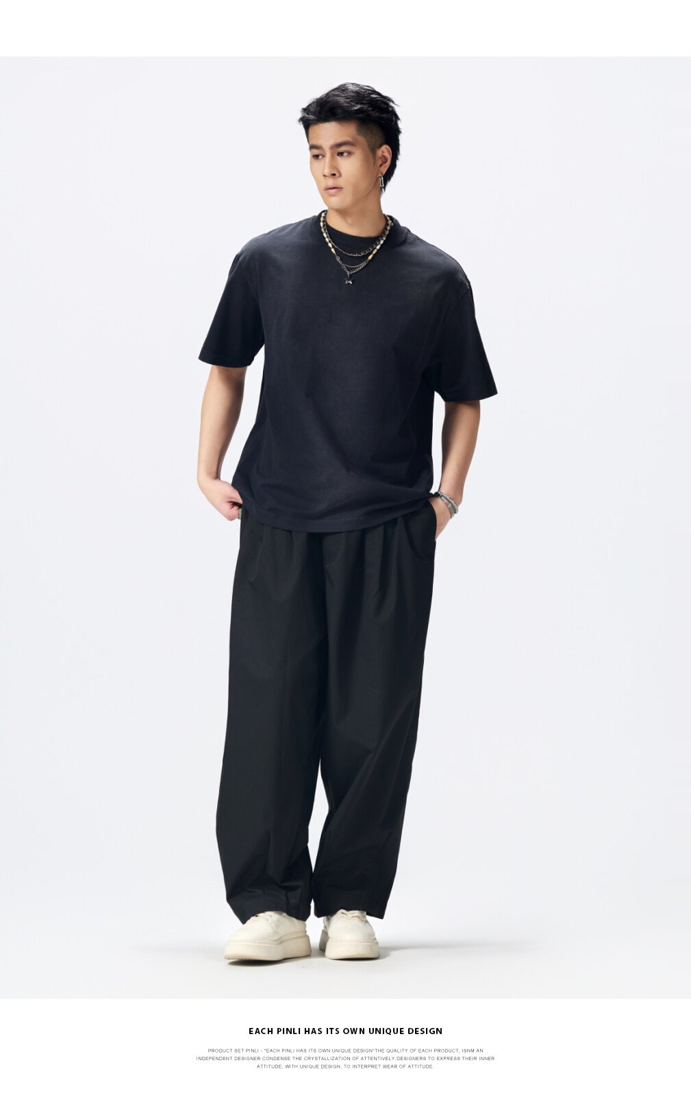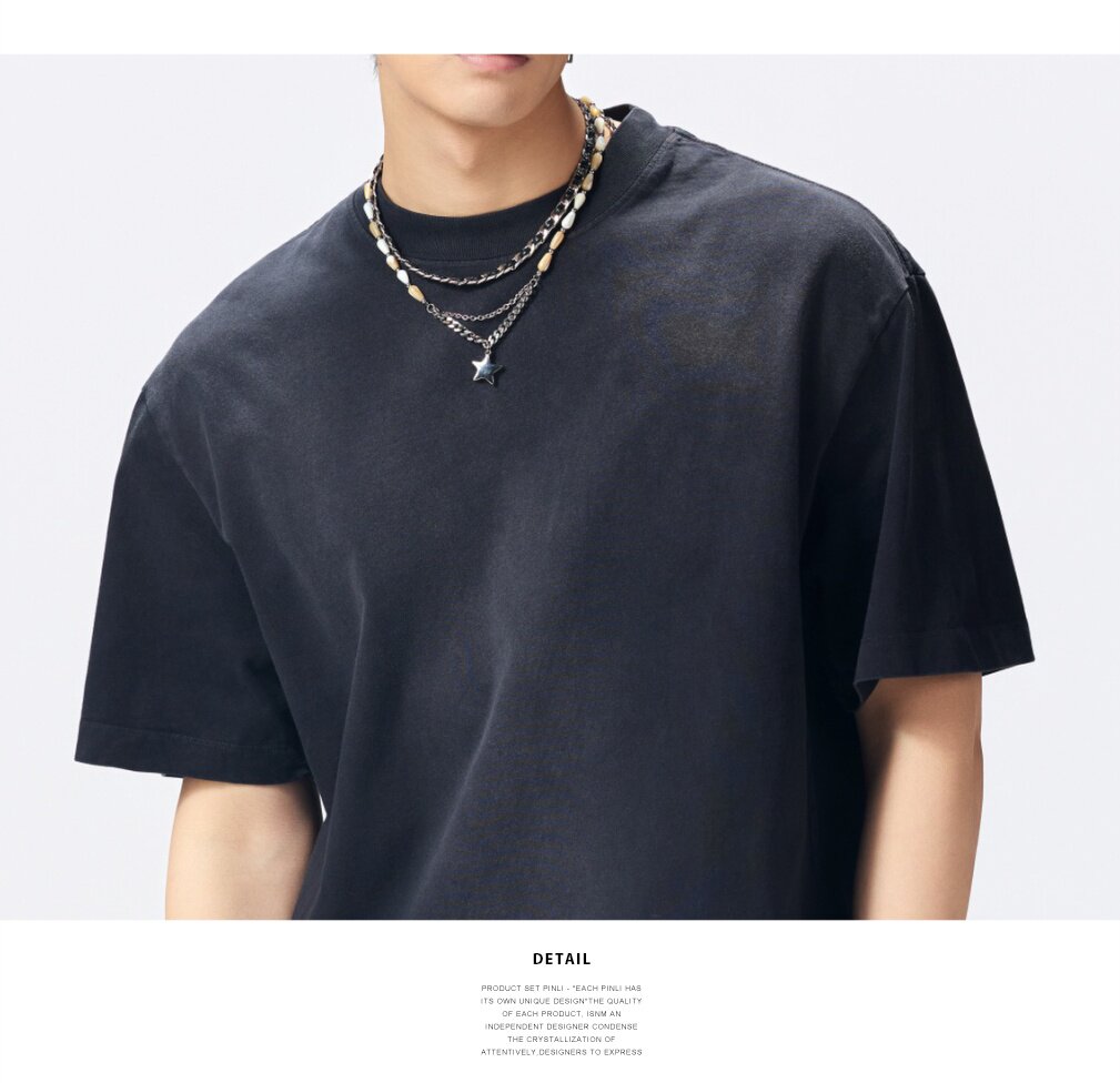 PINLI品立2026夏季男装宽松圆领落肩重磅纯棉水洗渐变短袖T恤潮牌GD262111024