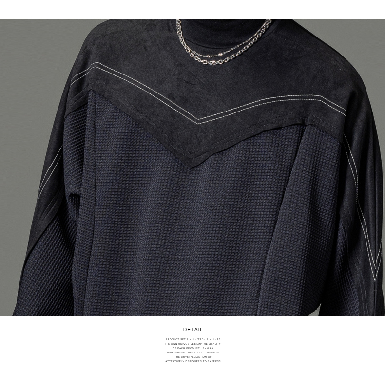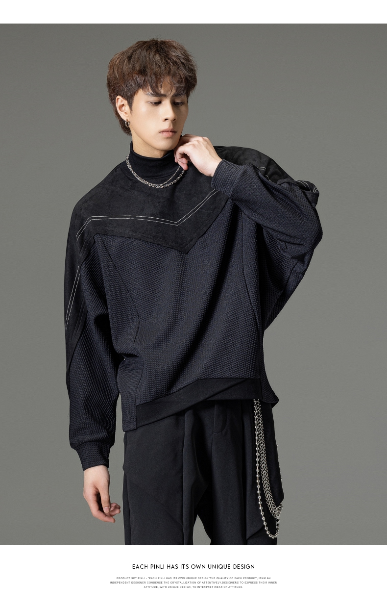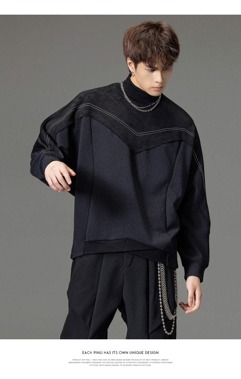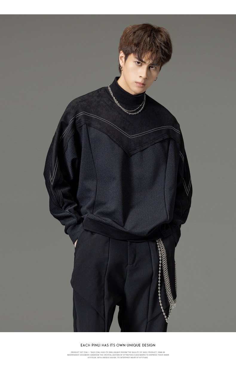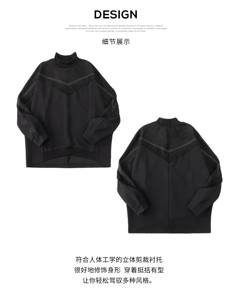 PINLI品立秋季新品半高领宽松卫衣男士拼接高街潮流休闲上衣B233109116
