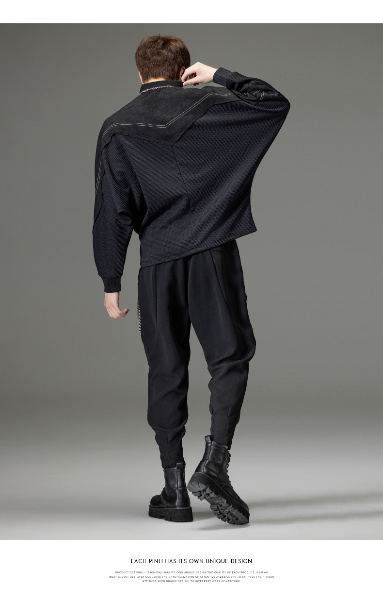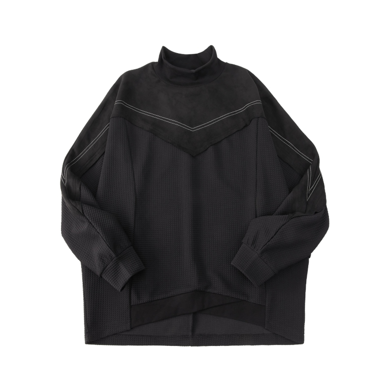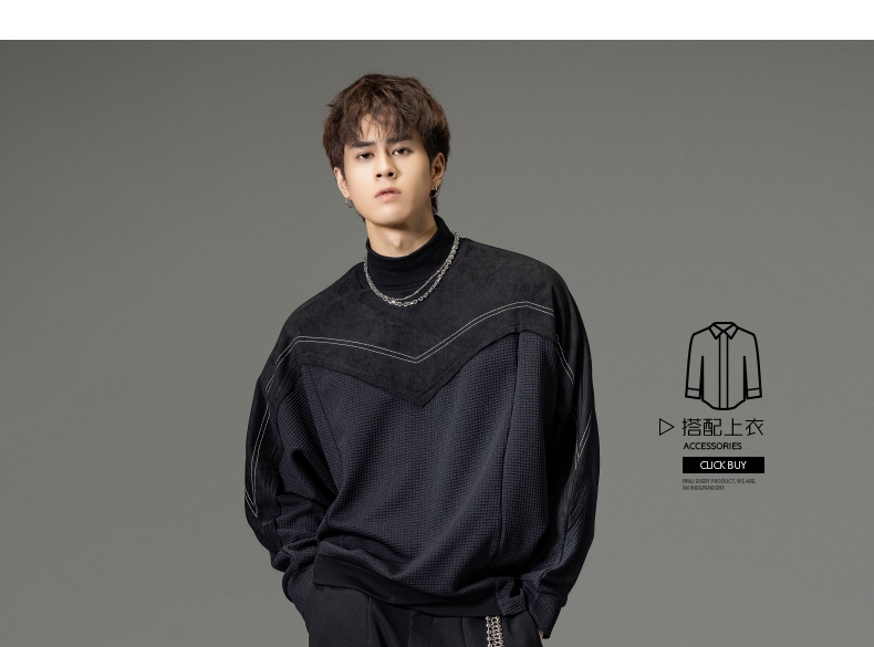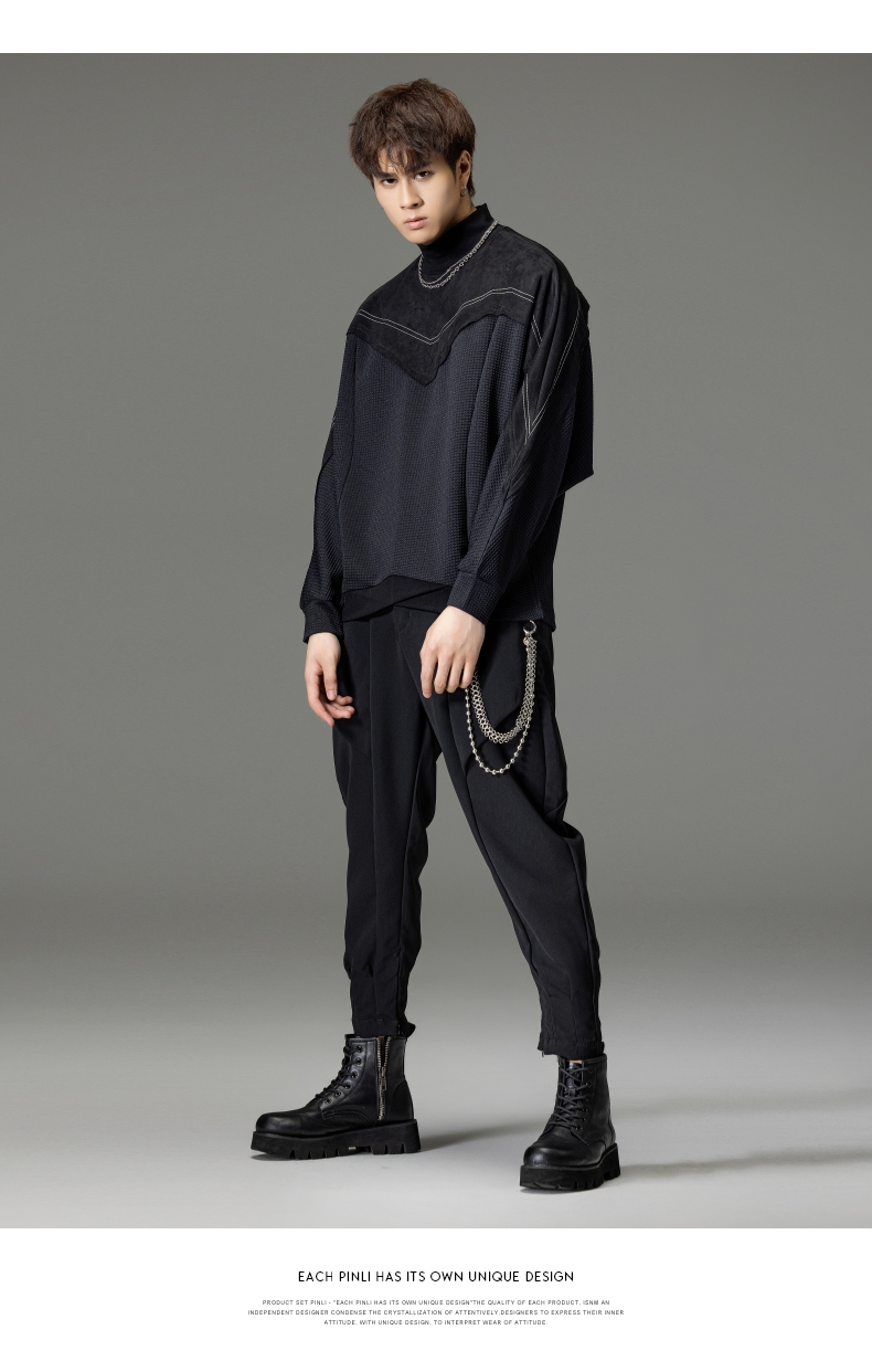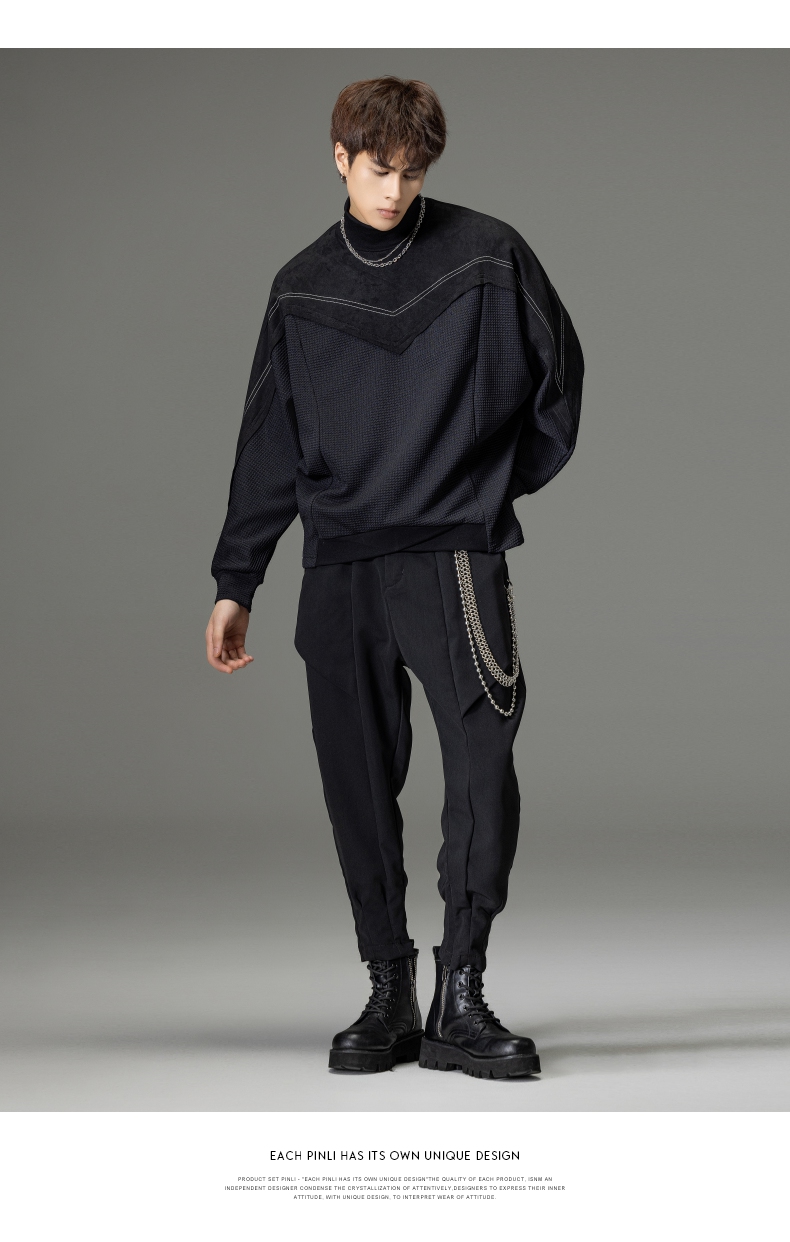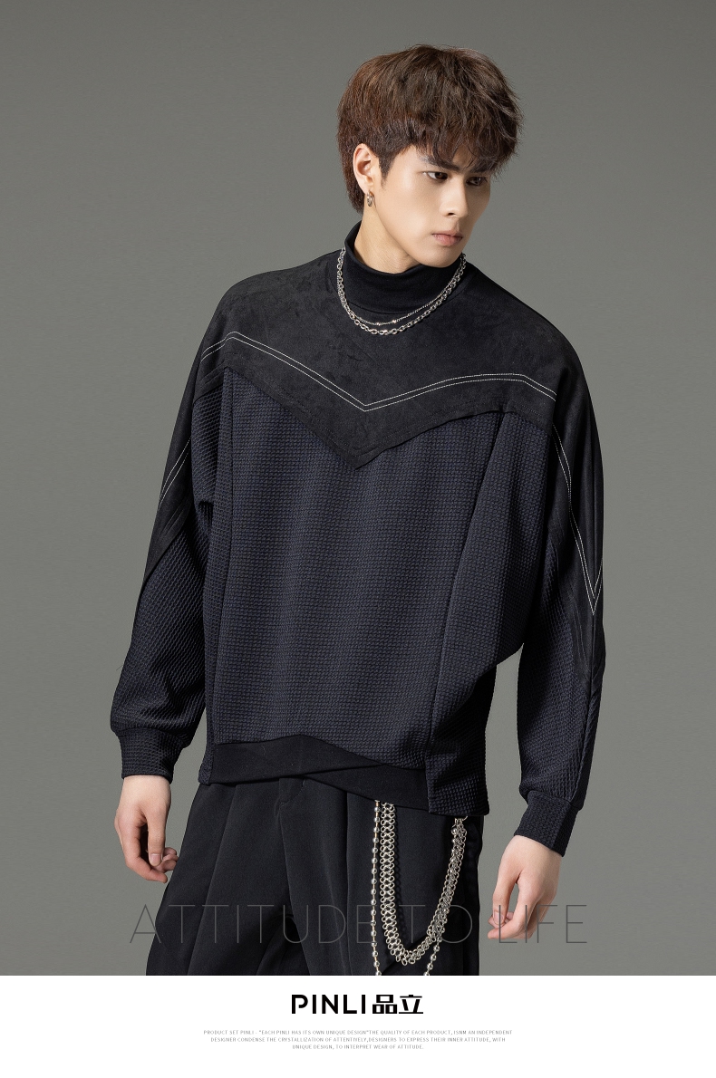 PINLI品立秋季新品半高领宽松卫衣男士拼接高街潮流休闲上衣B233109116