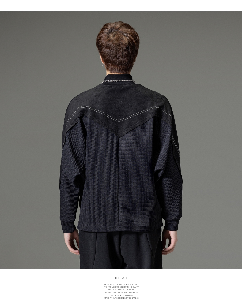 PINLI品立夏季新款设计感拼接短袖衬衫潮牌拉链宽松翻领上衣B252113039