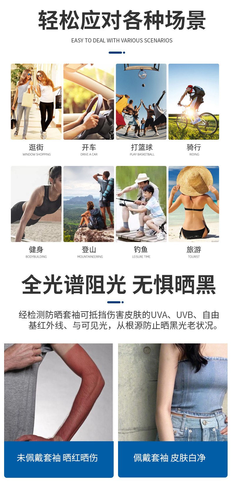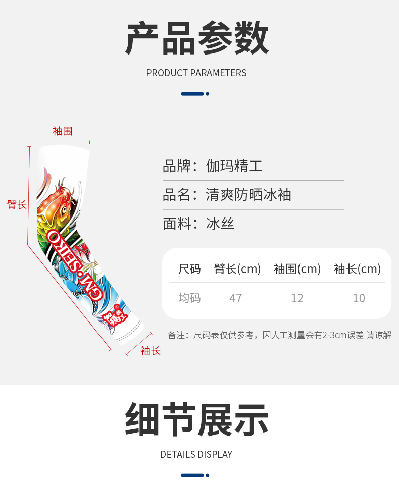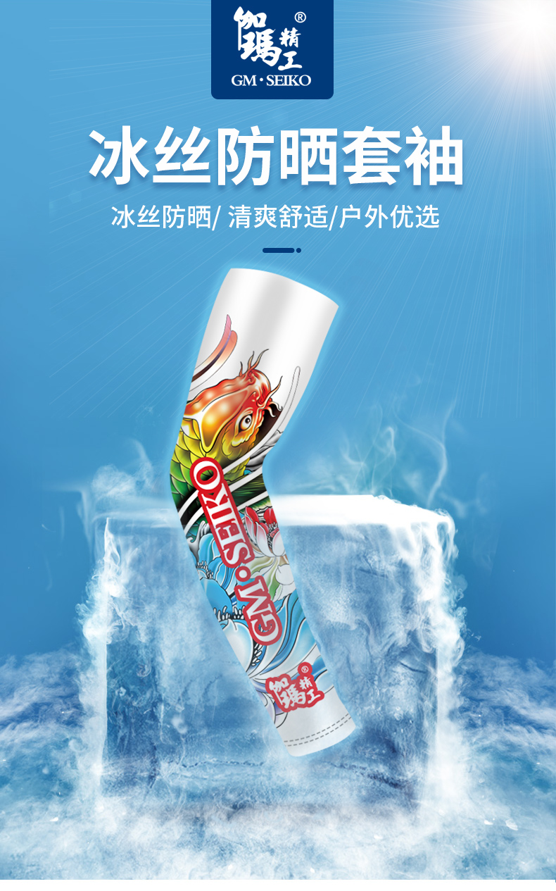 伽玛精工夏季冰袖男防紫外线袖套防晒冰丝护臂薄款冰霜钓鱼套袖