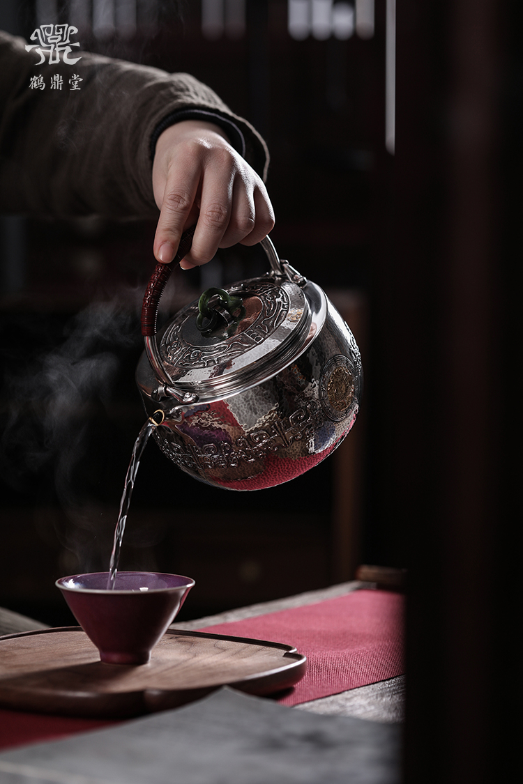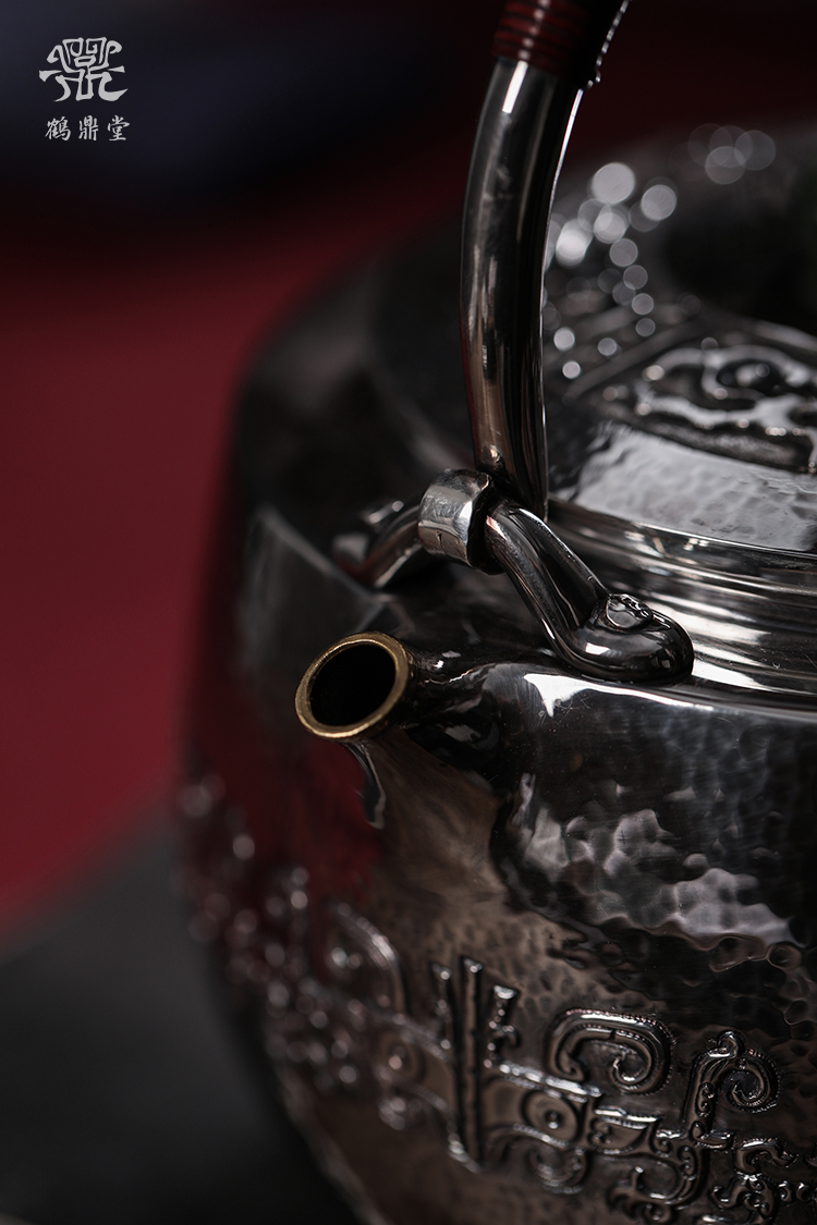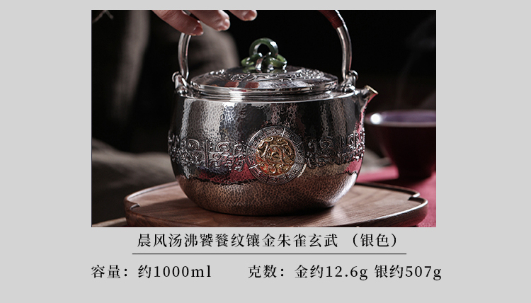 鹤鼎堂银壶闻天系列晨风汤沸饕餮纹镶金朱雀玄武(缺货)