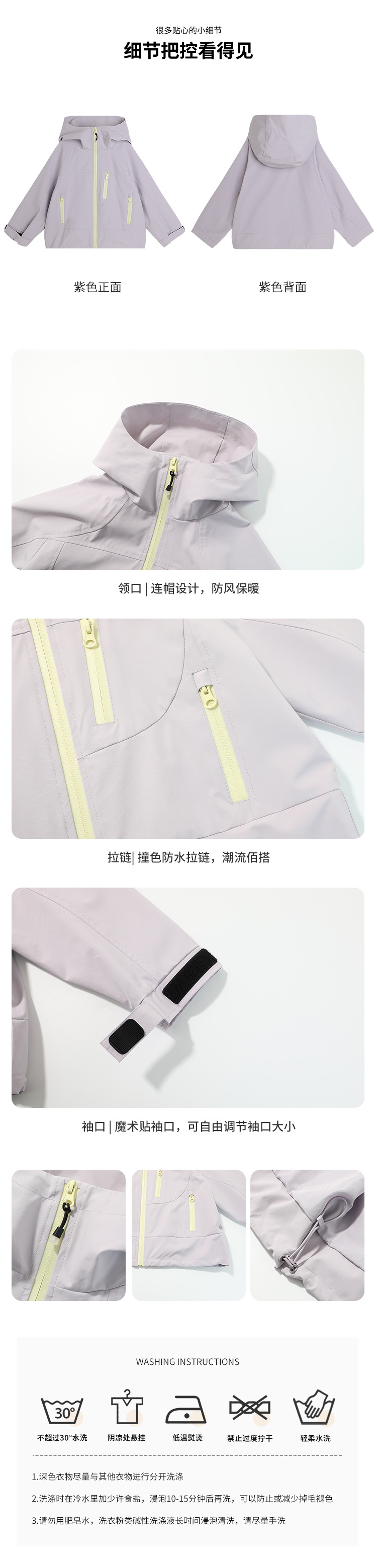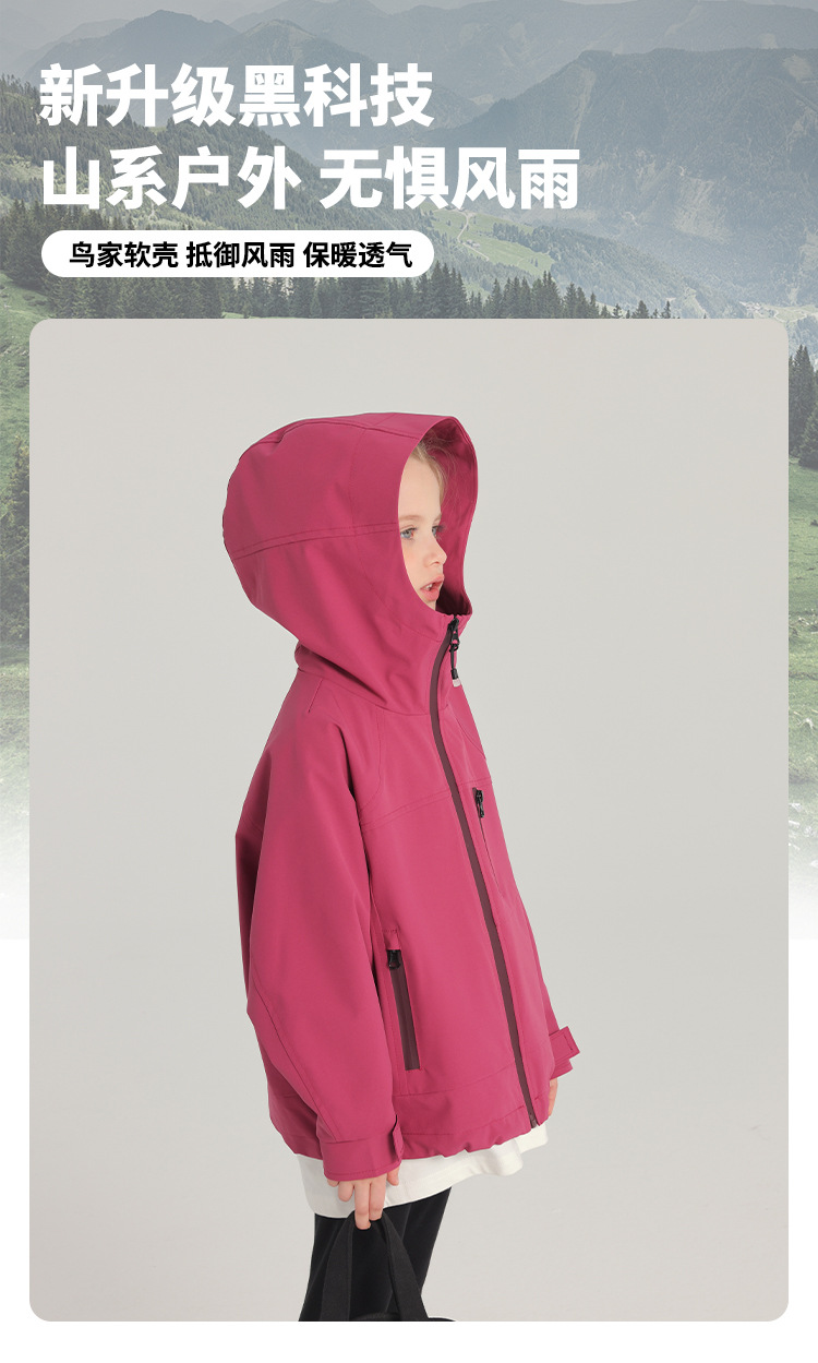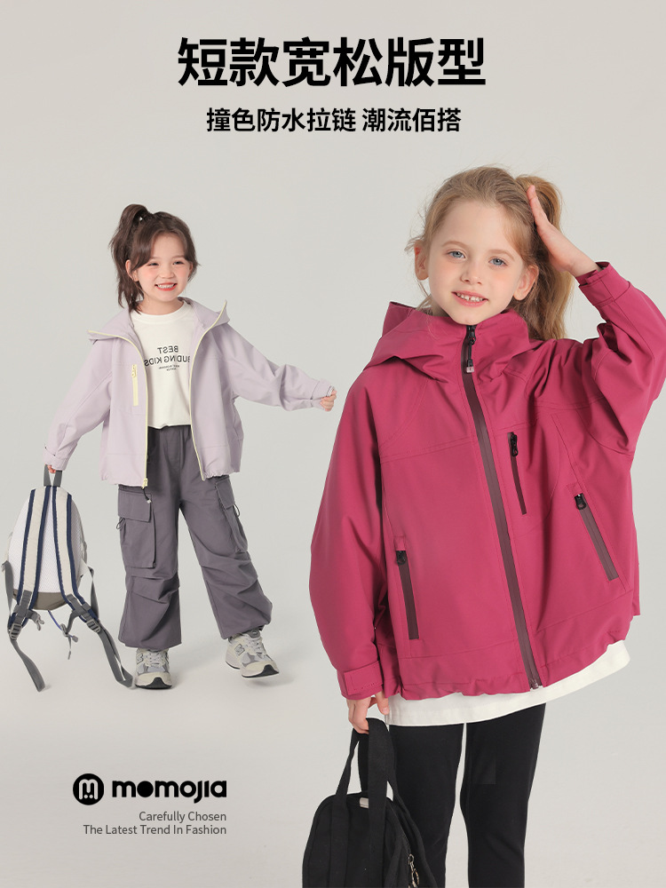 童装外套2025春季上市儿童防风纯色外套拉链款女童三防外套