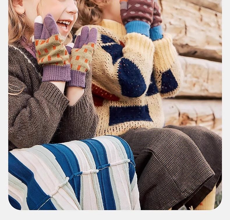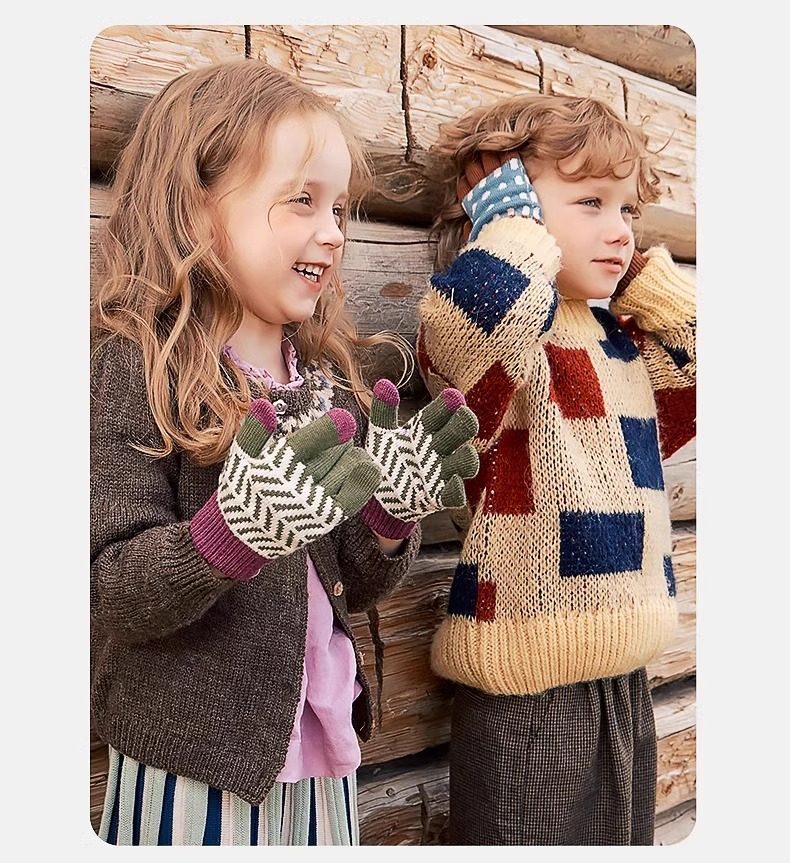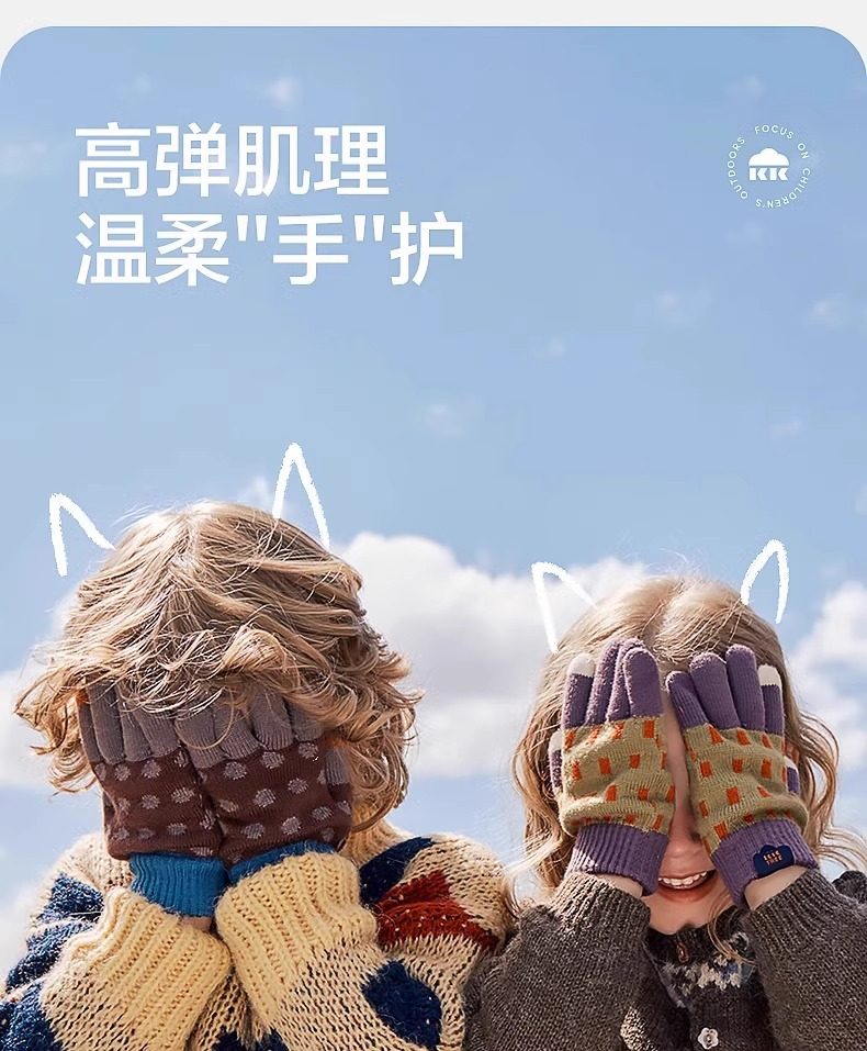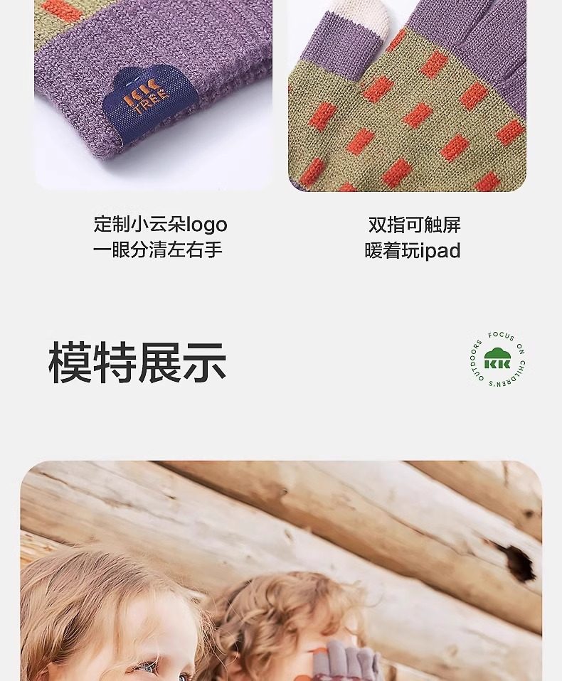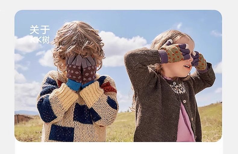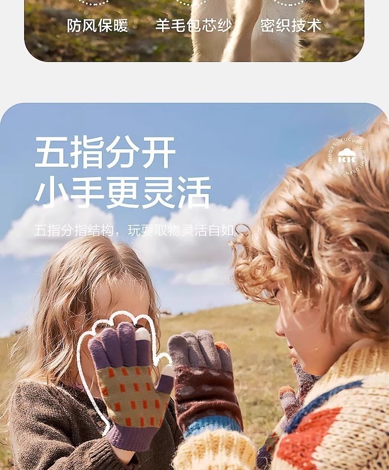 KK树儿童手套宝宝春秋季五指针织保暖冬天可触屏男童女孩分指学生