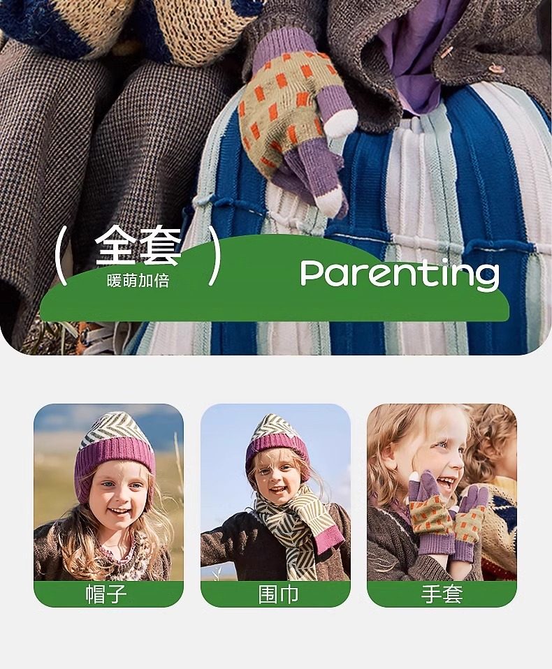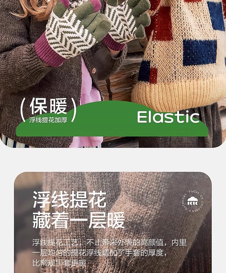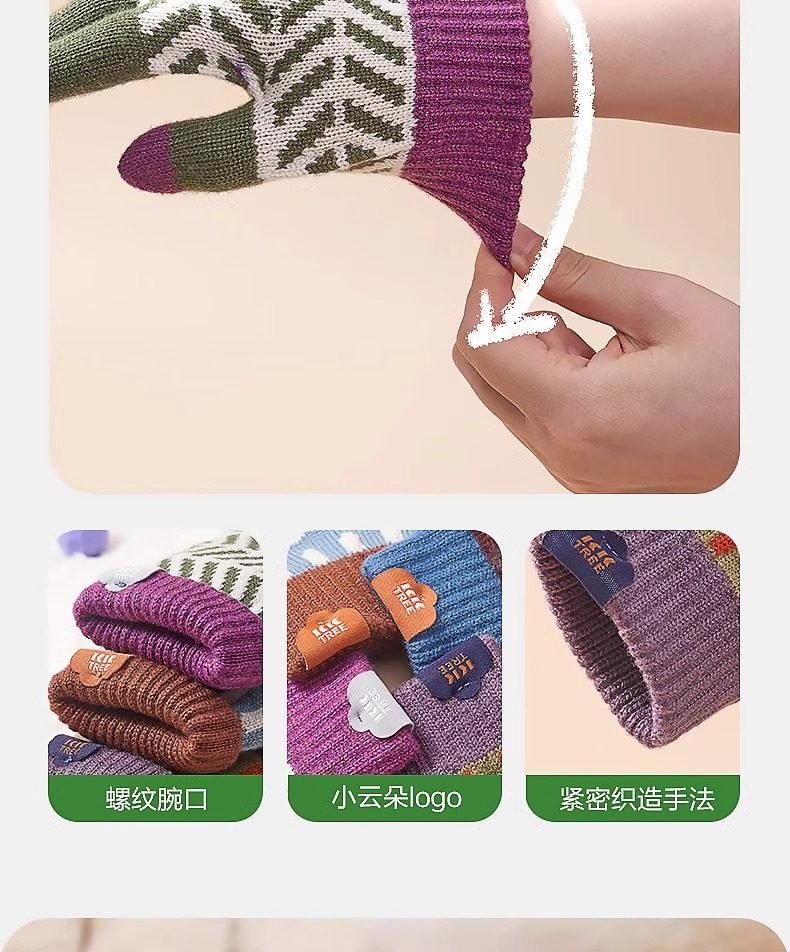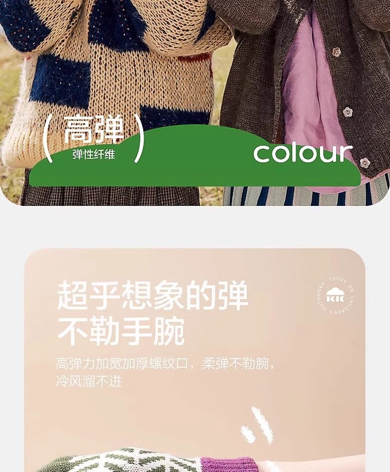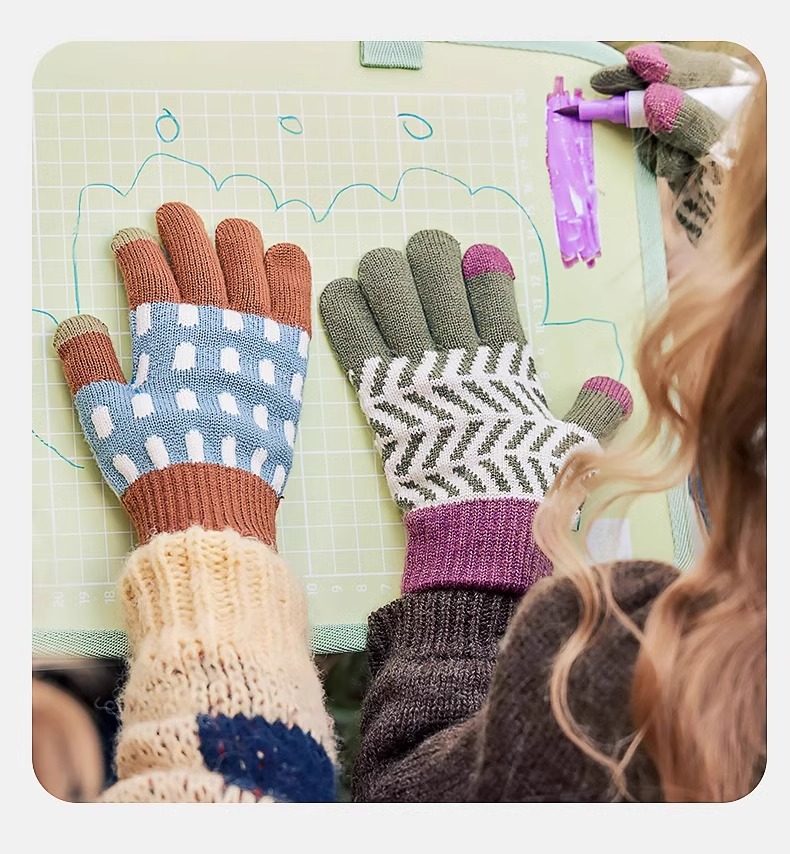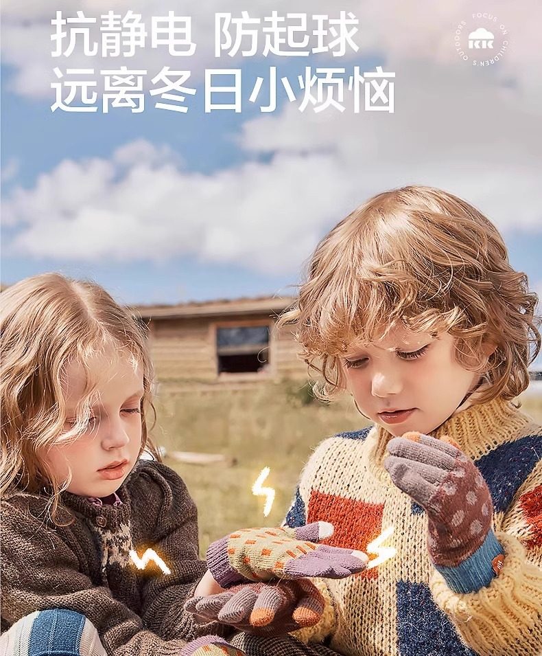 KK树儿童手套宝宝春秋季五指针织保暖冬天可触屏男童女孩分指学生