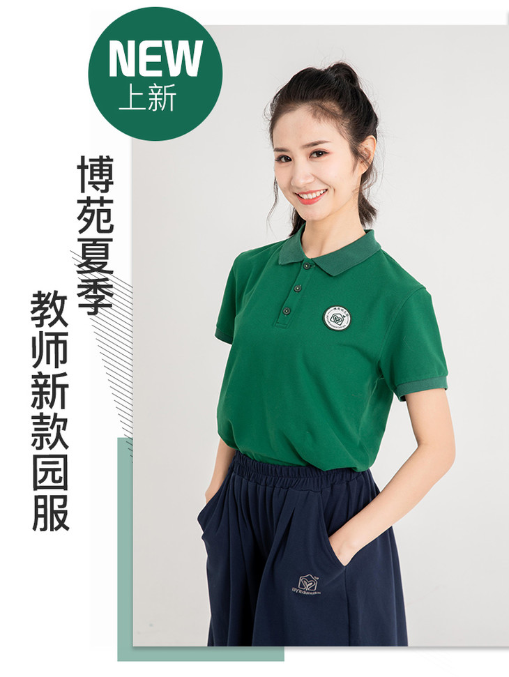 教师夏季新款墨绿色园服