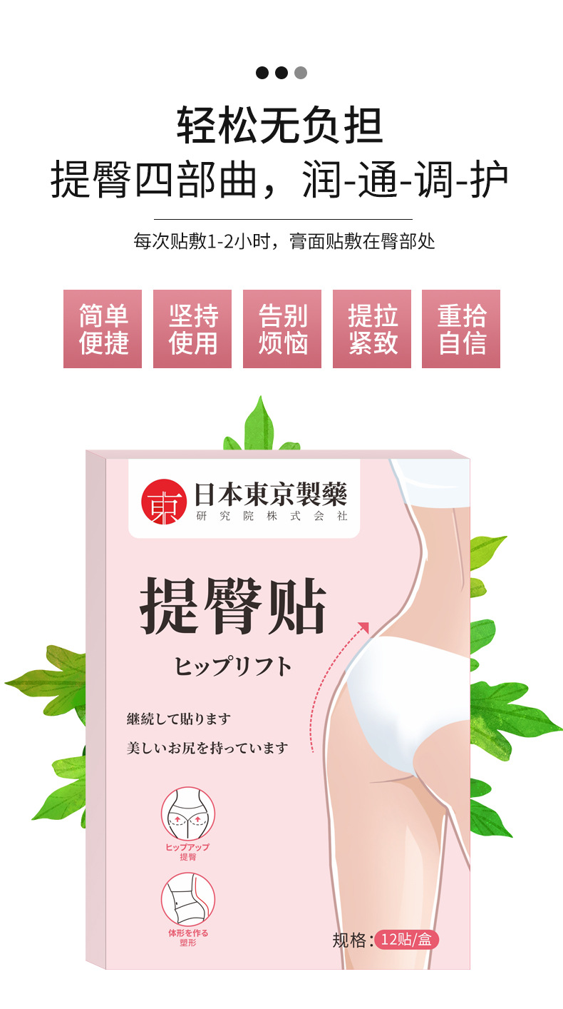 第二盒半价!提拉紧致塑形 提臀贴】简单便携,提臀四部曲轻松无负担,提拉紧致重拾自信,坚持贴敷成就蜜桃臀, 臀部翘臀蜜桃臀美臀贴
