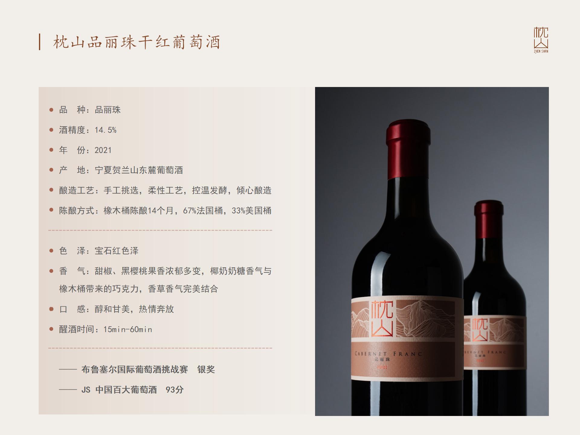 枕山品丽珠珍藏干红葡萄酒(2021)