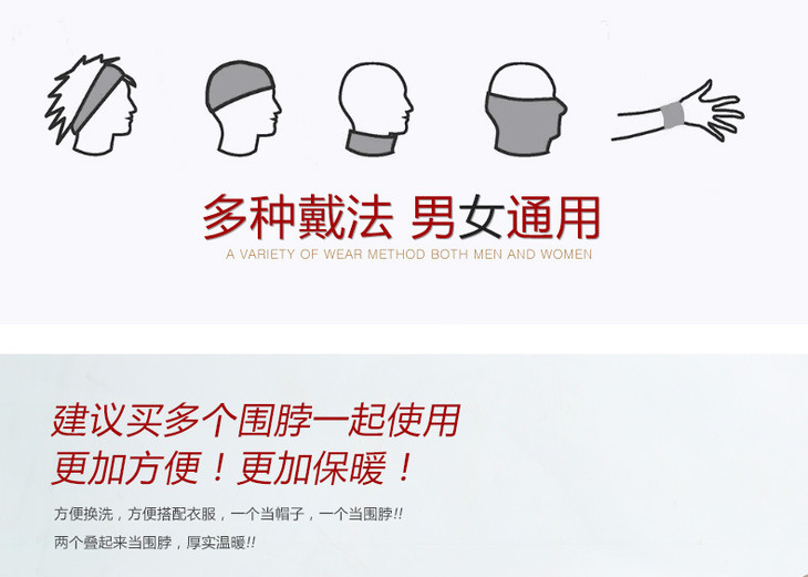 春季新户外仿羊绒加厚双层魔术头巾护脸防风保暖个性时尚围脖面罩