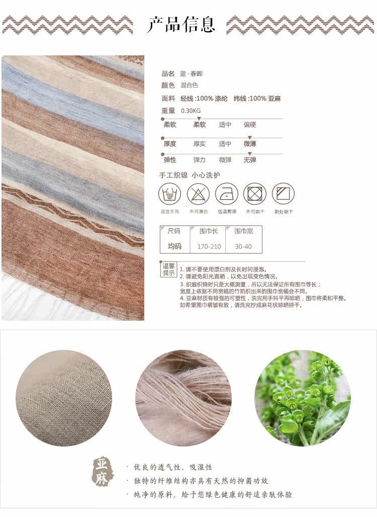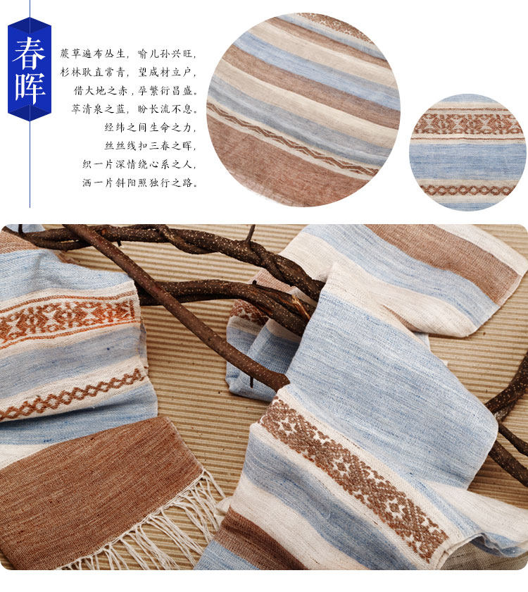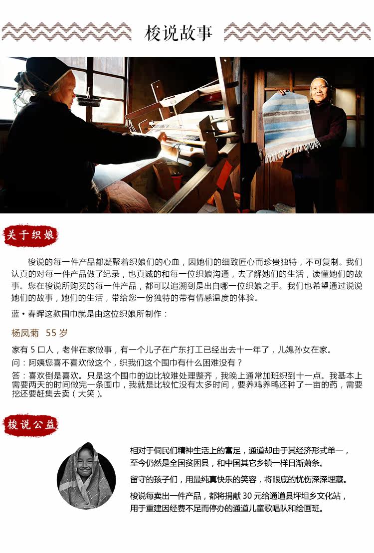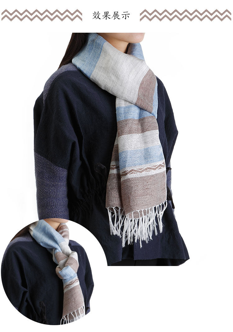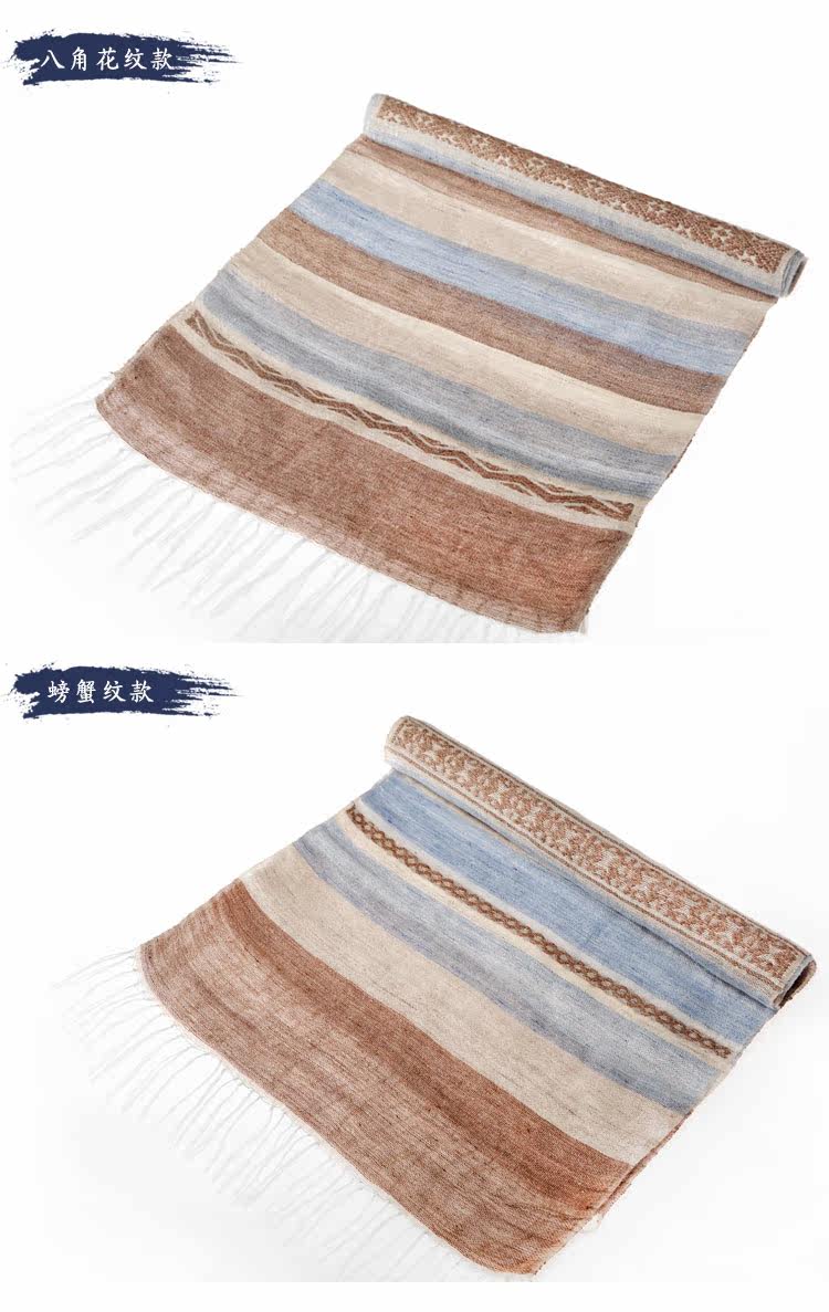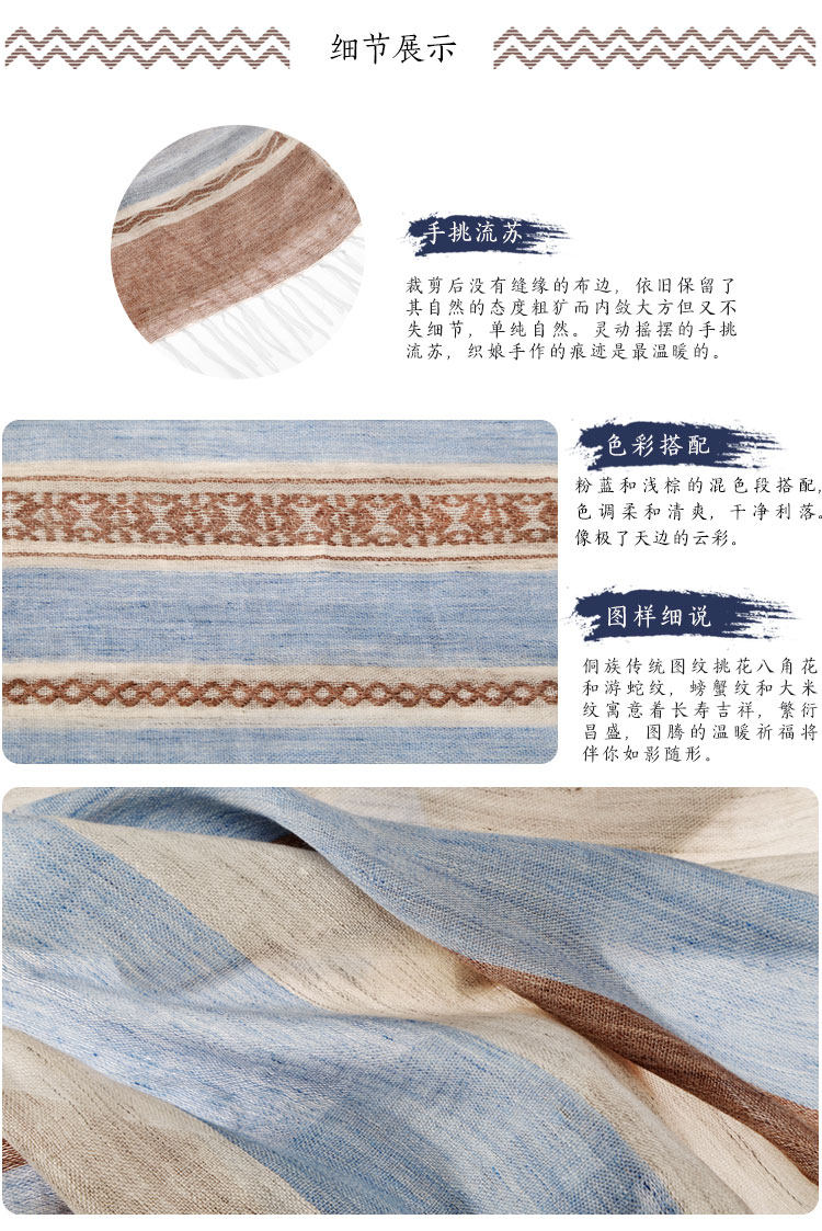 【梭说】 蓝.春晖 纯手工撞色亚麻围巾 侗族传统织锦工艺