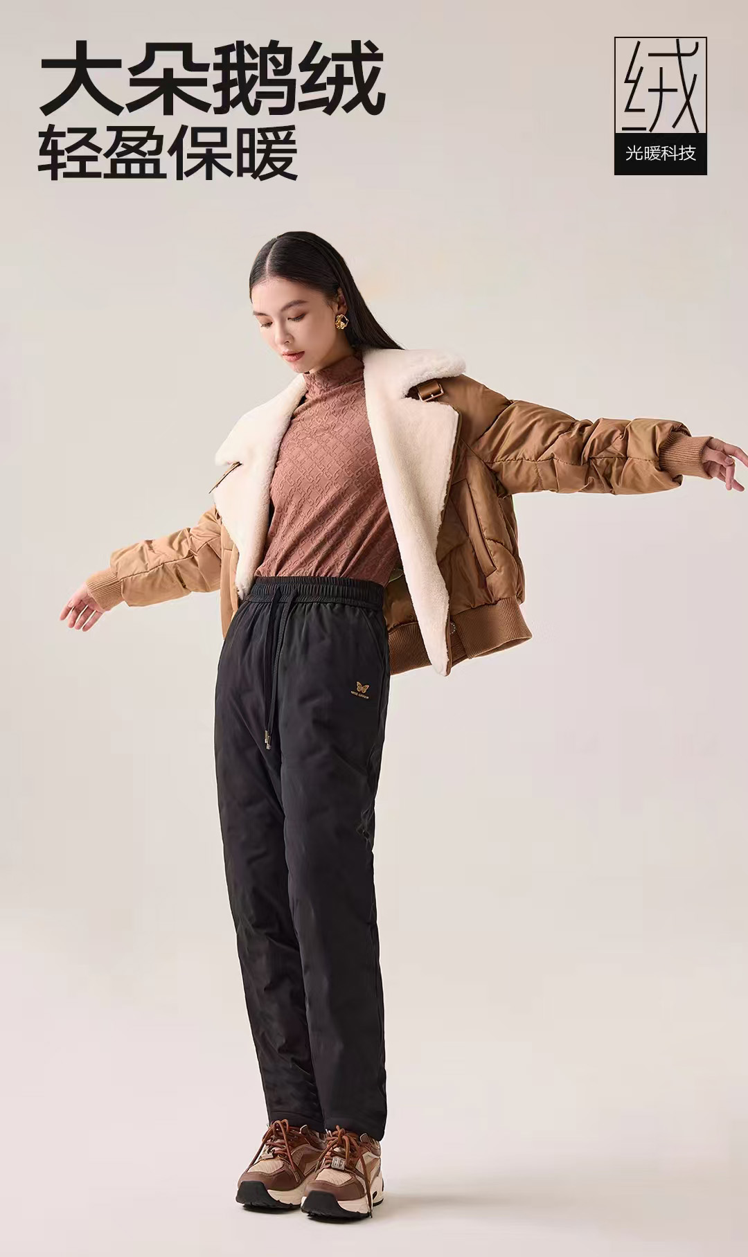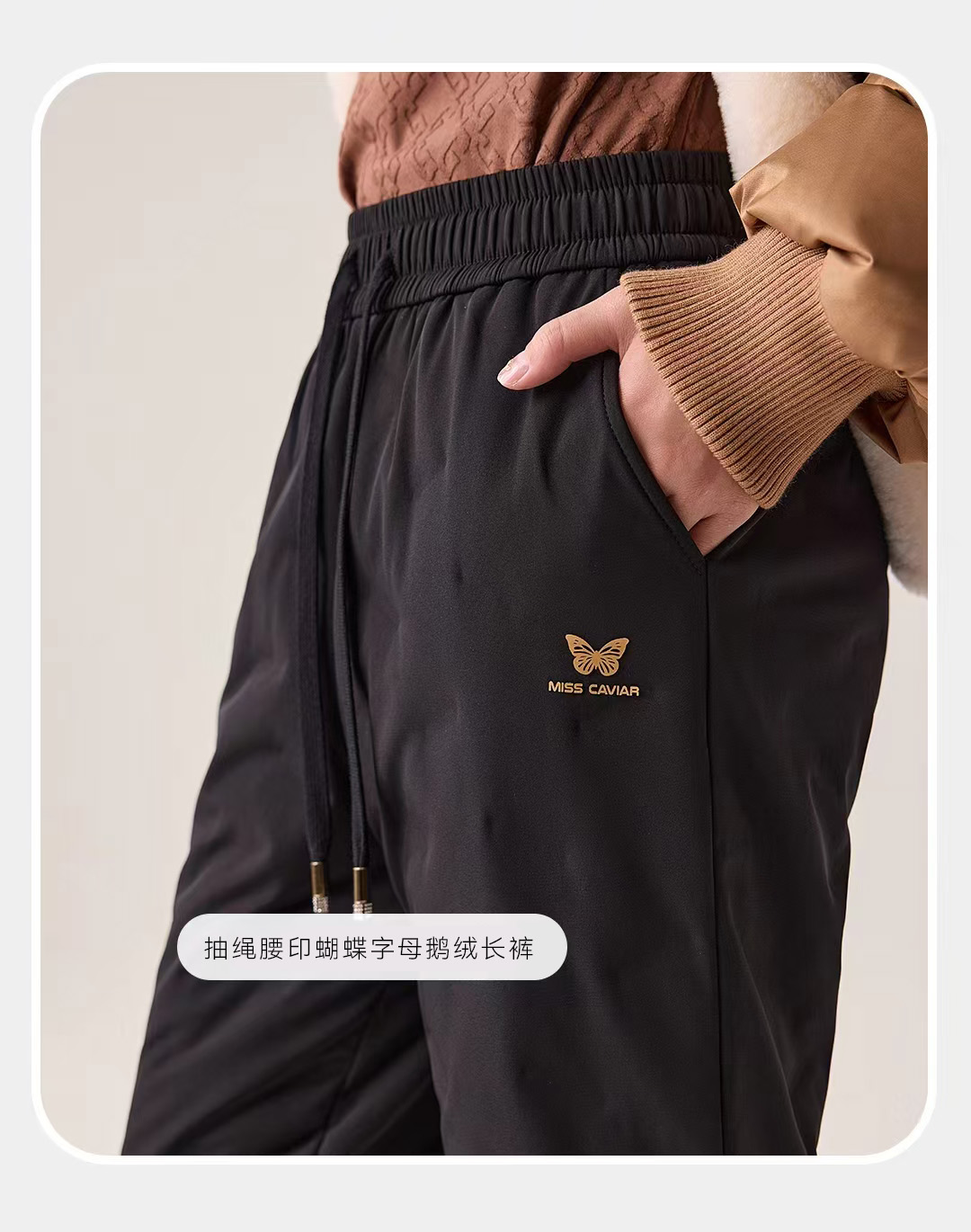 抽绳腰印蝴蝶字母鹅绒长裤 9523100013