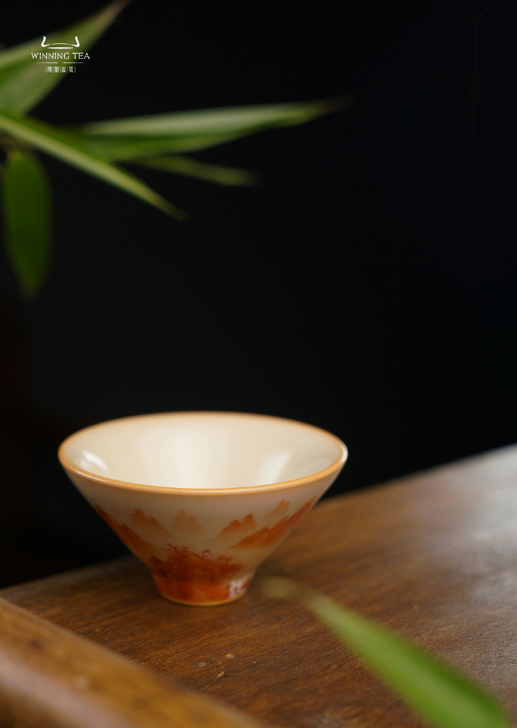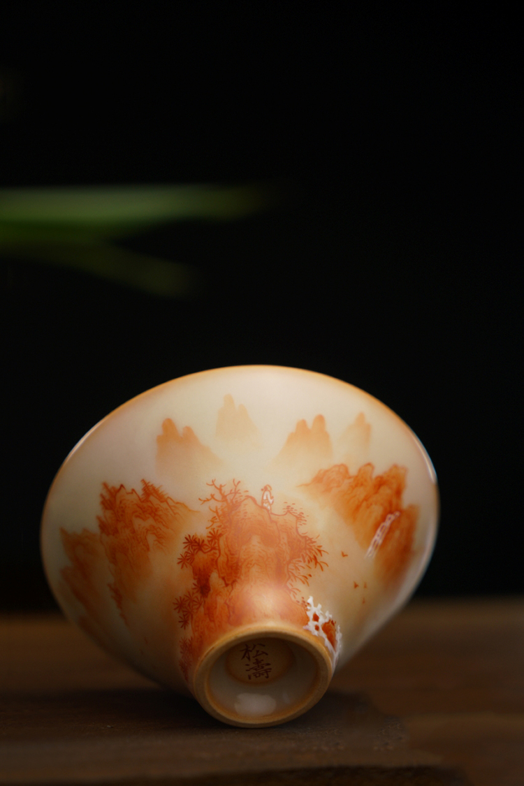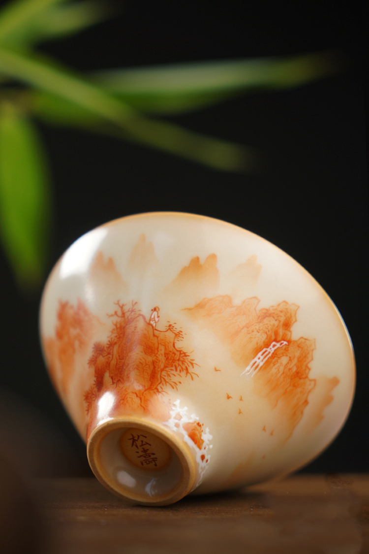 问鼎松涛彩绘哥窑斗笠杯(梵红山水)(缺货)