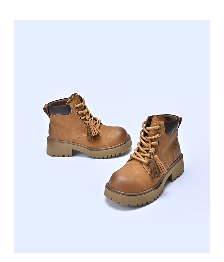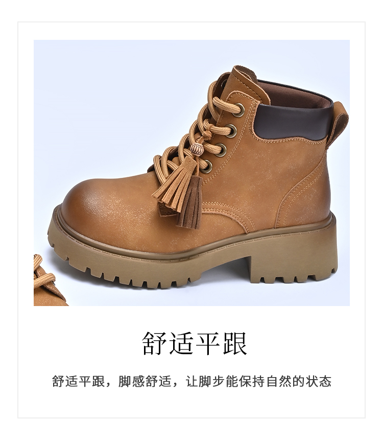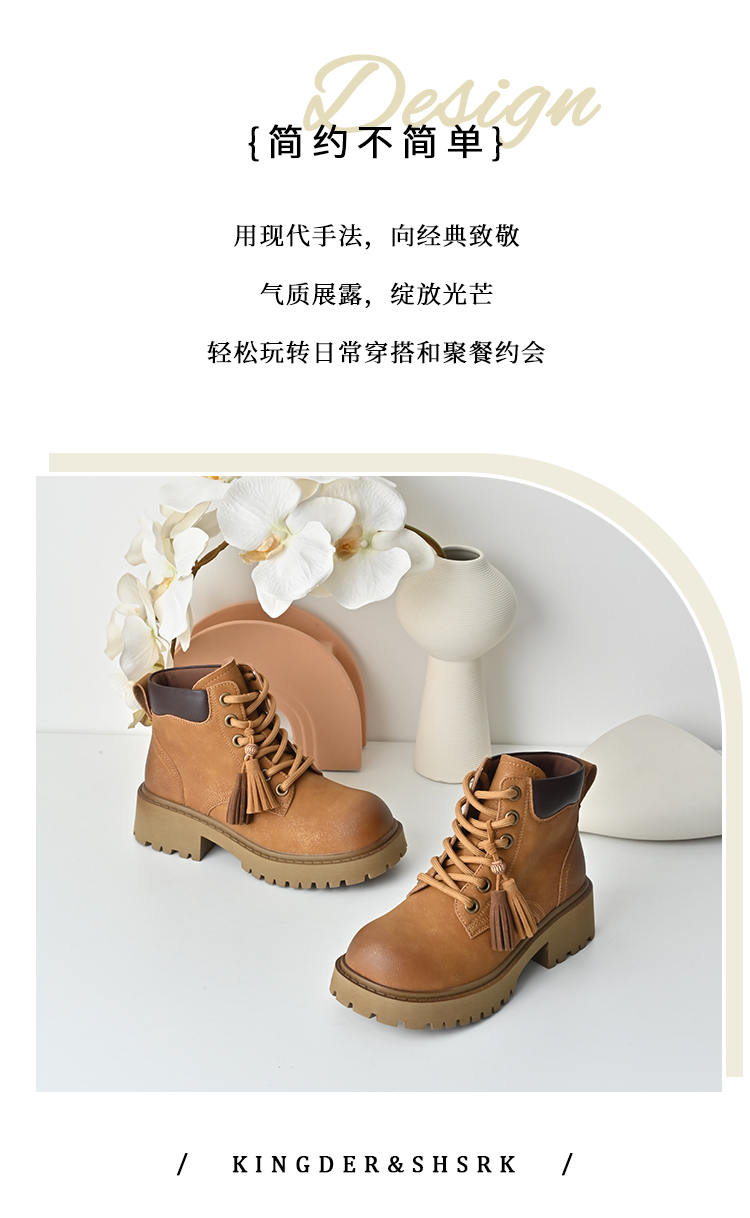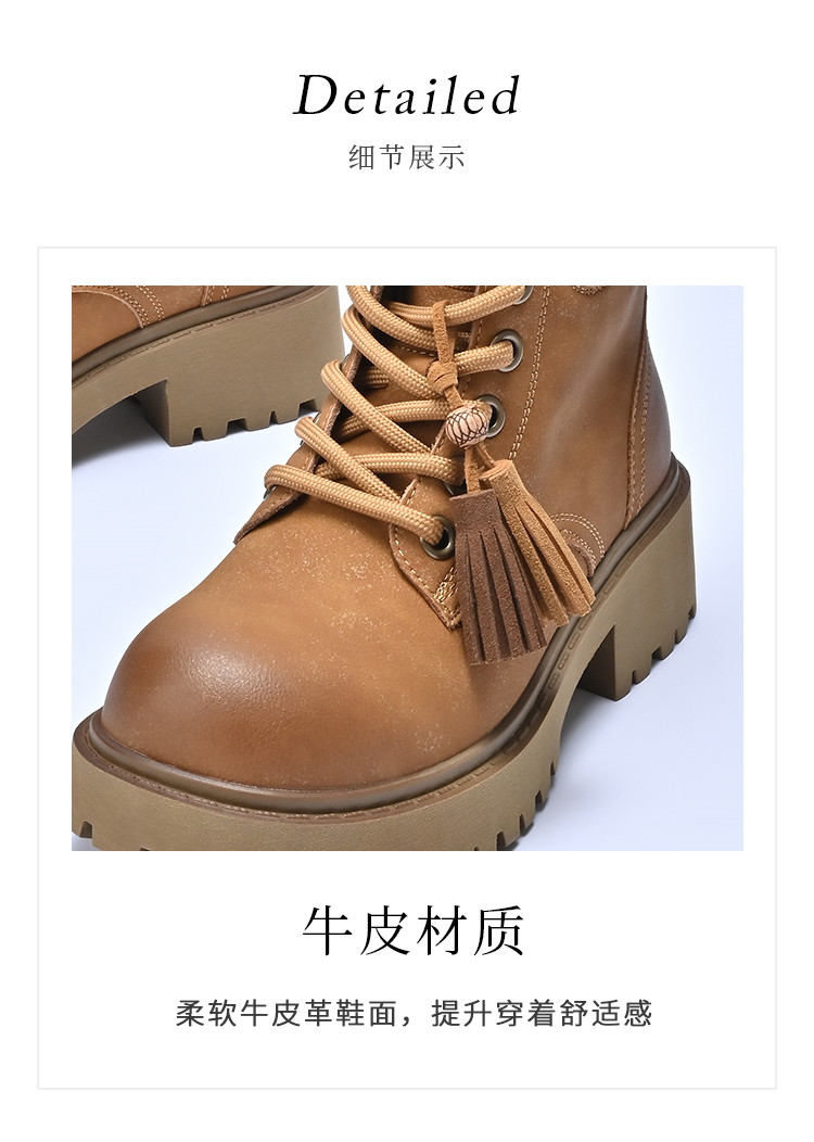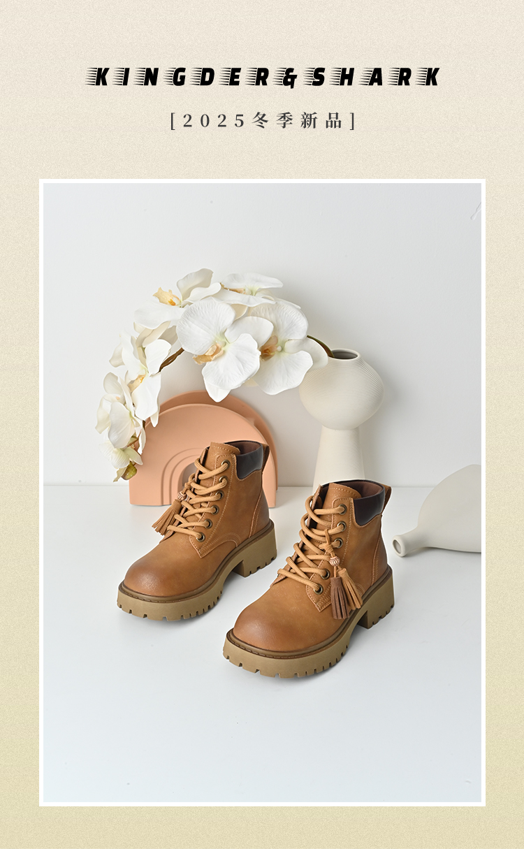 经典鲨2025冬季专柜新品牛皮革流苏系带低粗跟潮流马丁靴女KW142-558191