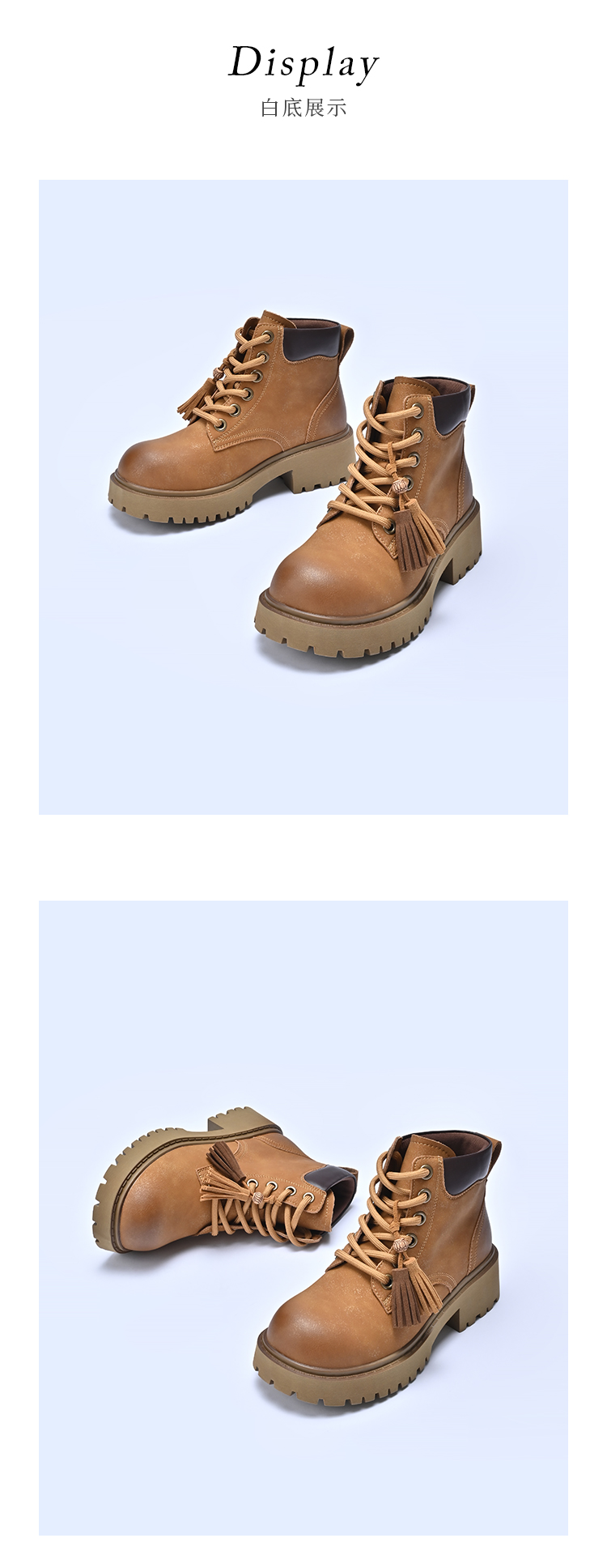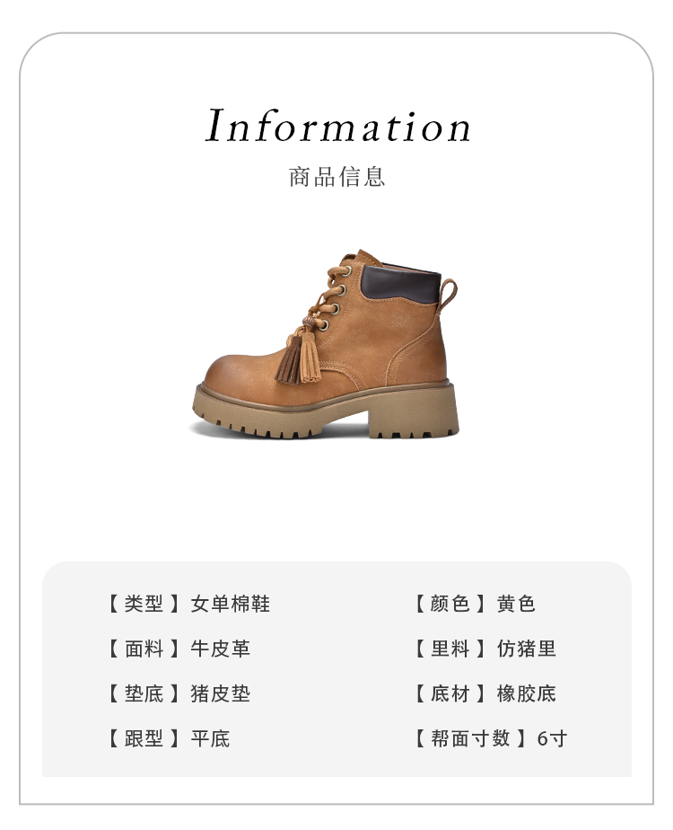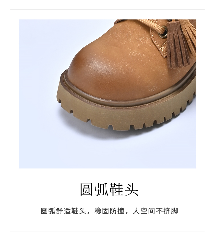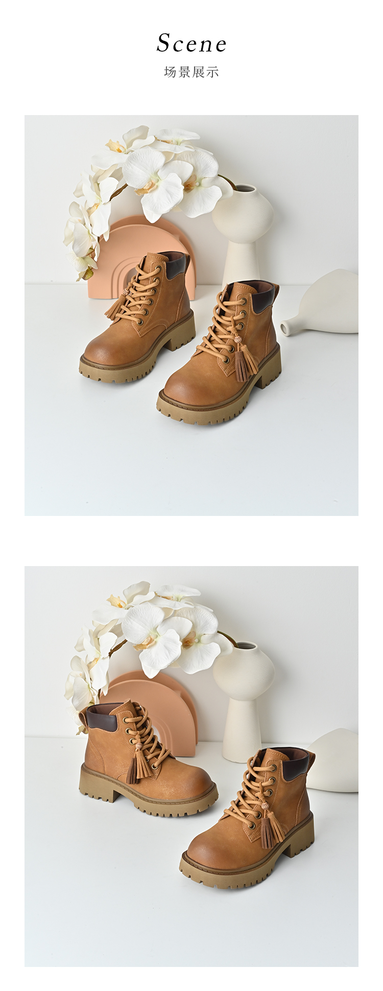 经典鲨2025冬季专柜新品牛皮革流苏系带低粗跟潮流马丁靴女KW142-558191