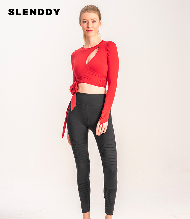 slenddy Wrinkle机车风高腰运动裤高弹紧身健身裤女外穿显瘦s6008