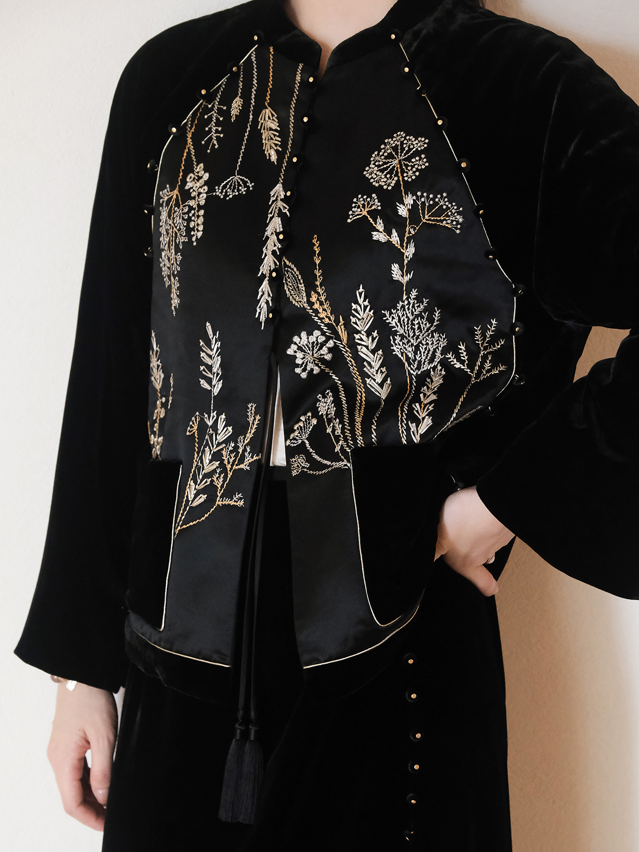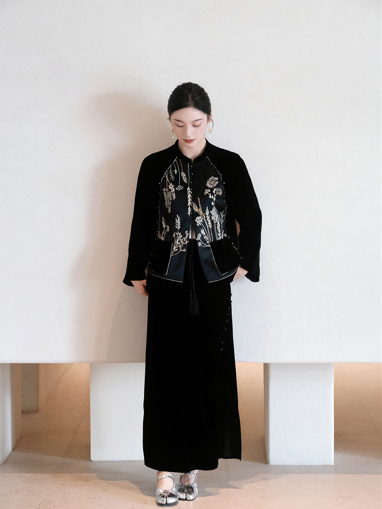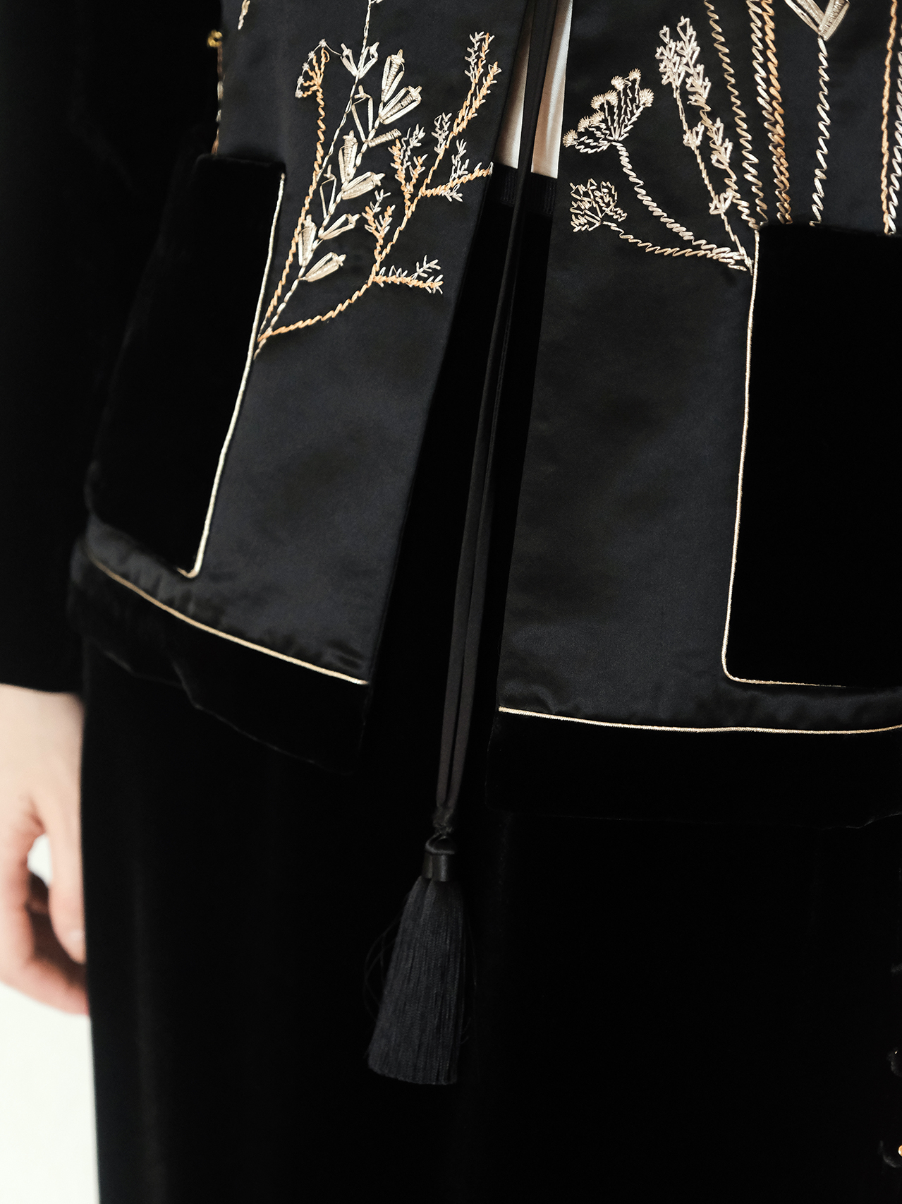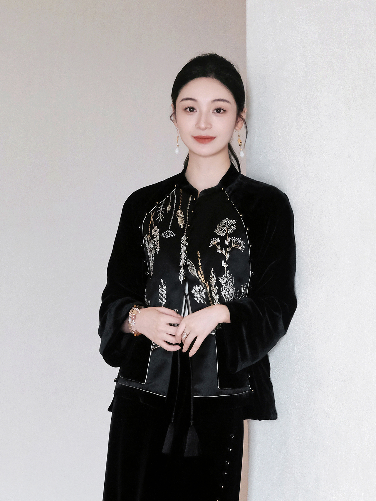 盛唐婧| 重磅醋酸拼丝绒轻奢刺绣外套