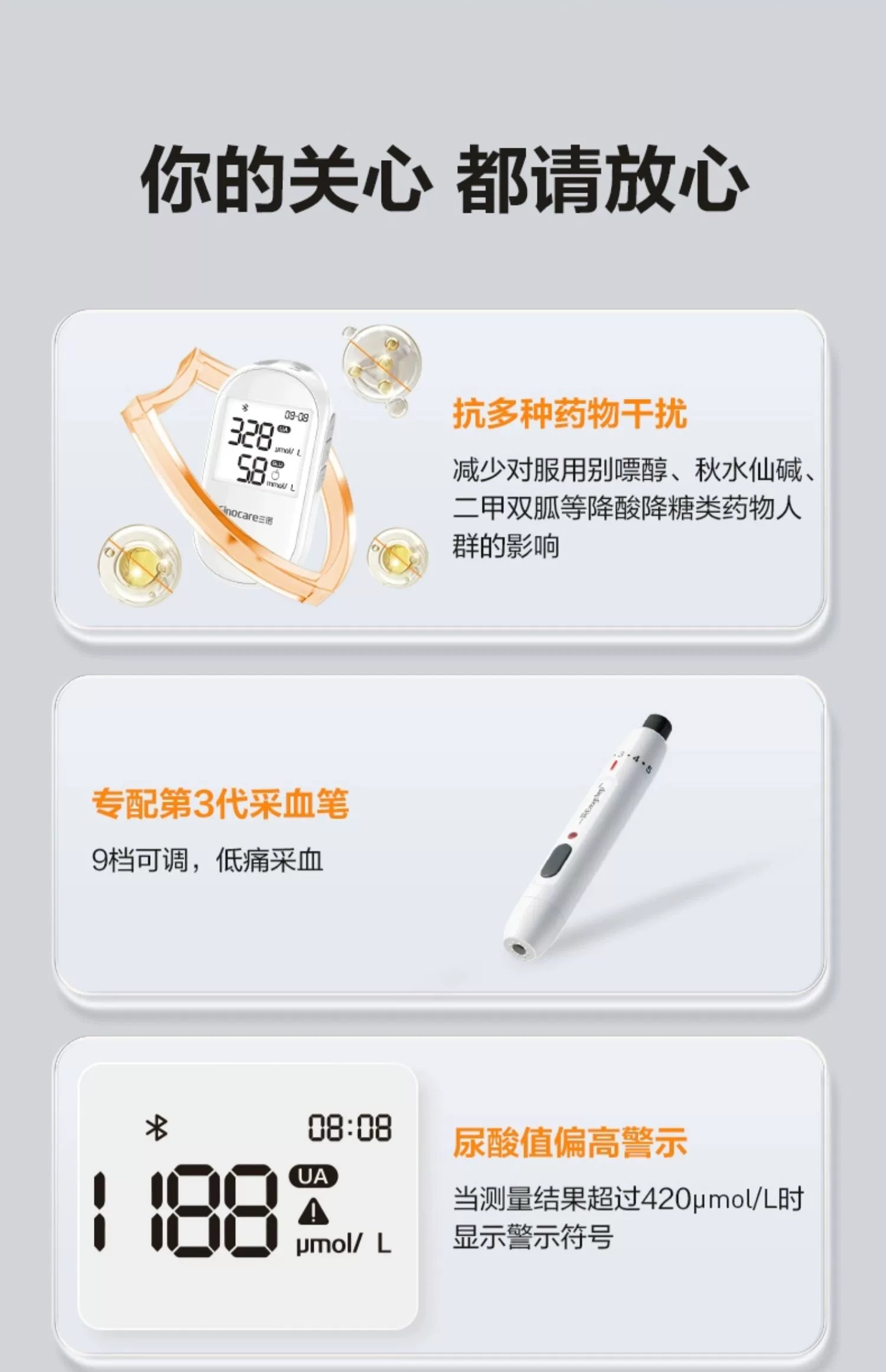 - 三诺血糖仪官方旗舰店,产品覆盖血糖、血脂、糖化血红蛋白、尿酸等多项糖尿病指标检测,中国血糖仪品牌领导者。