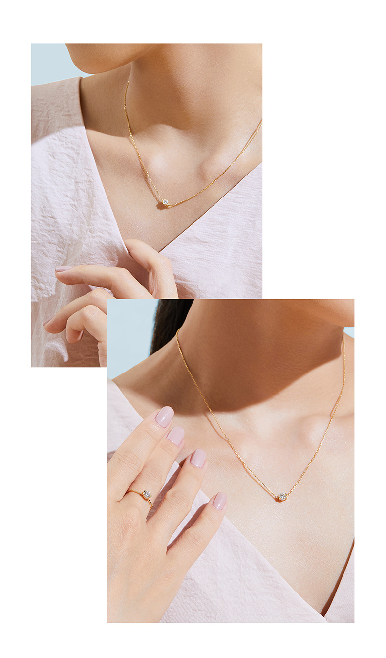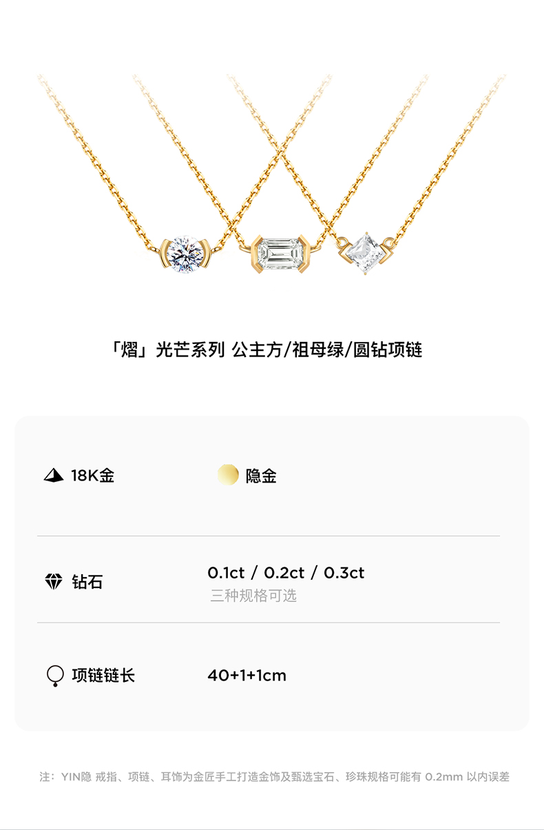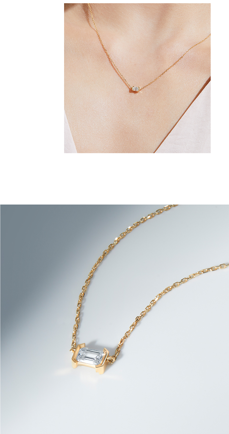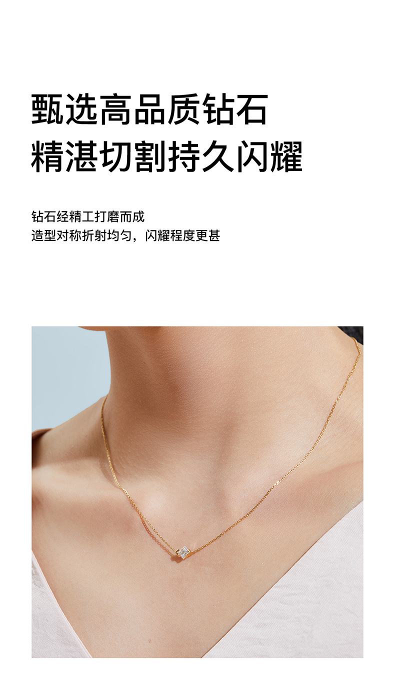 「熠」光芒系列 公主方钻/祖母绿钻/圆钻 18K金锁骨链