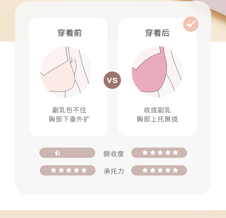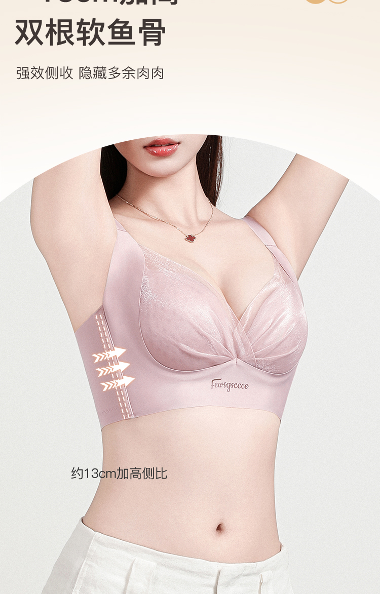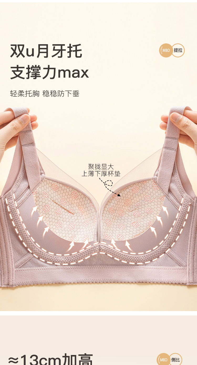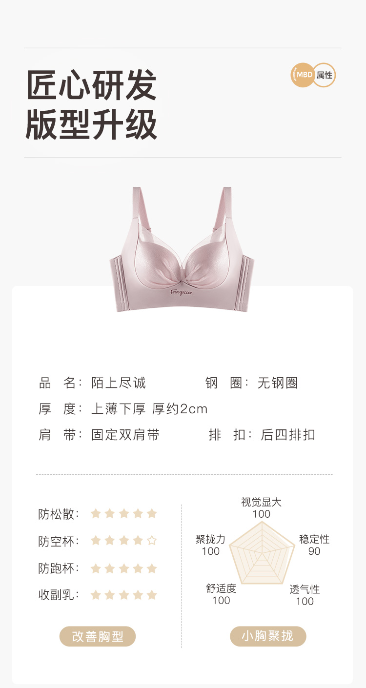 【小胸聚拢调整型】 粉底液肤内衣女上托有型收副乳无钢圈文胸陌上尽诚