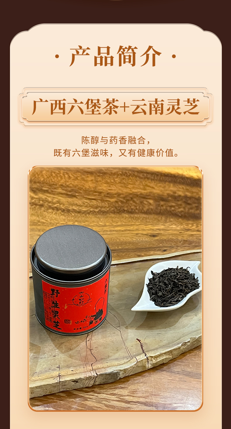 【灵芝六堡】六山知野丨2016灵芝六堡 广西六堡茶 黑茶 50g/250g/2500g 罐装(支持试喝1泡)