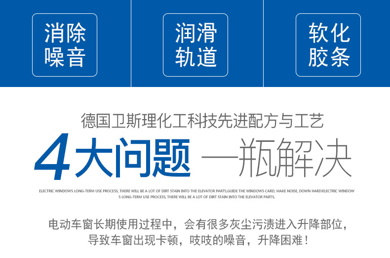 【软化胶条 消除卡顿噪音】卫斯理车窗润滑剂汽车玻璃电动天窗轨道油脂升降车窗车门润滑剂