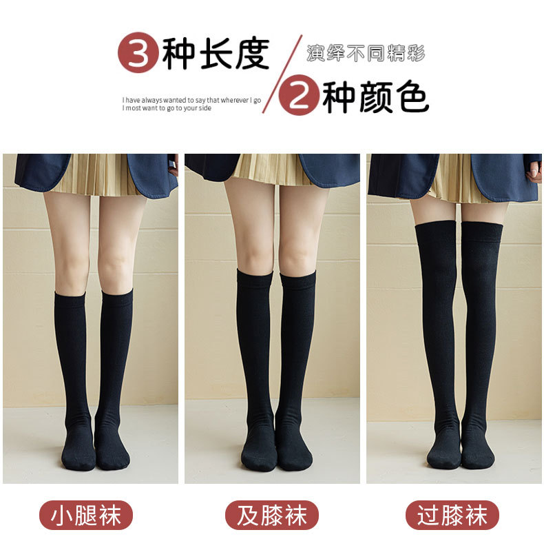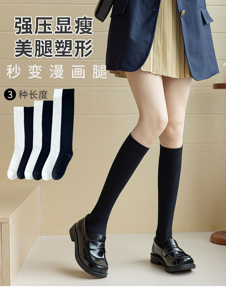 【小腿袜压力袜】秋冬女过膝长筒 黑色瘦腿弹力袜 棉透气防臭压缩袜