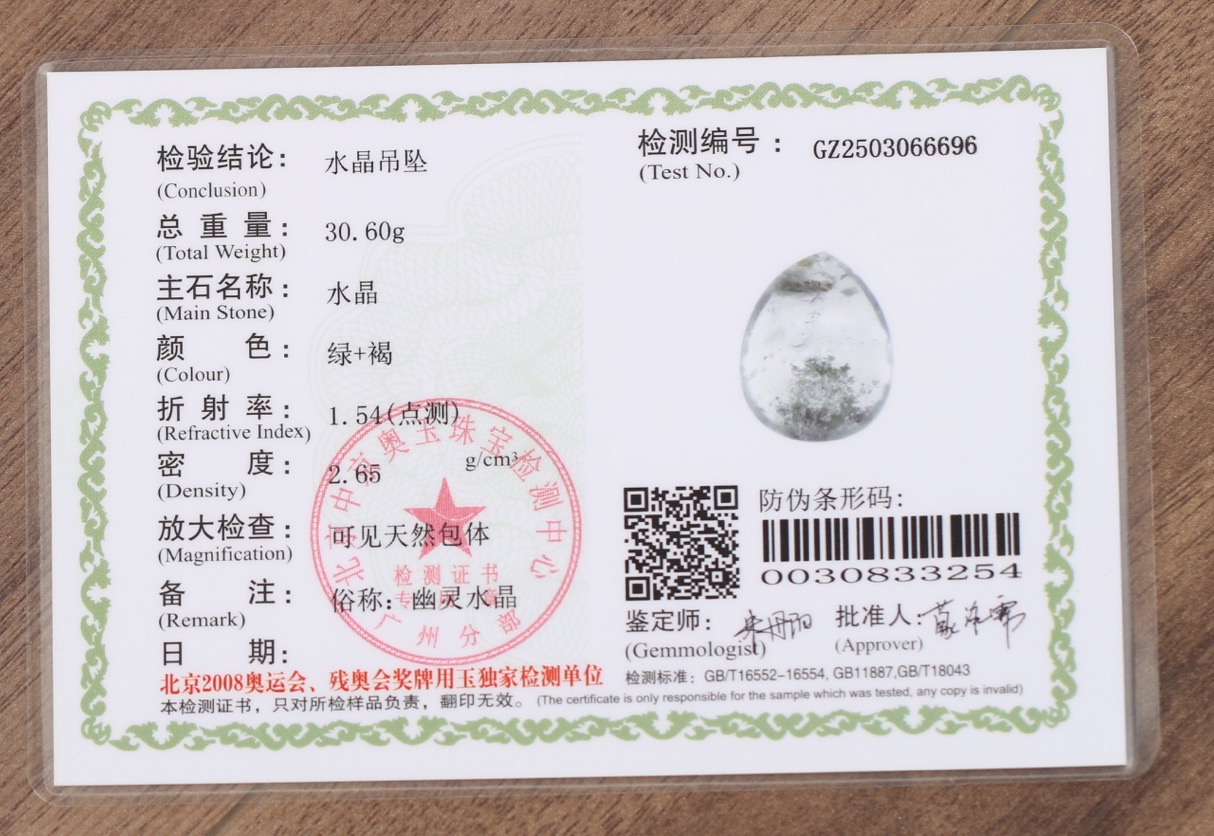 绿幽灵水晶吊坠 配精美挂绳