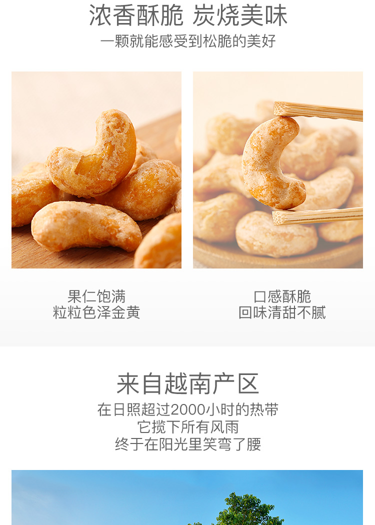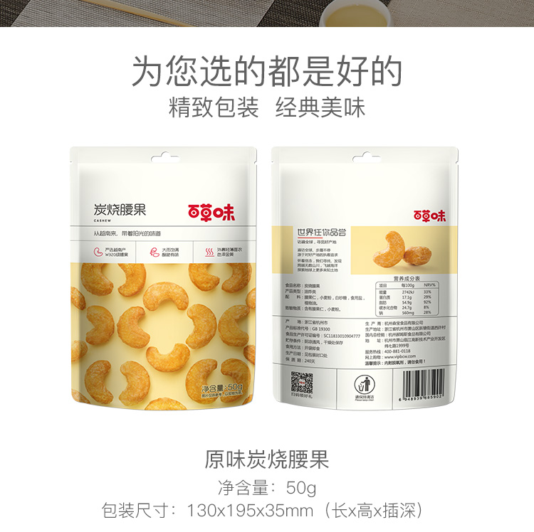百草味炭烧腰果50g坚果干果仁休闲食品网红零食