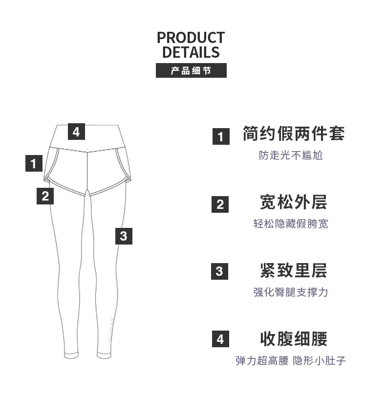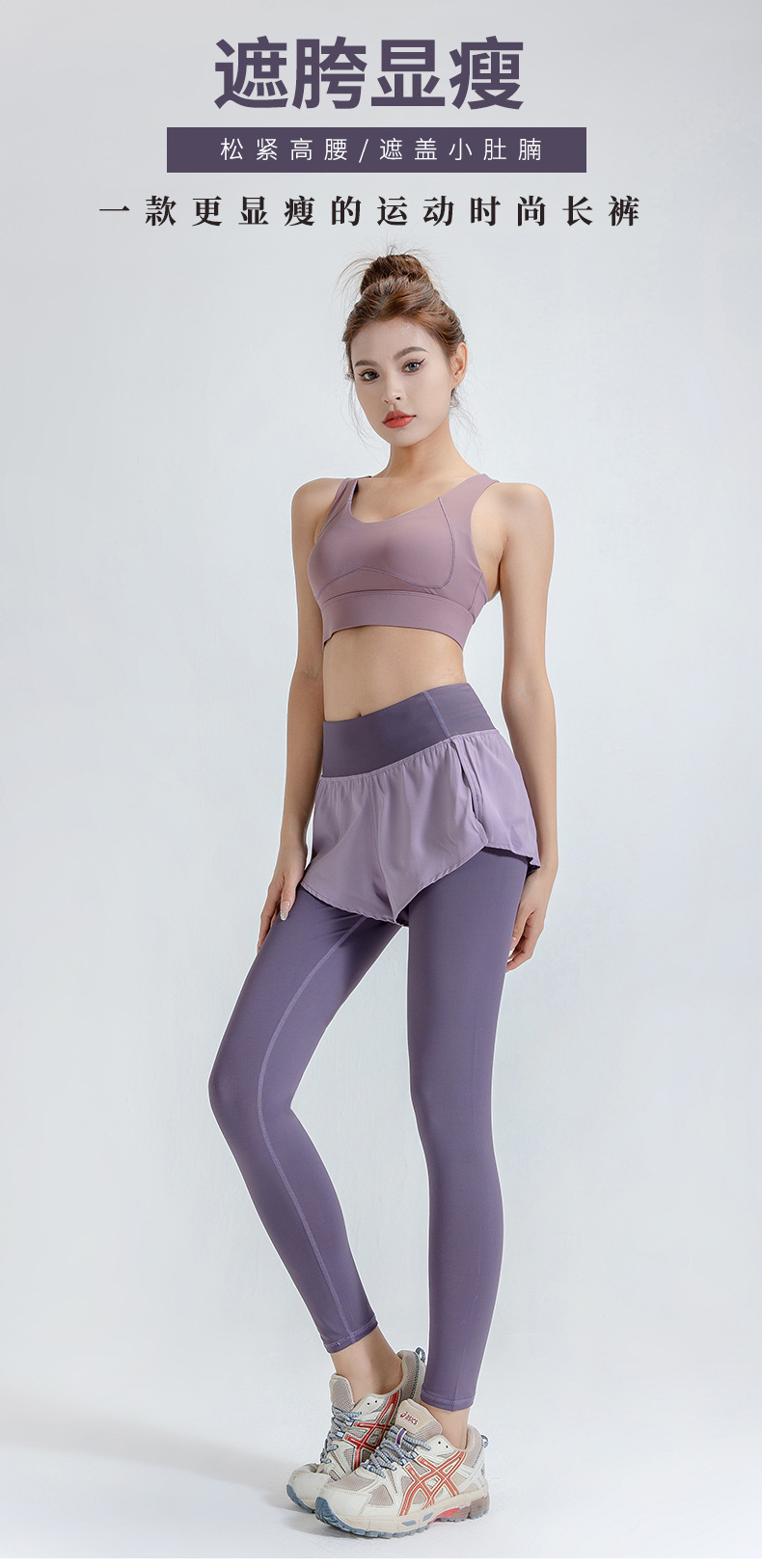 跃牌(呗咪纷纷系列)假两件瑜伽裤健身裤女速干显瘦长裤JSK017(直播仓)