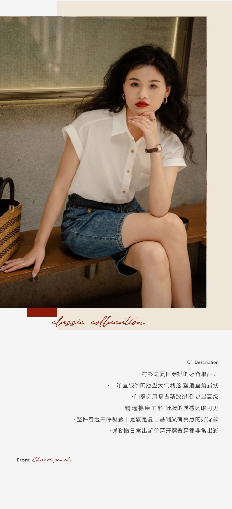 【夏日美搭】法式小飞袖通勤衬衫,奢级棉麻混纺、呼吸感十足