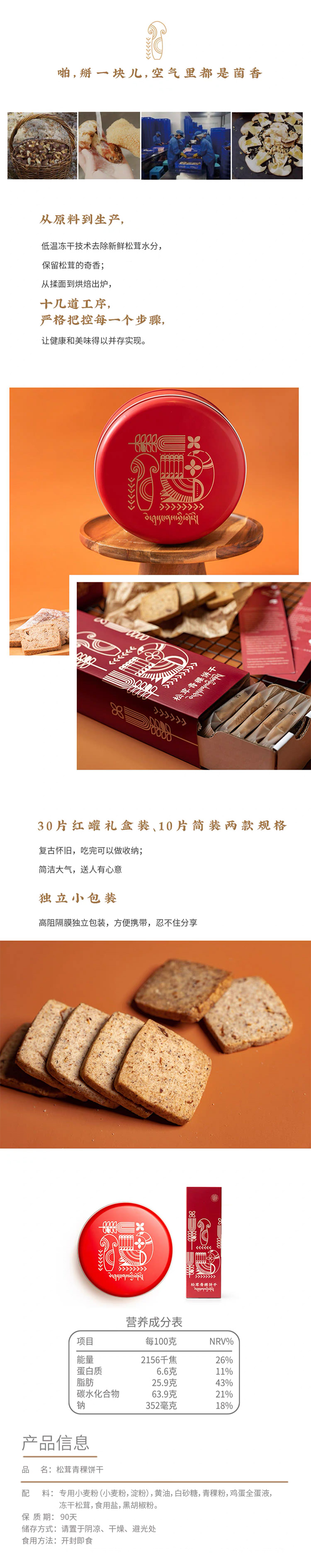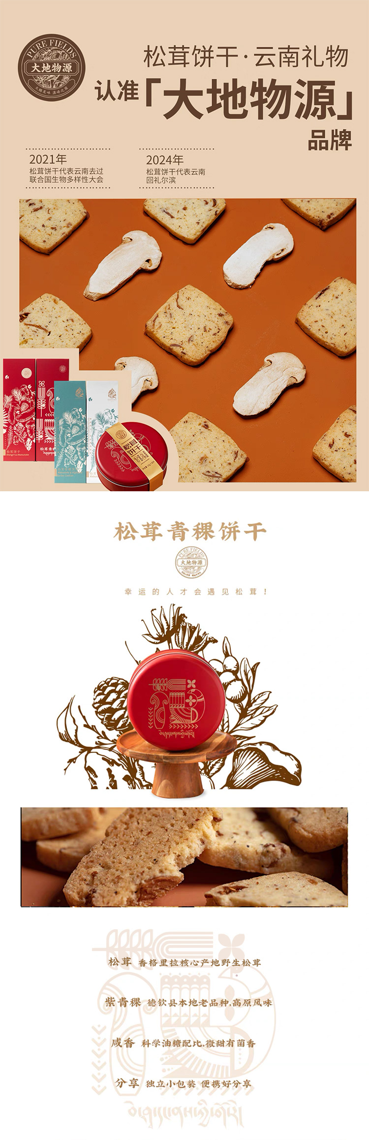 大地物源 松茸青稞饼干100g/盒 独立包装 咸香酥脆
