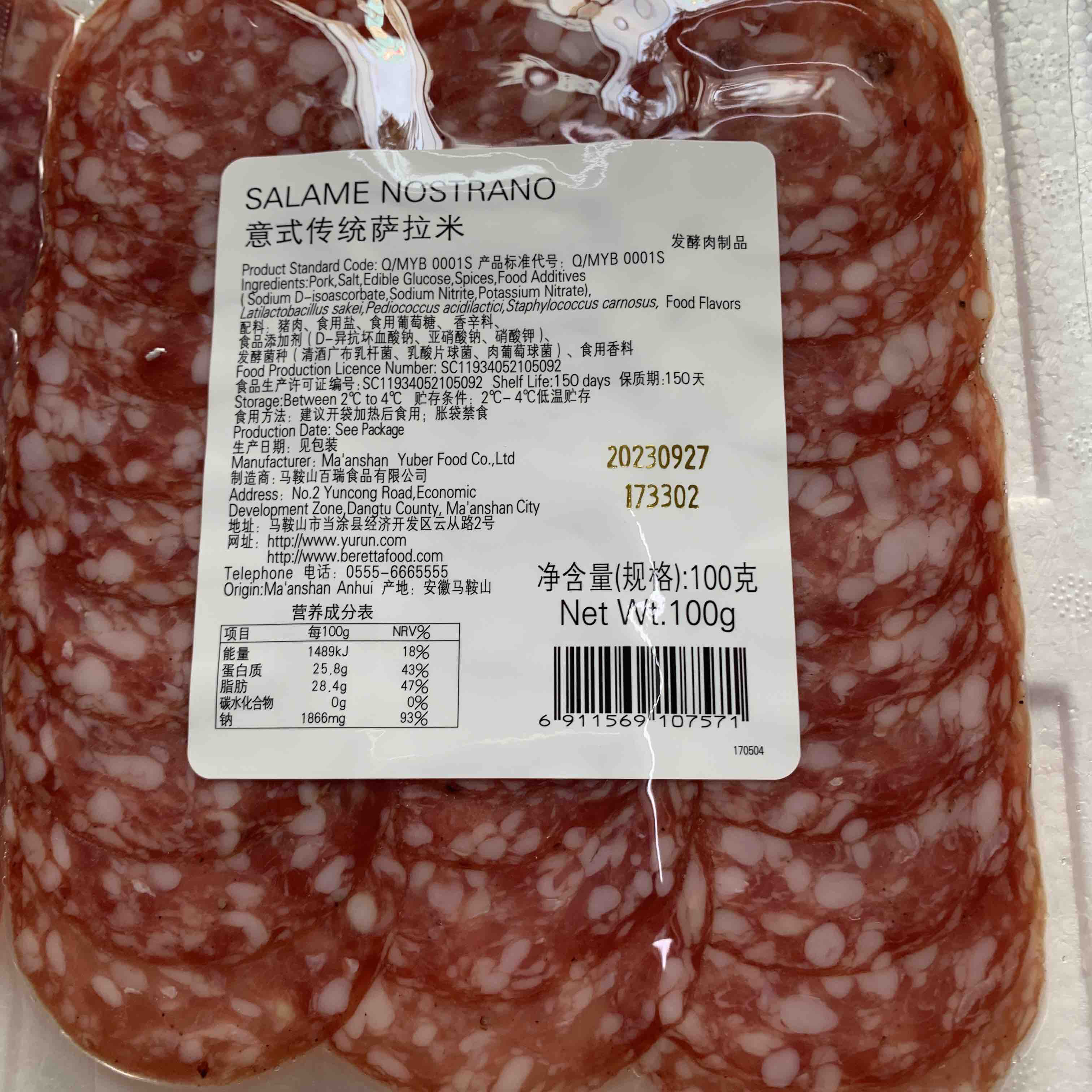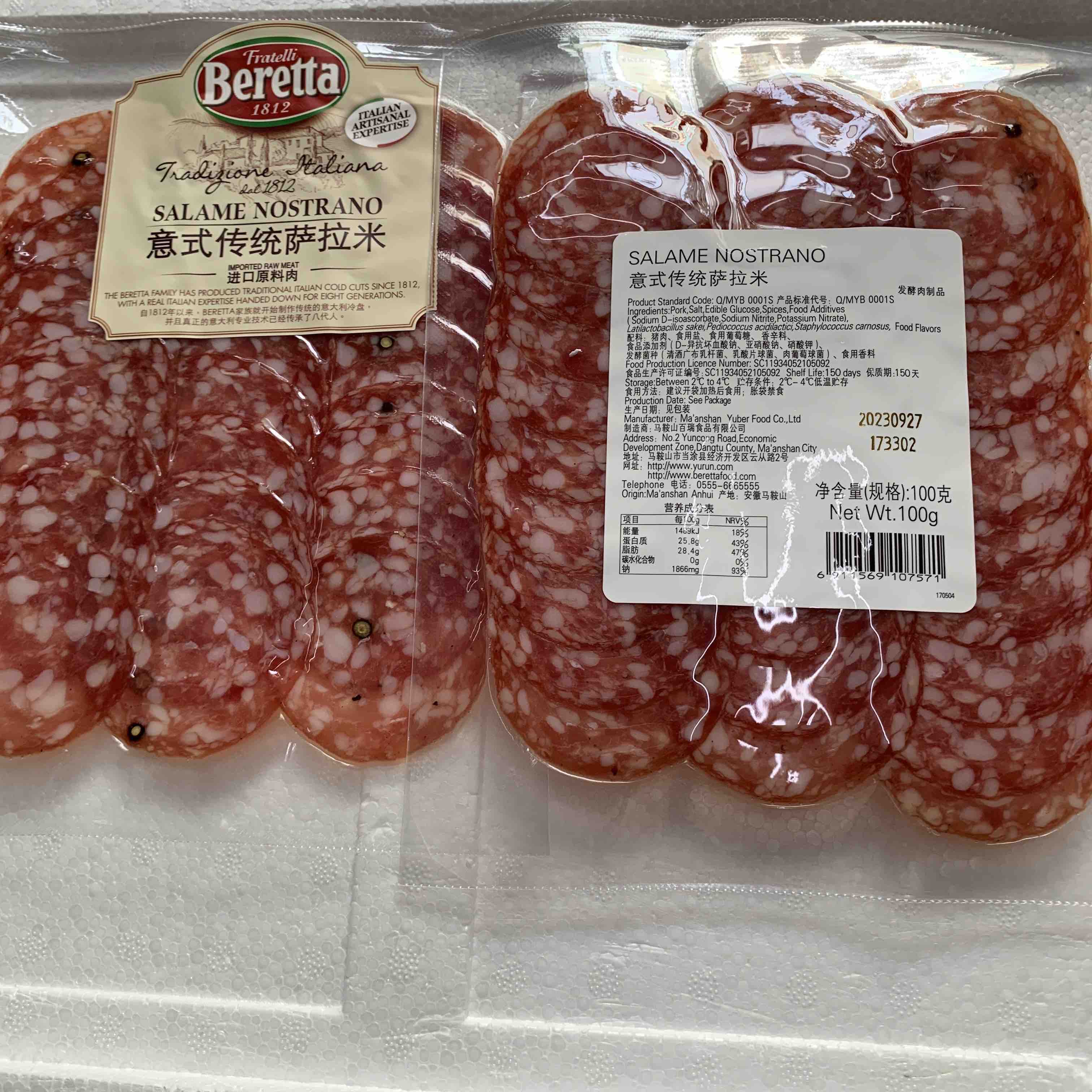 Berett意式披萨食材萨拉米肠片100g