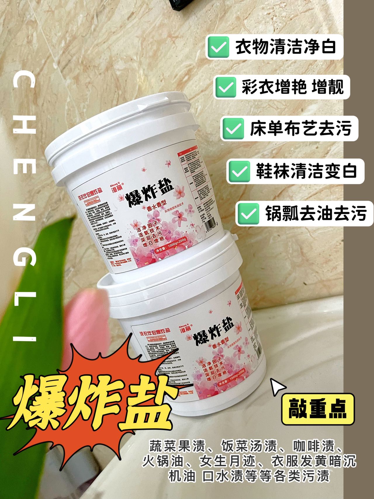 买一送一【洁净因子 增白去污】澄丽 3.0香氛爆炸盐 去渍去霉去黄 增艳彩票粉 实惠装洗衣液 家庭装