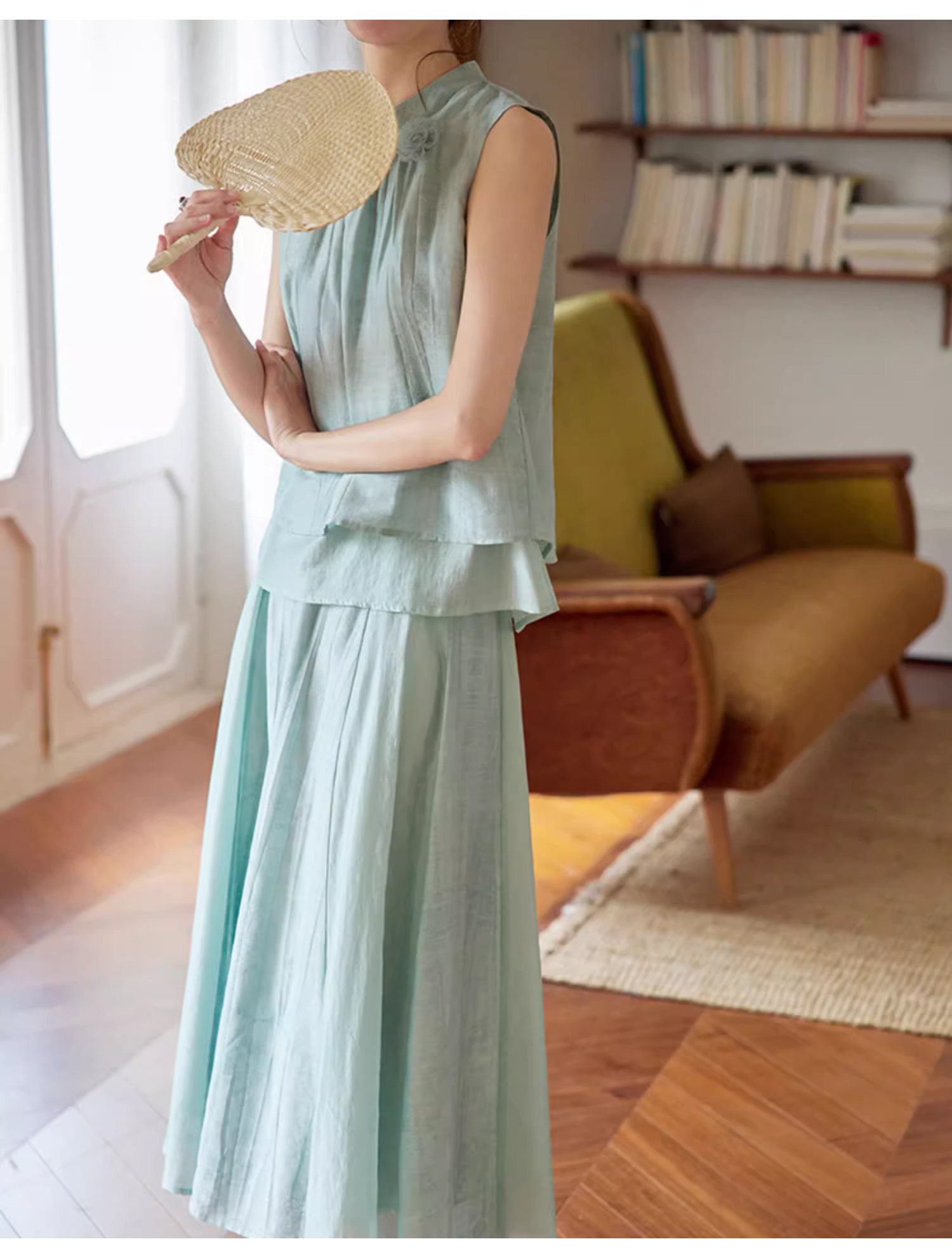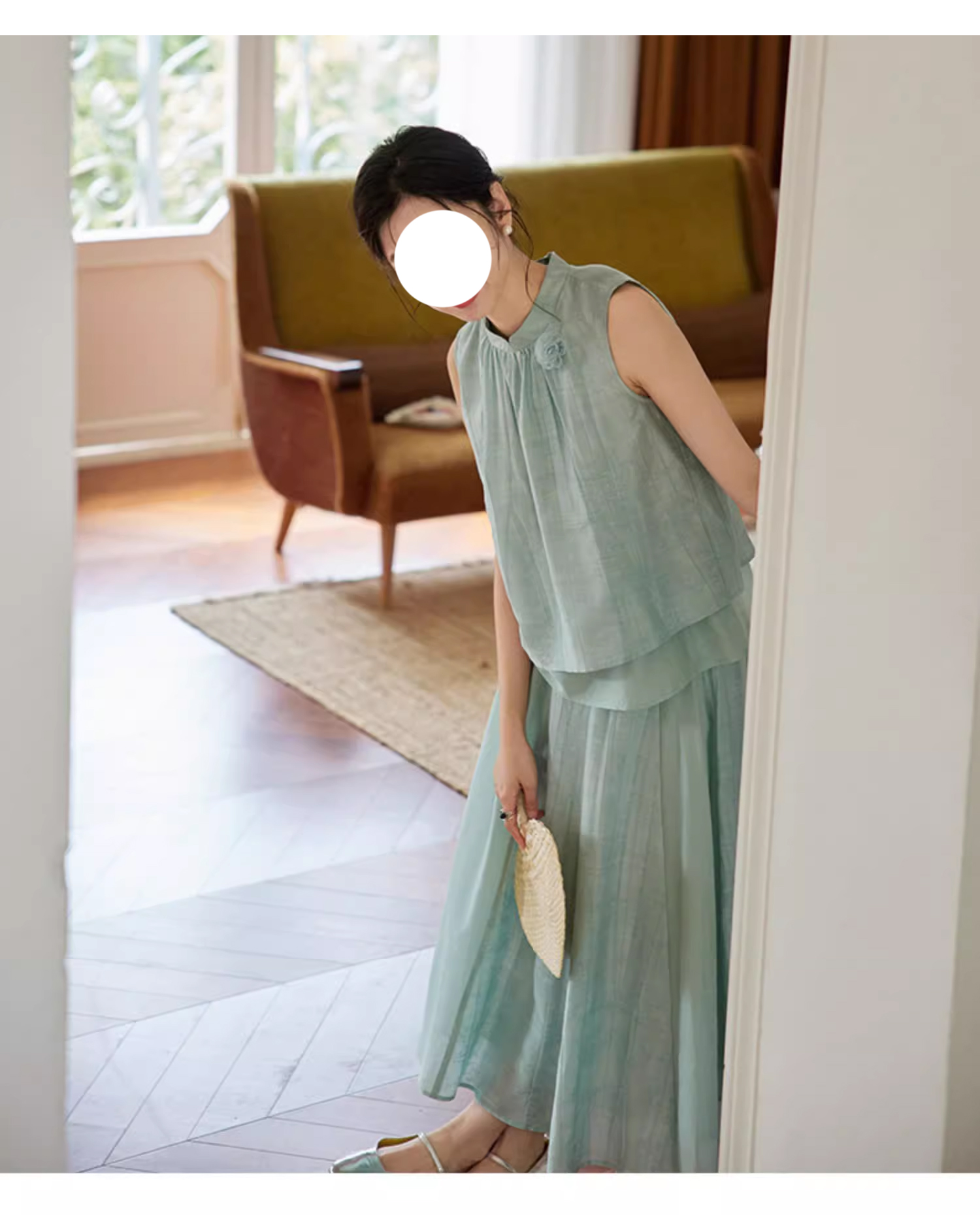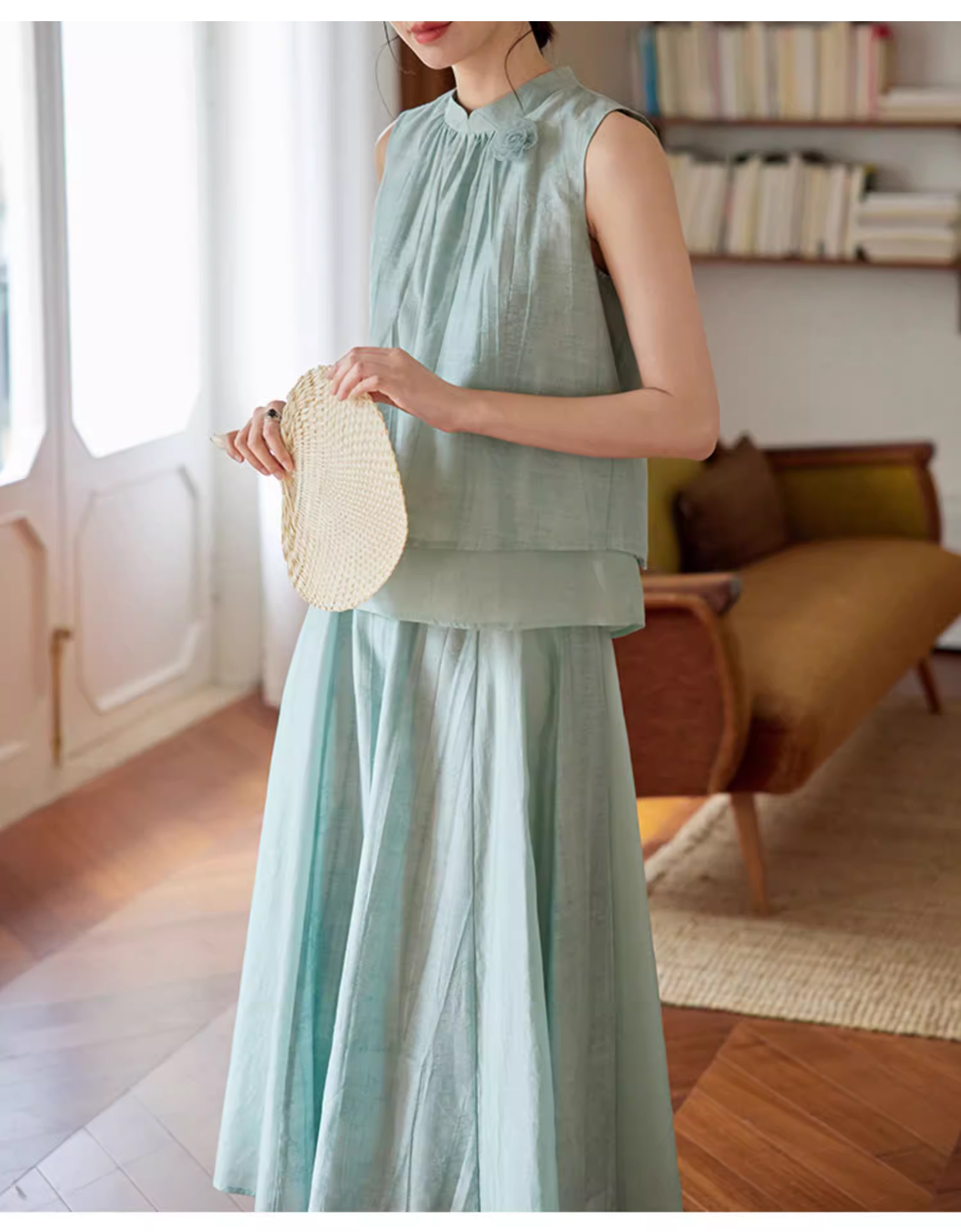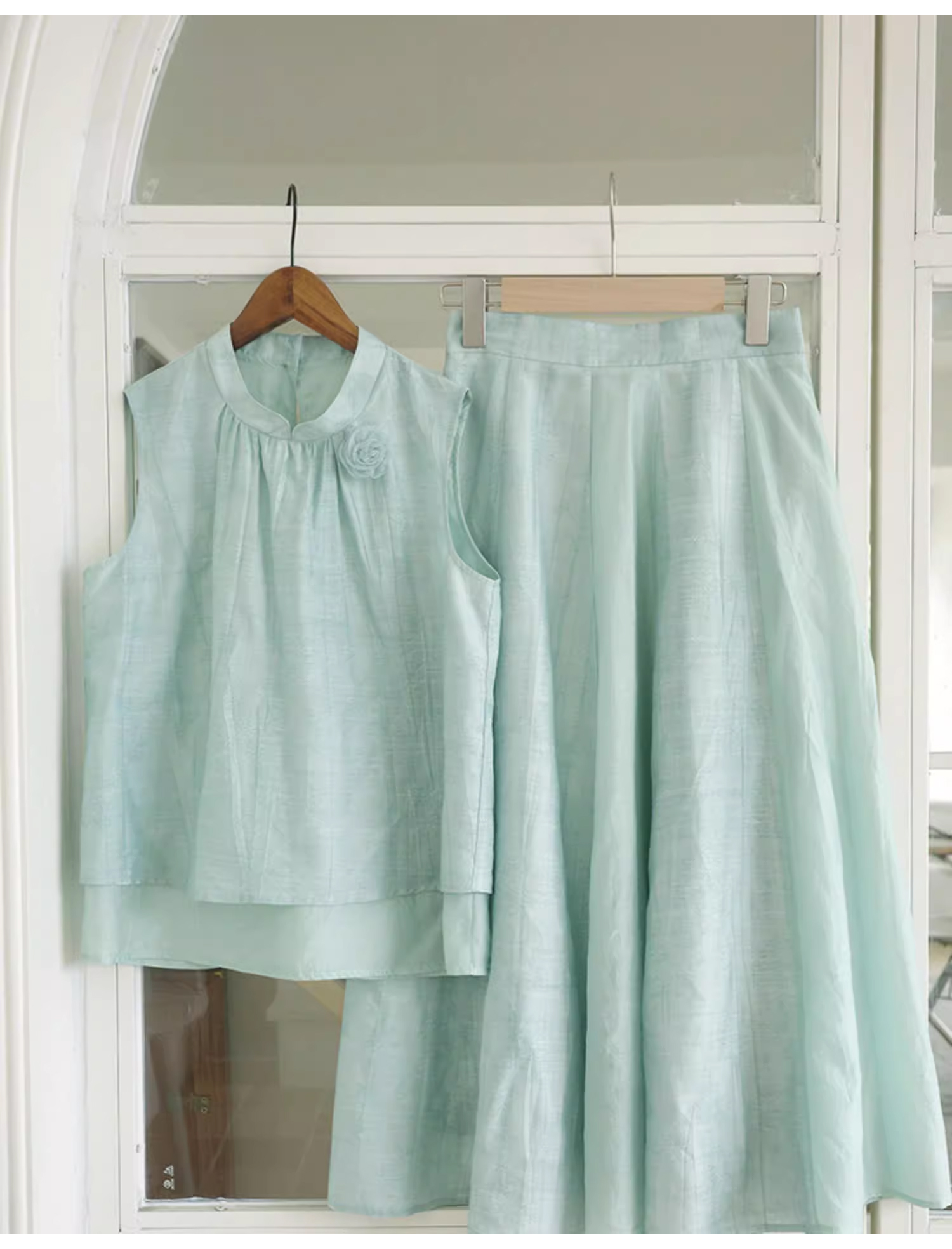 裁缝学苑AQ336新中式立领无袖上衣+半身裙套装纸样女装两件套样板