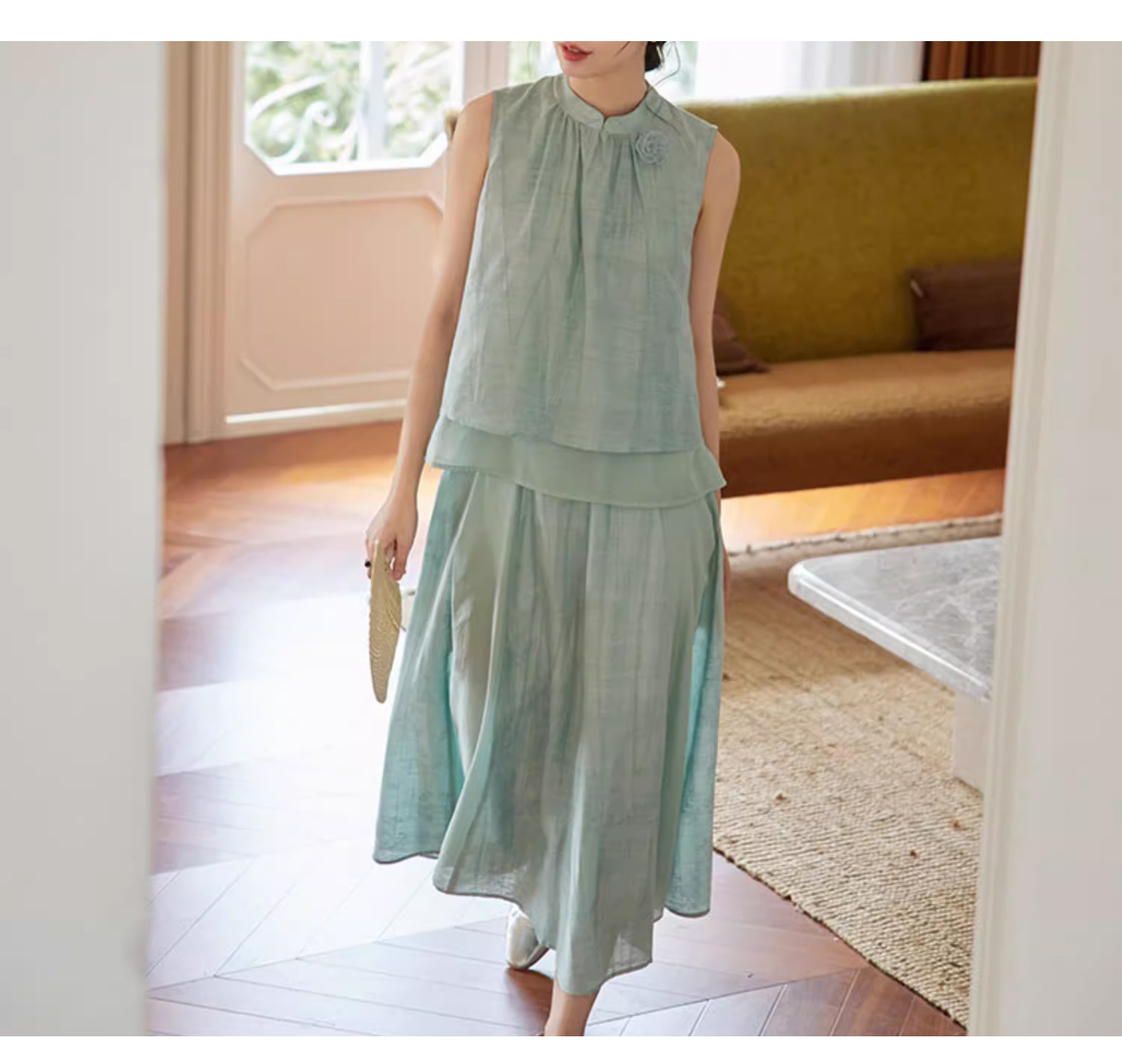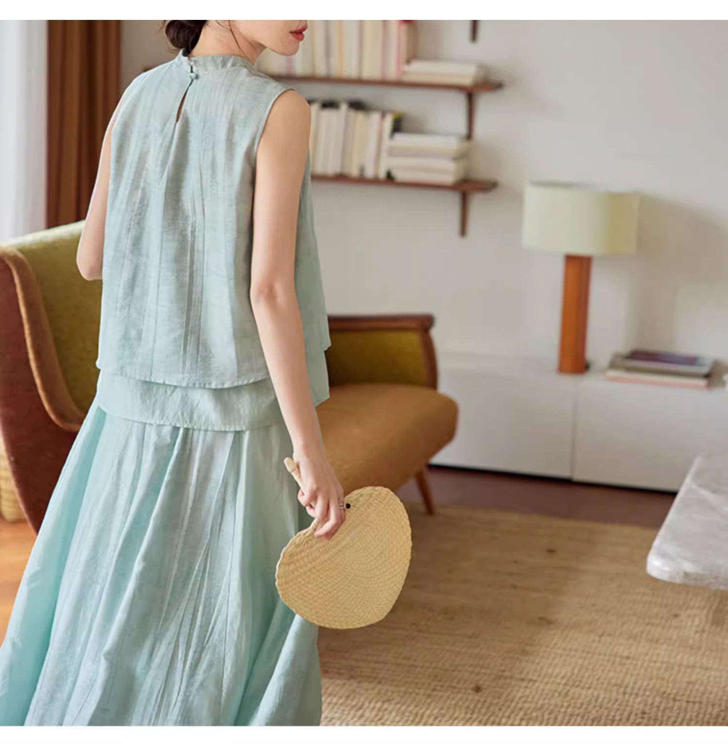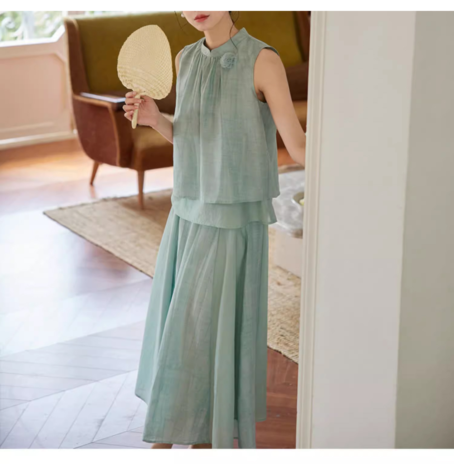 裁缝学苑AQ336新中式立领无袖上衣+半身裙套装纸样女装两件套样板