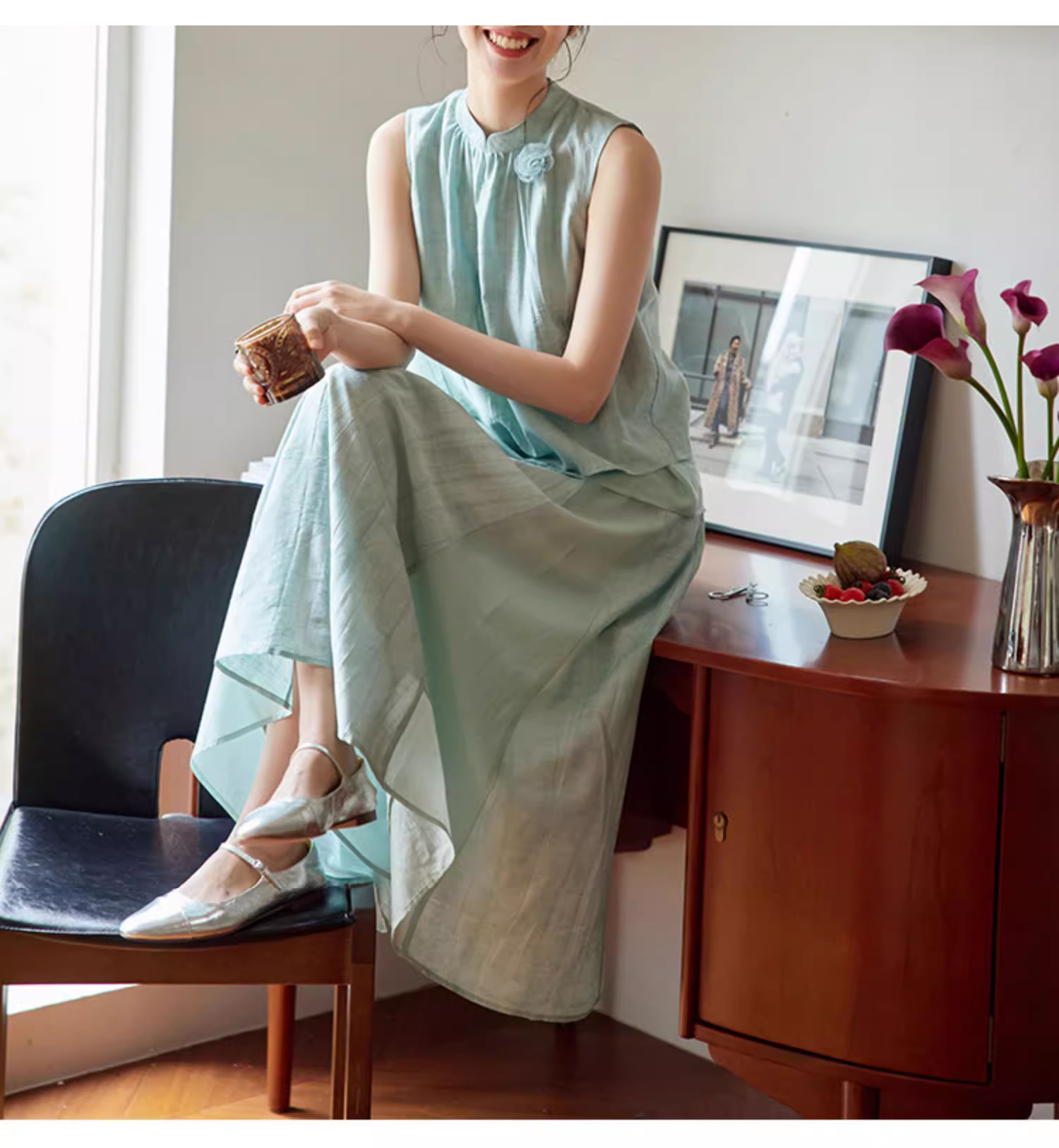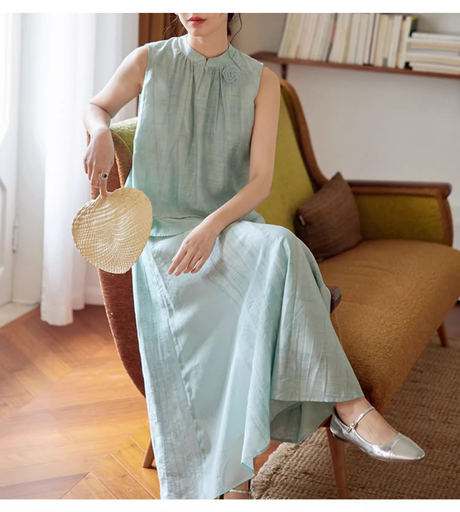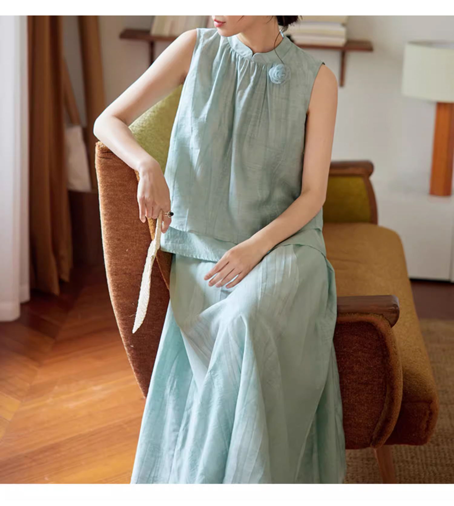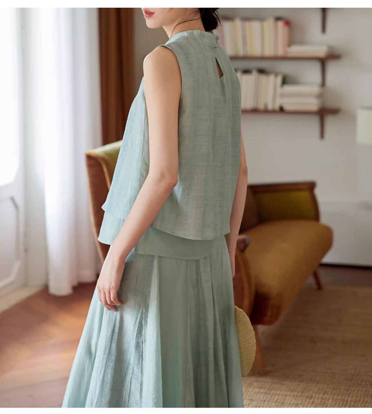 裁缝学苑AQ336新中式立领无袖上衣+半身裙套装纸样女装两件套样板