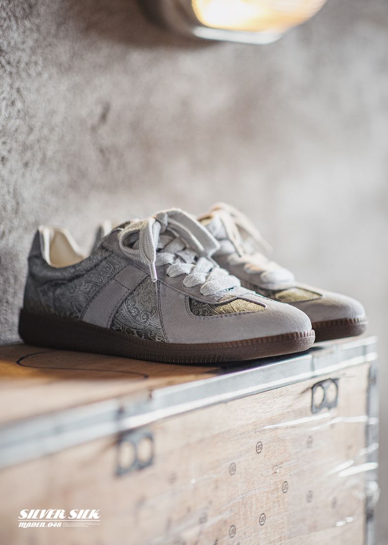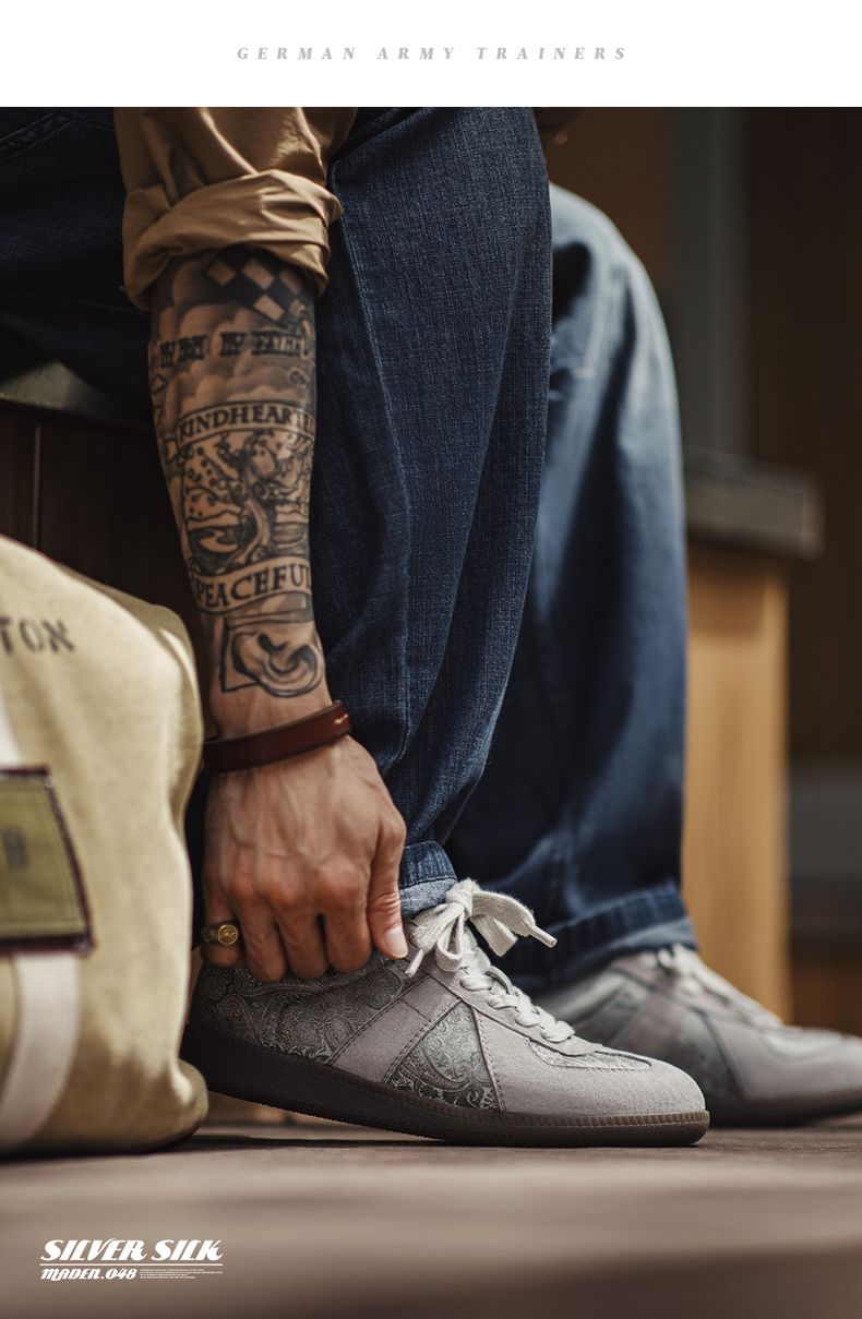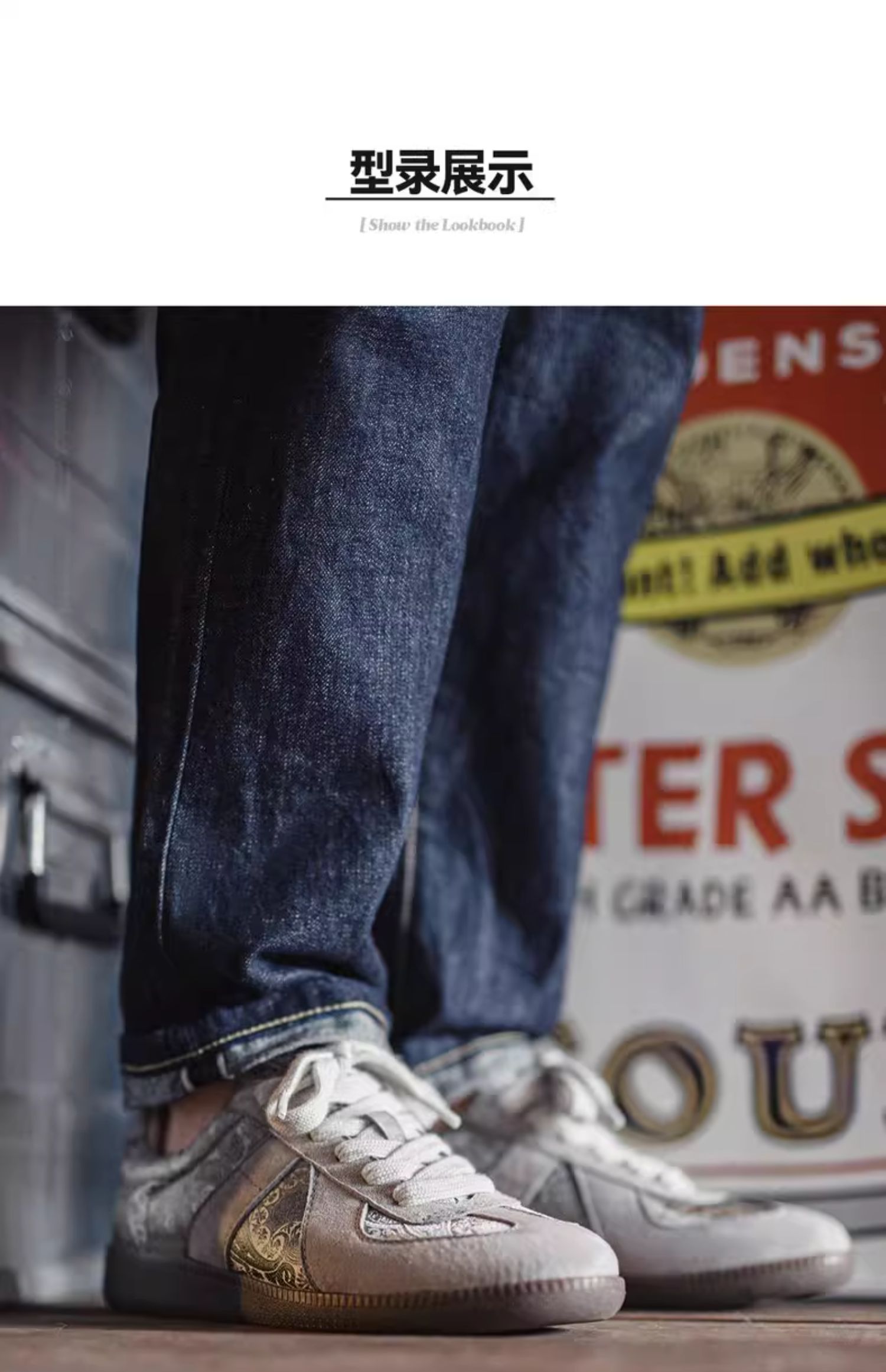 马登2025夏季新款德训鞋男士腰果花小众设计感板鞋丝绸休闲潮鞋子