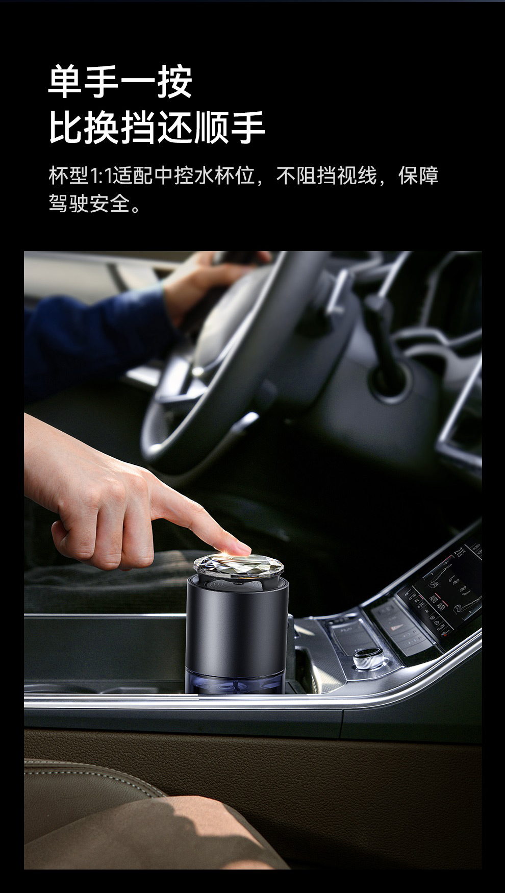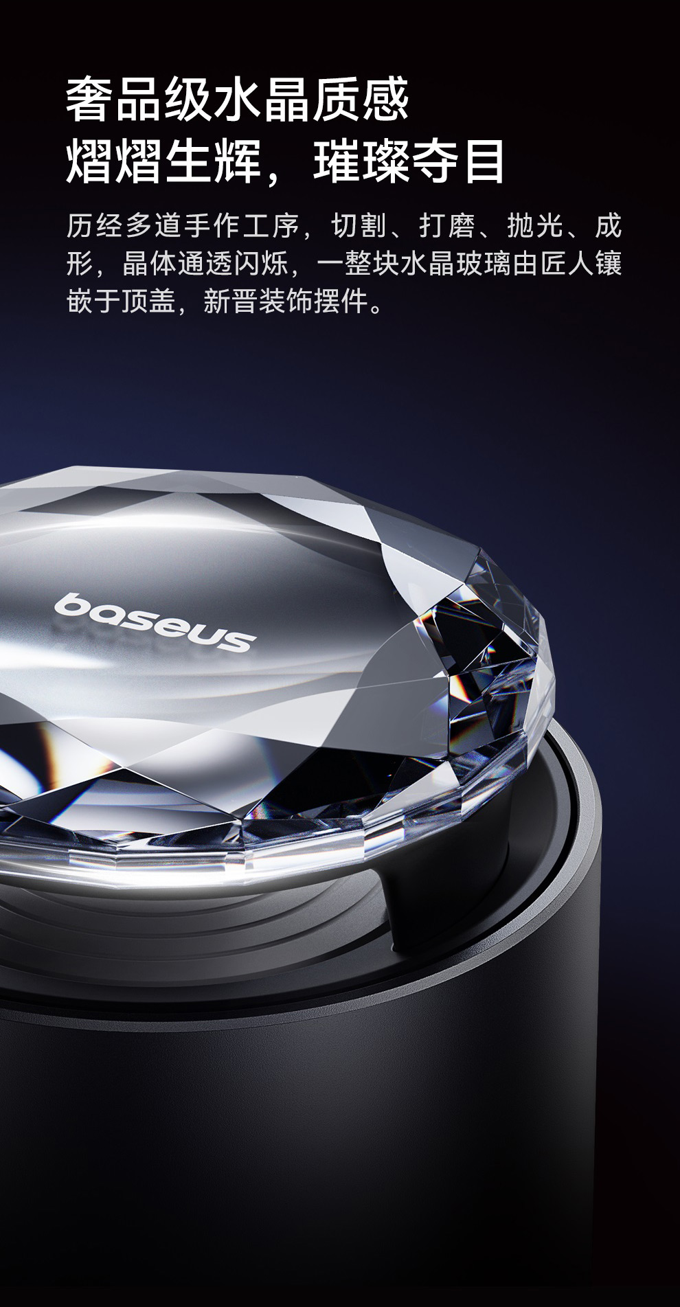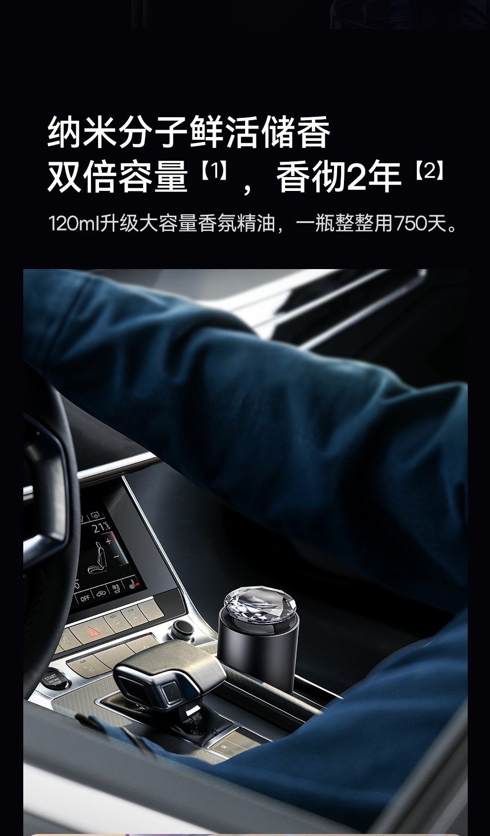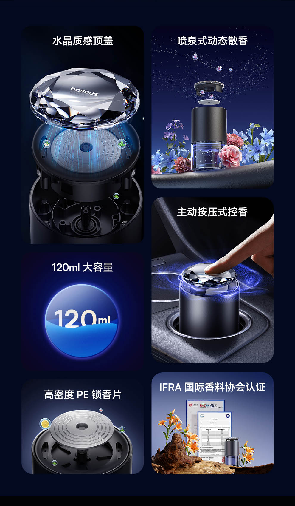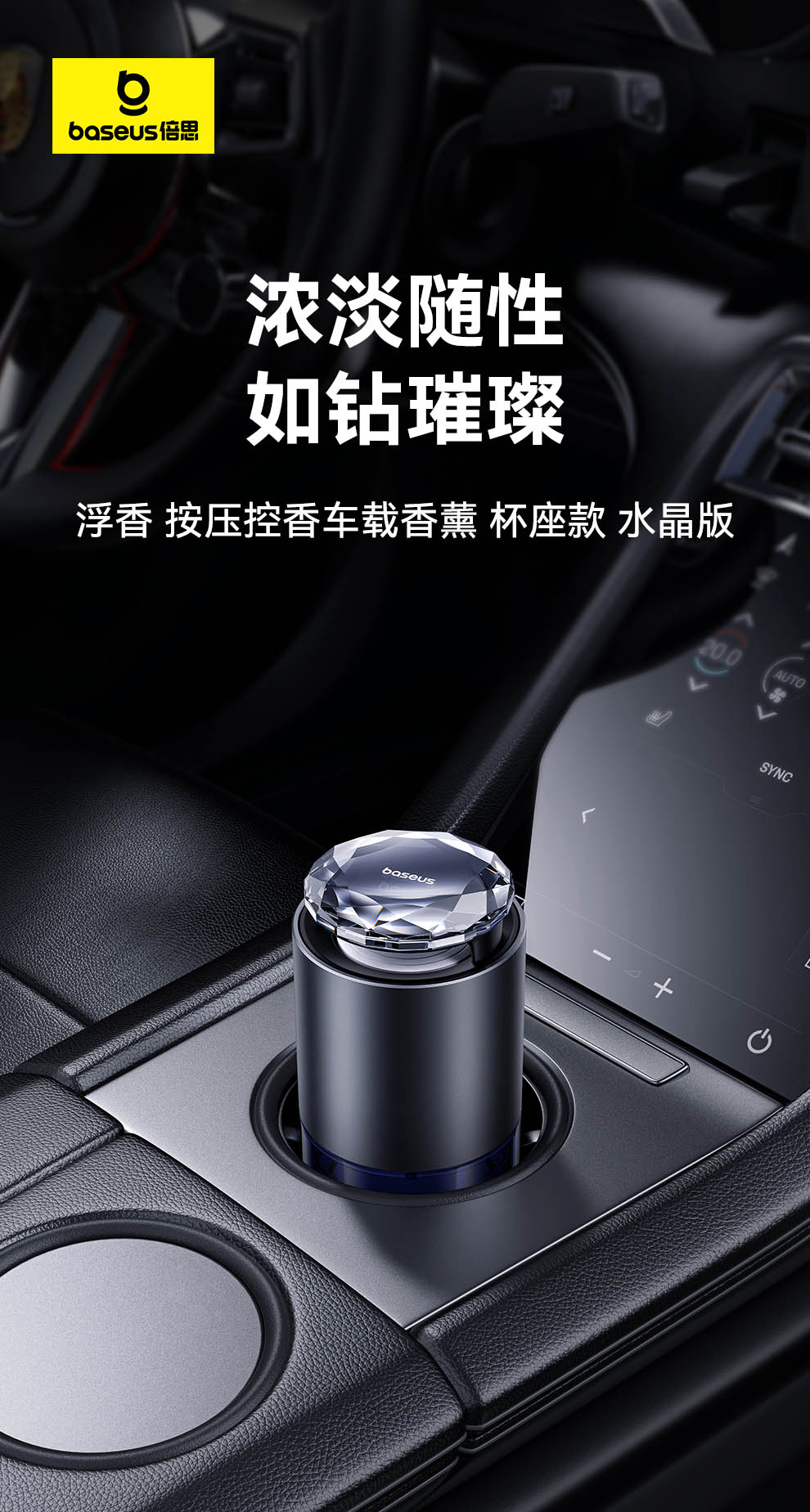 【十一专享】倍思 浮香 按压控香车载香薰(杯座款) 水晶版 深空灰